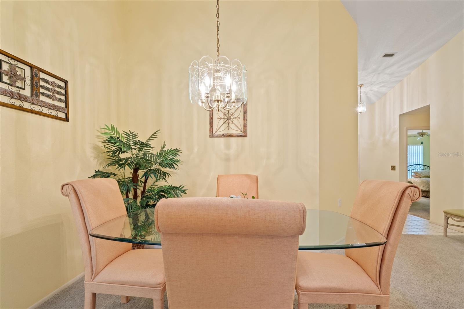 MOVE RIGHT IN to this BEAUTIFULLY MAINTAINED 2 bedroom, 2 bath, 2 car garage villa located in AWARD WINNING TIMBER PINES. SOLD FURNISHED, TURNKEY. This open-concept home is bright and airy, featuring vaulted ceilings, solar tube, and a beautiful landscaped rear view offering exceptional privacy. The living and dining room combination opens seamlessly to the kitchen and breakfast nook. The updated kitchen boasts granite countertops, recessed lighting, newer appliances (2022, excluding dishwasher), a pantry, abundant storage and workspace, and new cabinet doors. Popcorn ceilings have been removed in the living areas. Enjoy the enclosed, vaulted lanai under heat and air, overlooking a tranquil, park-like setting, with a poured concrete slab just outside—perfect for grilling and outdoor enjoyment, beautiful afternoon shade. Ideally located close to the Country Club. The spacious primary suite features two walk-in closets and an en-suite bath with dual sinks and a walk-in shower. The guest bedroom offers a large walk-in closet, ideal for additional storage. The guest bath includes a tub/shower combination. Inside laundry room includes newer washer and dryer, utility sink, and cabinet storage, with direct access to the screened garage featuring an acrylic floor and ample storage. Exterior painted in 2024. New smoke detectors. HVAC system professionally maintained yearly. Golf cart included with new batteries. This village provides a termite warranty and allows one dog. Come enjoy the exceptional lifestyle Timber Pines has to offer with its 4 golf courses, clubhouse, 2 Pools, Restaurant, Tennis, Pickleball, fitness center, performing arts center, Wood shop, Arts and Crafts, Paws Park, over 100 clubs and a vibrant social lifestyle. Spectrum high speed internet and 2 cable boxes included in HOA dues. Buyer to pay 2900 Capital Contribution to TPCA at closing. CALL TODAY!!!!!
