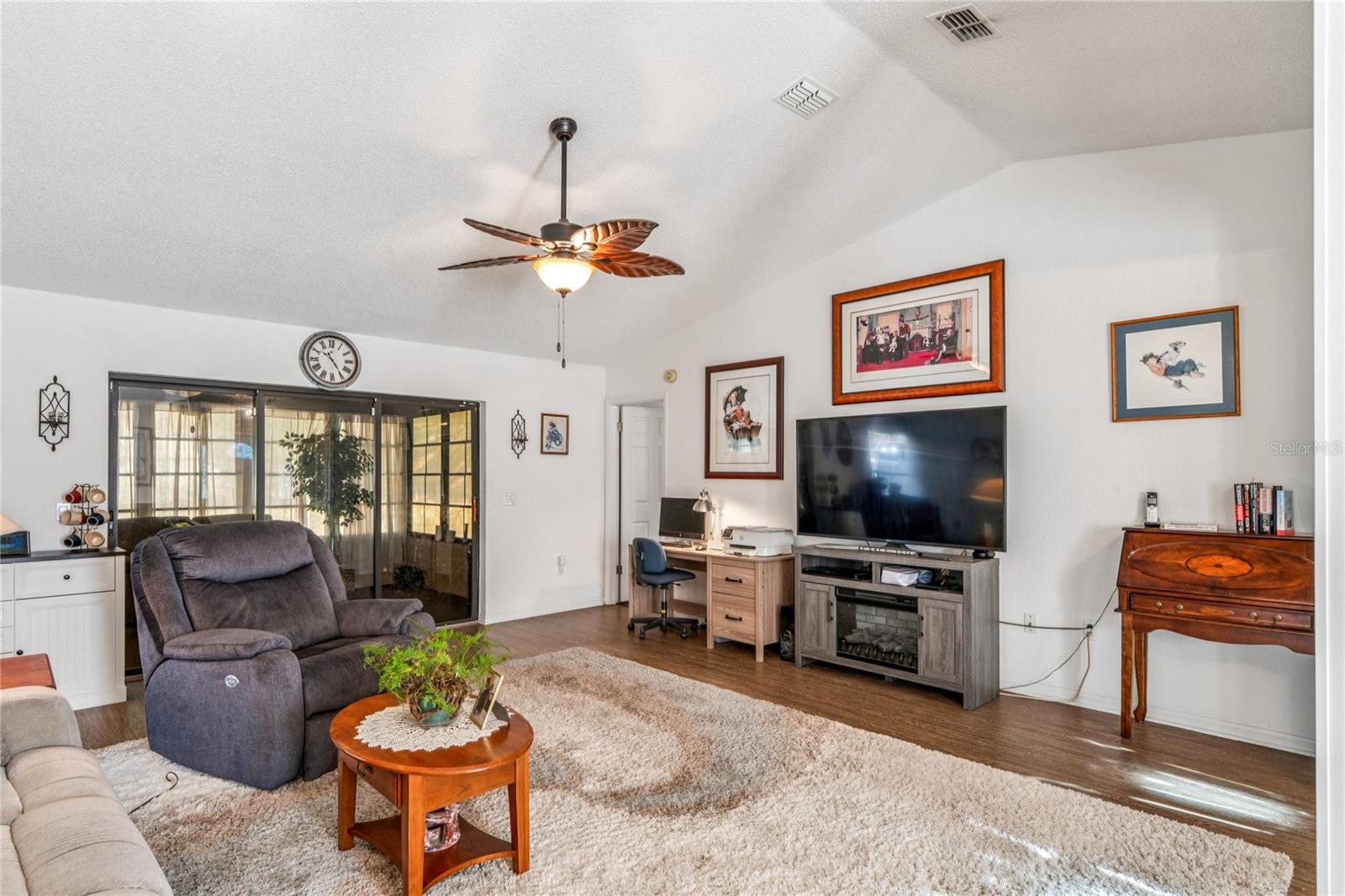 Florida Living at Its Finest- Enjoy year-round swimming and sunshine in this beautifully maintained 2-bedroom, 2-bathroom, 2-car garage home featuring a heated, saltwater pool and a brand-new 2025 roof. Interior Highlights-Open great room layout with pocket sliders leading to the lanai. Formal dining room perfect for gatherings. Upgraded kitchen with abundant cabinetry, stainless steel appliances, granite countertops, and a cozy breakfast nook overlooking the fenced backyard. Split bedroom floor plan for added privacy. Luxurious primary suite with double closets and an en-suite bath featuring dual sinks and a standalone shower. Spacious second bedroom with a large walk-in closet. Convenient laundry room with washer, dryer, and utility sink. Hall bath with oversized linen closet. Outdoor & Pool Features- Large screened-in lanai with vinyl windows for year-round enjoyment. Resurfaced heated/cooled saltwater pool (2021) with updated screening. Energy-efficient variable-speed pool pump. Fenced backyard for privacy and pets. AC replaced in 2018. Some furnishings available for purchase.