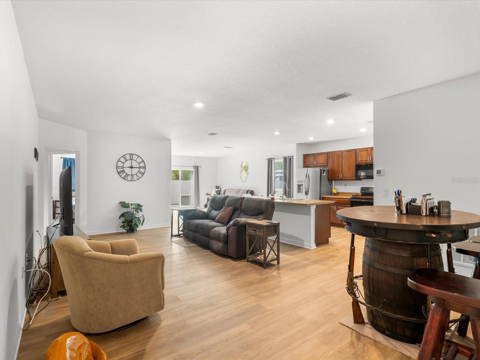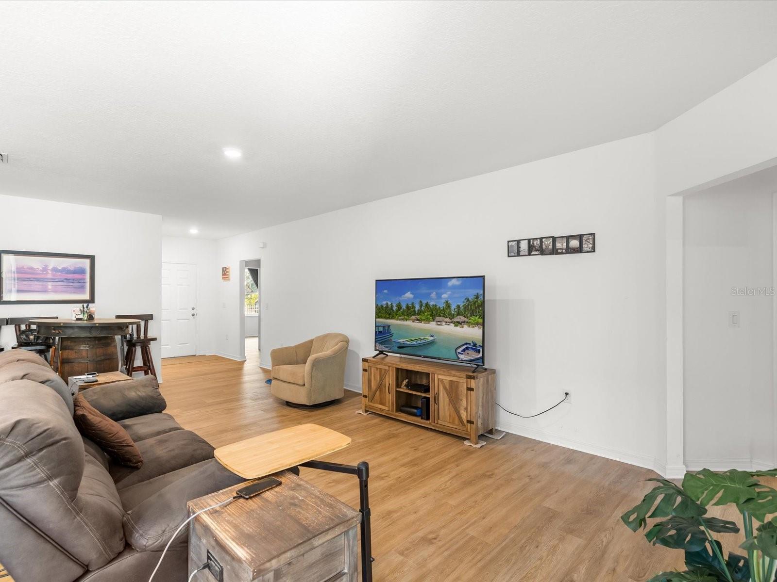 A truly unique opportunity on a double corner lot with lots of space, privacy and freedom. This four-bedroom home features an open floor plan, split bedrooms with primary ensuite. HUGE walk-in closet. The heart of the home is a very workable kitchen with a breakfast bar, stainless steel appliances, and wood cabinets-blending function with timeless style includes a breakfast nook. There's an extra sitting room or family room looking out to a huge 23x12 outdoor patio ideal for sunning or gatherings. Inside utility for laundry. SAVING THE BEST FOR LAST! A MASSIVE 27X35 DETACHED GARAGE, PERFECT FOR THE CLASSIC CAR ENTHUSIAST OR ALL YOUR TOYS! ADDITIONAL STORAGE SHED, FULLY FENCED YARD FOR SECURITY AND PRIVACY! ENJOY COUNTRY LIVING WITH NO HOA, NO CDD, AND NO FLOOD INSURANCE REQUIRED! THE PERFECT BLEND OF COUNTRY LIVING WITH IN-TOWN CONVENIENCE!!