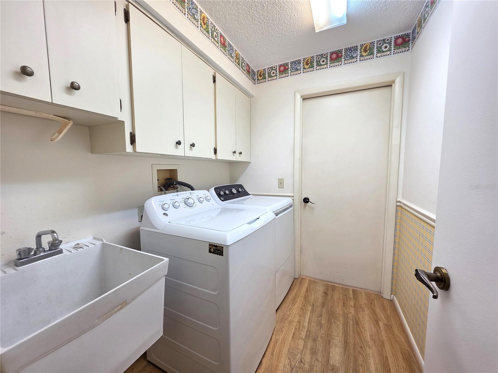 Timber Pines 2 Bedroom Home 2 Full Bathrooms and 2 Car Garage- Enter The Home From The Front Porch To The Tiled Entry Foyer With A Hall Closest- Formal Living And Dining Rooms- The Eat In Kitchen Has Stainless Steel Appliances, Breakfast Bar, Dining Nook Plus 2 Pantries- The Primary Bedroom Has 2 Walk In Closets, Remodeled Bathroom With Dual Sinks, Tiled Floor And Tiled Shower- The Florida Room Has A Yonan Wall Unit For AC- open patio outside, Inside Laundry Room With Washer And Dryer, Wash Tub And Wall Cabinets- Extras Include- Ceiling Fans, New Roof Being Installed January 2026, Newer Tilt Out Windows For Easy Cleaning, Attic Storage, Irrigation System, Screened Garage Which Has 2 Storage Closets, Brick Paver Driveway And Walk Way- Call Today For A Showing. Timber Pines, a 55+ Gated Community, With 4 Golf Courses, Country Club, Remodeled Restaurant And Bar With Multiple TV Screens, 2 Pools, Fitness Center, Tennis And Pickle Ball Courts, Bocce Ball, Billiards Room And More Than 100 Different Clubs. Spectrum Cable, 2 boxes and High-Speed Internet Are Also Included In the HOA. Repaired Sinkhole. Full Docs available.