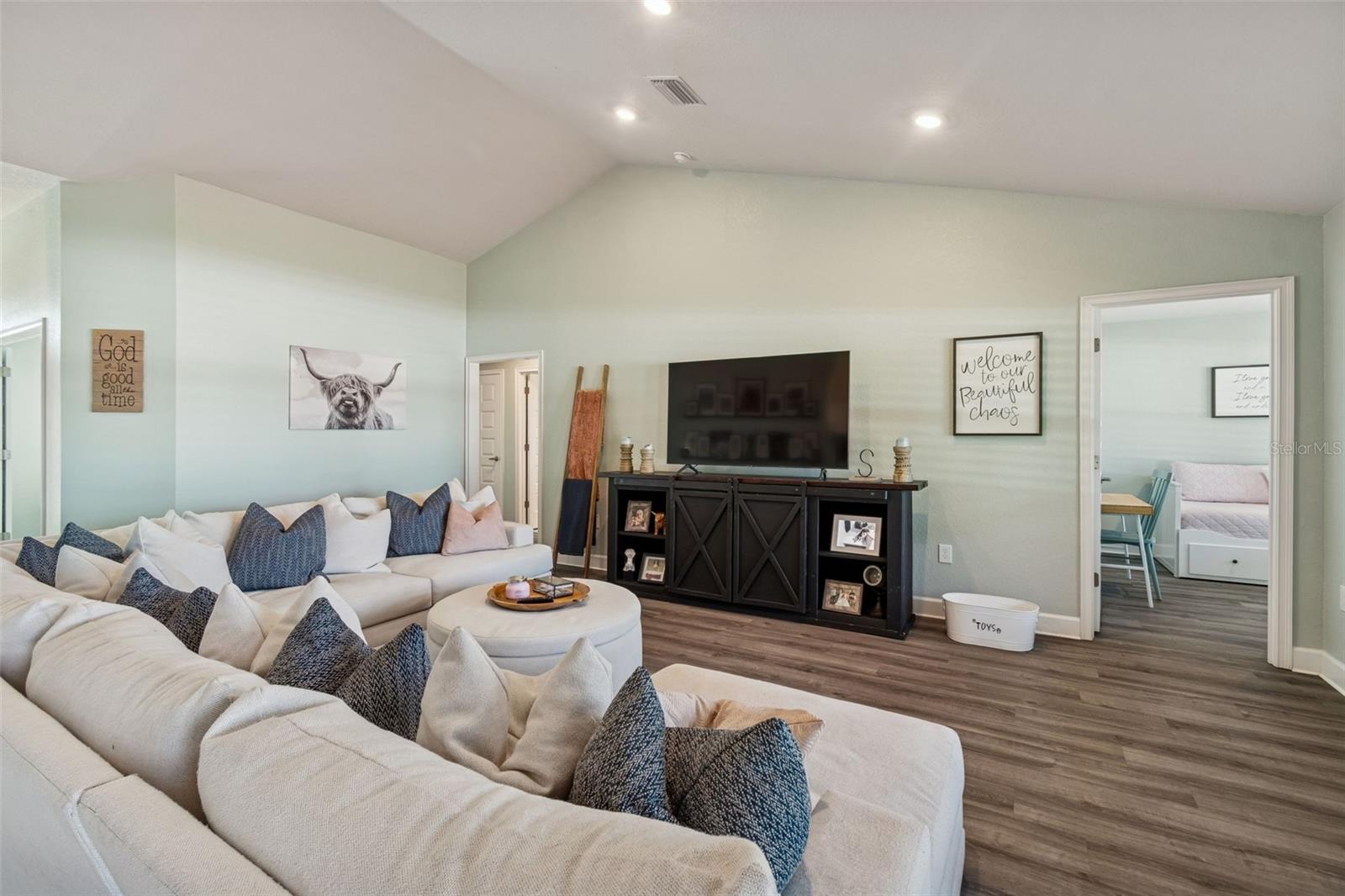 Welcome Home! Built in late 2023, this nearly new 4-bedroom, 2-bath home sits on a true half-acre lot. Unlike most nearby new construction, this property offers a 3-car garage, an oversized porch, and a fully fenced backyard, providing plenty of space to spread out, entertain, or plan for a future pool. Inside, the open triple split-bedroom layout is ideal for larger households or a multi-generational setup, offering both connection and privacy. You’ll find high ceilings, upgraded cabinetry, quartz countertops, stainless steel appliances, and a bright, airy feel throughout. The primary suite is generously sized, featuring dual walk-in closets and a spa-style bath that feels like a true retreat. Perfectly positioned near Anderson Snow Park, shopping, dining, medical facilities, and everyday conveniences, with quick access to the Suncoast Parkway for an easy commute to Tampa. If you’ve been searching for newer construction with land, this one checks the boxes. Schedule your private showing today!