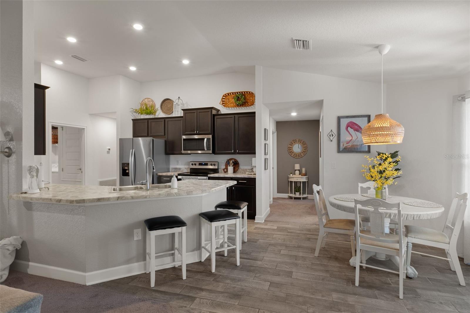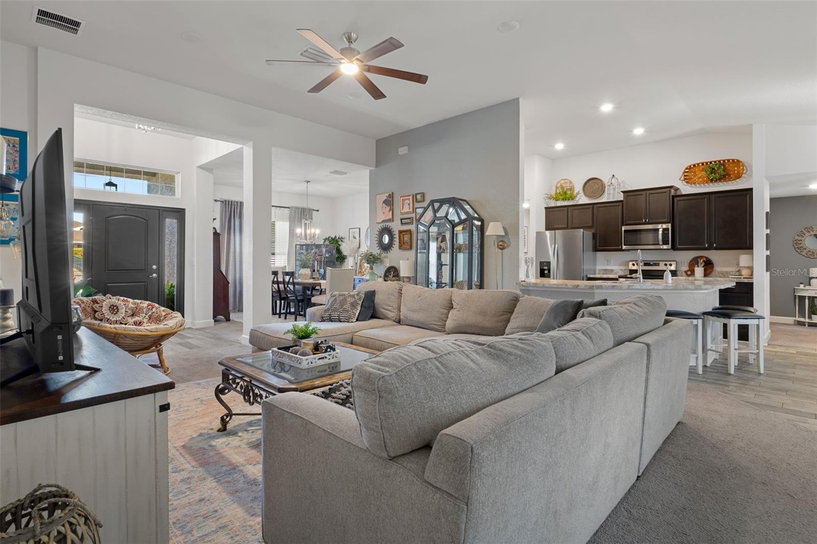 Welcome to this 4-Bedroom plus office, 2 Bathroom, 2 car garage home in the heart of Spring Hill! This move-in ready, newer construction home offers a thoughtfully designed split floor plan that offers both comfort and privacy. The modern kitchen features stainless steel appliances, ample cabinetry and counter space, and opens to the living room and dining areas, making it perfect for entertaining or staying connected with family and guests. The split-bedroom layout provide privacy, with a spacious primary suite featuring double walk-in closets and a private en-suite bathroom. The dedicated office space is ideal for working from home, homework stations, playroom, or hobby space. THREE additional bedrooms provide plenty of room for family, guests, or multi-generational living. Additional highlights include an indoor laundry room, generous storage, and a two-car garage. Step outside and unwind in your covered back lanai, perfect for morning coffee, or outdoor entertaining. The backyard offers plenty of space to design your dream pool and outdoor oasis. Ideally located near schools, parks, medical facilities, and offers convenient access to the Suncoast Parkway for an easy commute to Tampa and surrounding areas. Schedule your private showing today and come experience all this wonderful home has to offer.