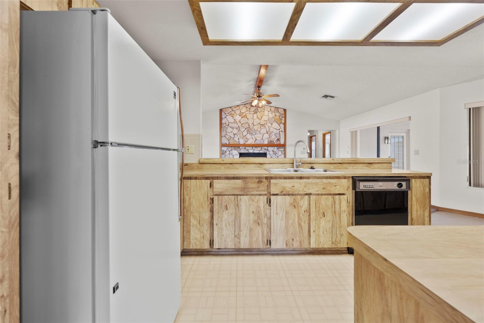 MOVE-IN READY ~ BRAND NEW ROOF 2/2026! NO HOA, NO CDD, NO Flood zone! Stop searching! This well maintained, spacious 2,100 sq ft home offers 3 bedrooms, 2 baths, and a 2-car garage, featuring a functional split-plan design with stunning vaulted ceilings and large windows that fill the space with natural light. Key Highlights: Brand New Roof (Feb 2026): Total peace of mind for years to come! Upgraded Family Room: Relax by the massive wood-burning fireplace with a forced-air blower, beautifully decorated with Zyrian stone. Updated Kitchen: Huge eat-in kitchen with cabinets galore, a breakfast bar, built-in desk, and brand new sink, faucet, and garbage disposal. Sunroom Oasis: Includes a built-in JennAire Grill and bar sink, perfect for entertaining. Master Retreat: Very spacious bedroom with a walk-in closet and a master bath featuring new dual sinks, a new toilet, and a nicely tiled shower. Guest bath features a direct entrance to the sunroom--ideal for a future pool. Garage & Storage: Features screen doors, a work bench, extra cabinets, a new water heater, and a new garage door opener. Brand new vinyl fencing in the backyard provides privacy. This home is designed for comfort and entertainment, featuring a laundry room with a storage closet and built-in laundry tub. Need a fast closing? This home is ready to sell! Don't wait--schedule your showing today!