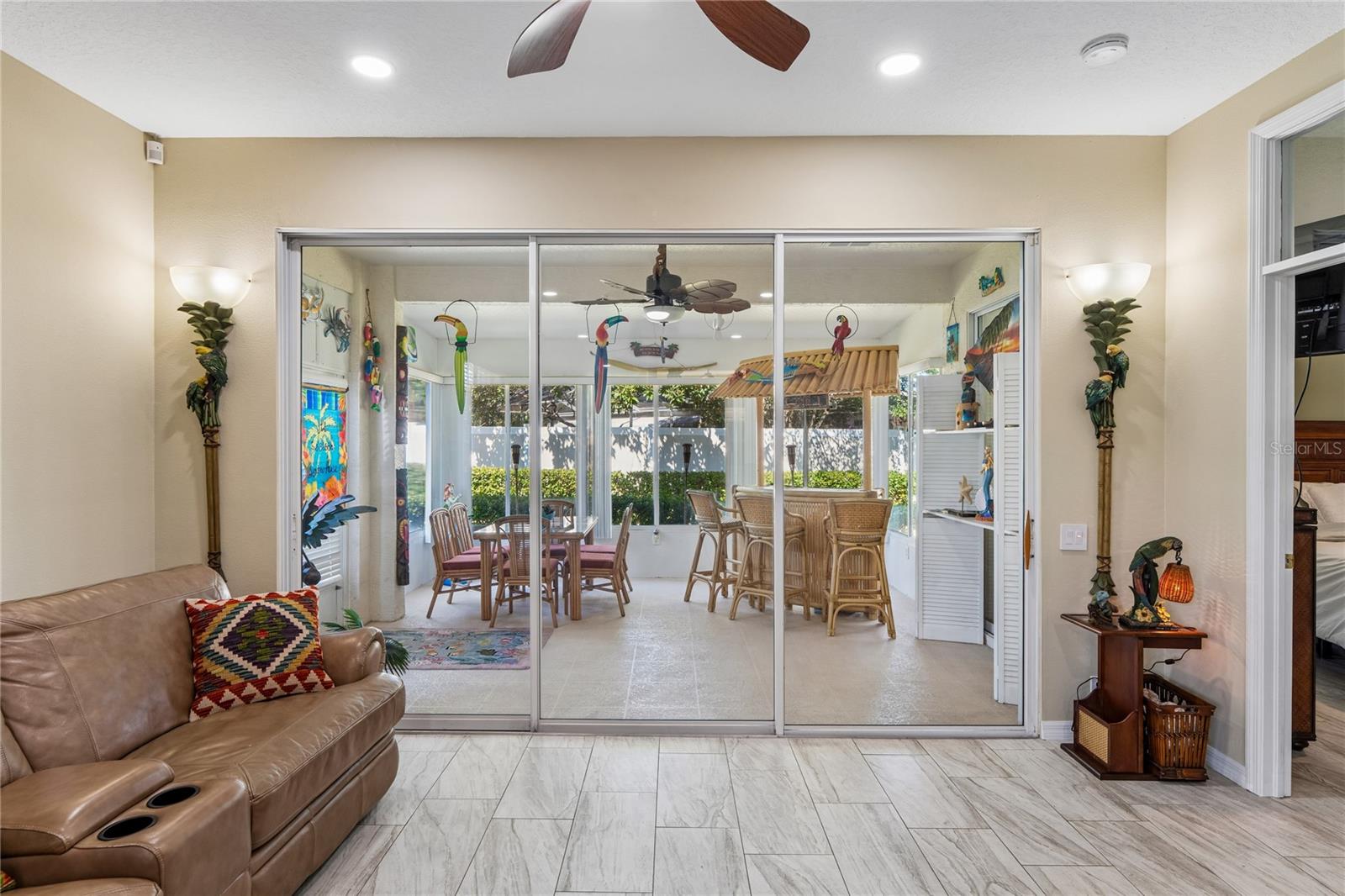 One or more photo(s) has been virtually staged. Enjoy the Florida lifestyle in this beautifully updated, maintenance-free villa located in a desirable gated golf course community. This 3-bedroom, 2-bath, 2-car garage residence offers 1,731 sq ft of thoughtfully designed living space and is truly move-in ready. Split floor plan offering plenty of privacy. Seamless ceramic tile flows throughout the villa, complemented by recessed lighting and ceiling fans. The kitchen features newer stainless steel appliances, perfect for both everyday living and entertaining. Major systems have already been taken care of—roof, AC, and water heater were all replaced in 2023. The interior and exterior were also freshly painted in 2023, giving the home a clean, modern feel. Relax and enjoy the peace of mind that comes with low-maintenance villa living in a secure, well-maintained community designed for the Florida lifestyle.