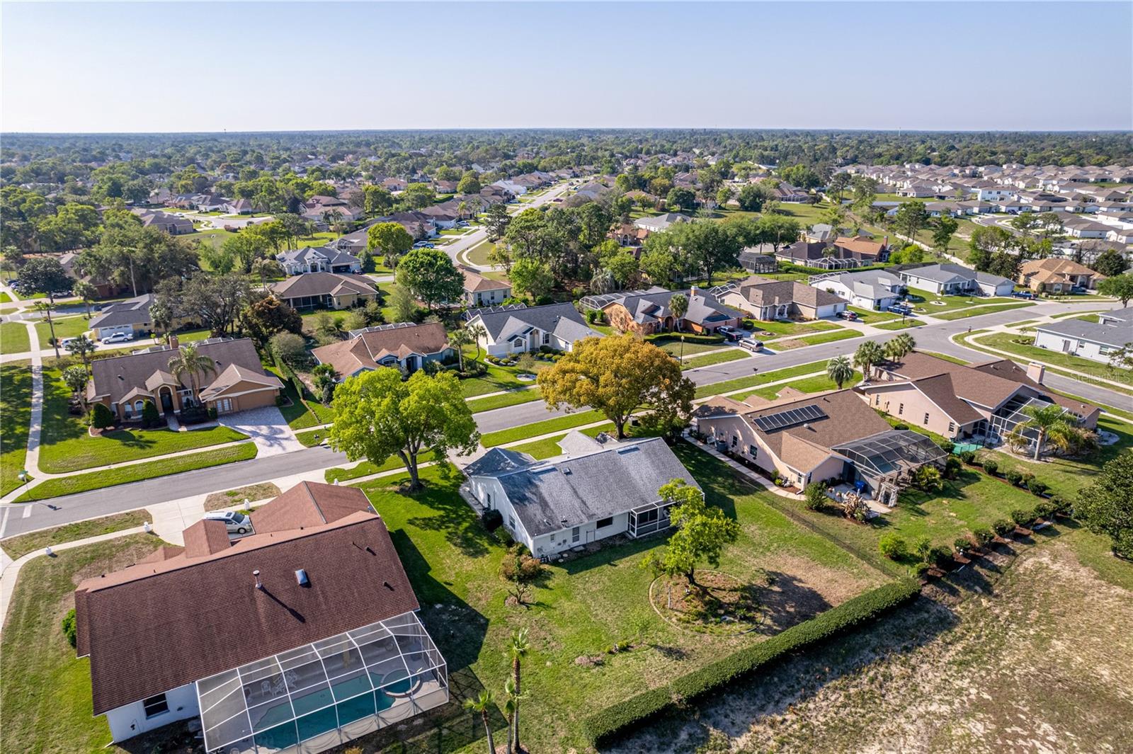 Welcome to this spacious 2-bedroom split floor plan home in the gated community of Pristine Place with no CDD fees, featuring a large kitchen with an oversized breakfast bar, abundant cabinetry, and a bright open layout ideal for everyday living and entertaining. Step through the double door entry into a light-filled living and dining area with soaring cathedral ceilings and custom architectural details that flow seamlessly into a versatile family room or home office overlooking the private backyard. The primary suite offers generous space, high ceilings, a walk-in closet, and a spa-inspired bathroom with a jacuzzi tub, separate shower, and dual sinks. The second bedroom functions like a private suite with its own walk-in closet, full bathroom access, and separate rear entry—ideal for guests or multi-generational living. Interior updates include fresh paint, a 2020 HVAC system and water heater, and a roof replaced in 2013. Enjoy a peaceful backyard with no rear neighbors and plenty of room to add a pool, plus added conveniences like a water softener, irrigation well, and sprinkler system to maintain the landscaping with ease. Residents of Pristine Place enjoy low HOA fees with access to a community pool, fitness center, clubhouse, playground, tennis courts, basketball courts, as well as cable and internet. Conveniently located near shopping, dining, golf courses, and medical facilities, with quick access to the Suncoast Parkway for an easy commute to Tampa, beaches, and entertainment. This home previously underwent professional sinkhole remediation, with documentation available for buyer review. This well-maintained home offers a rare combination of privacy, functional layout, and community amenities in a highly desirable location.