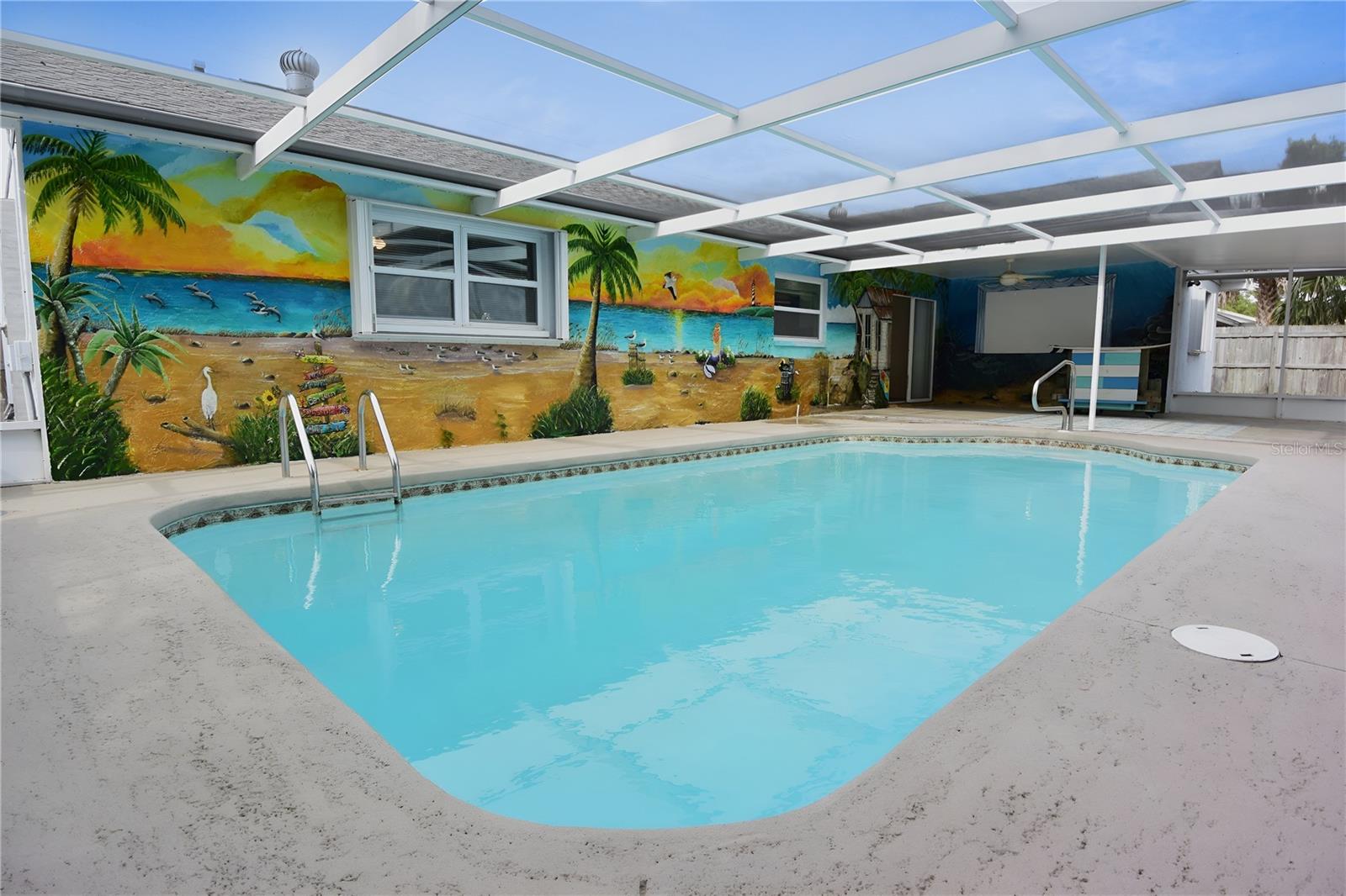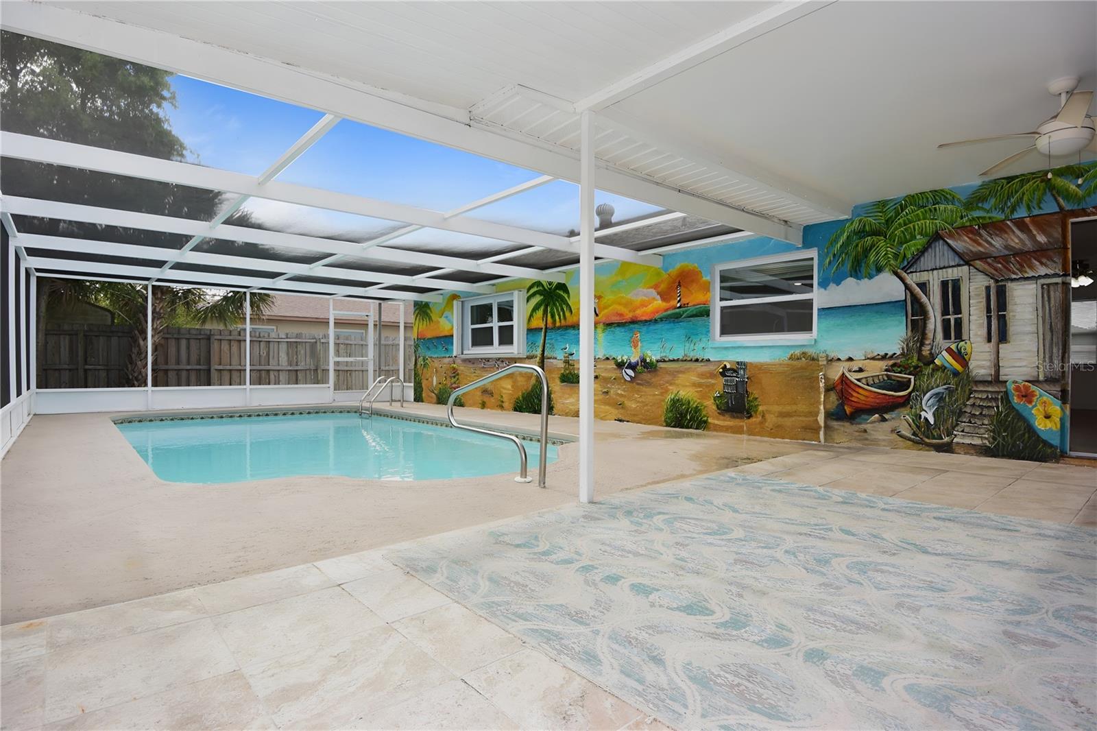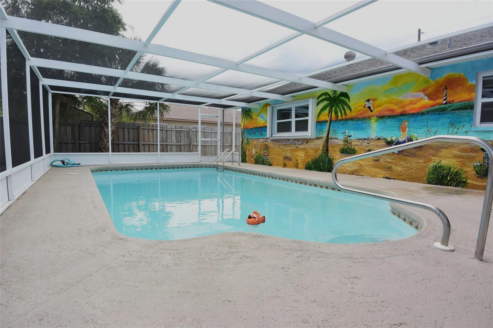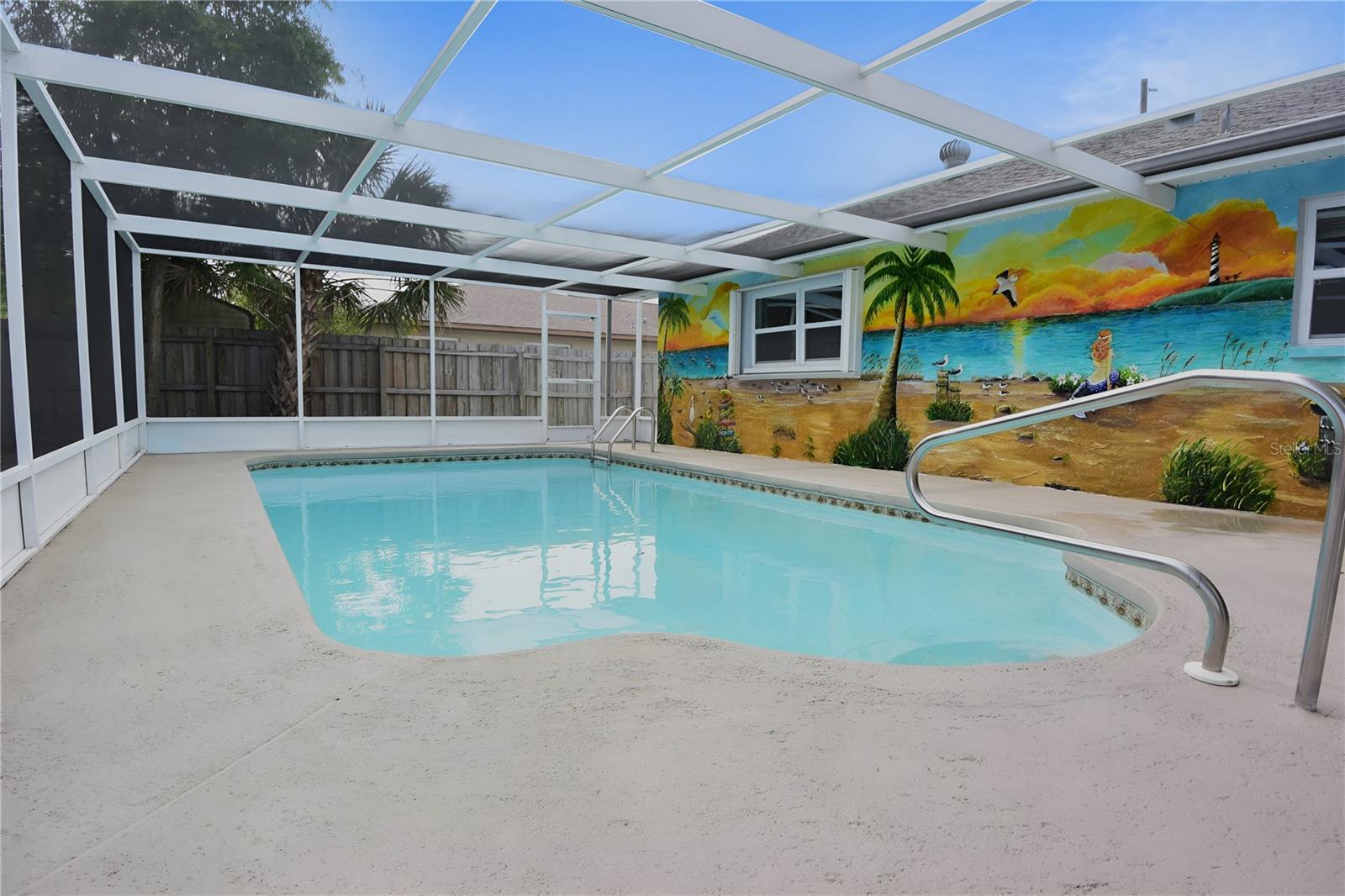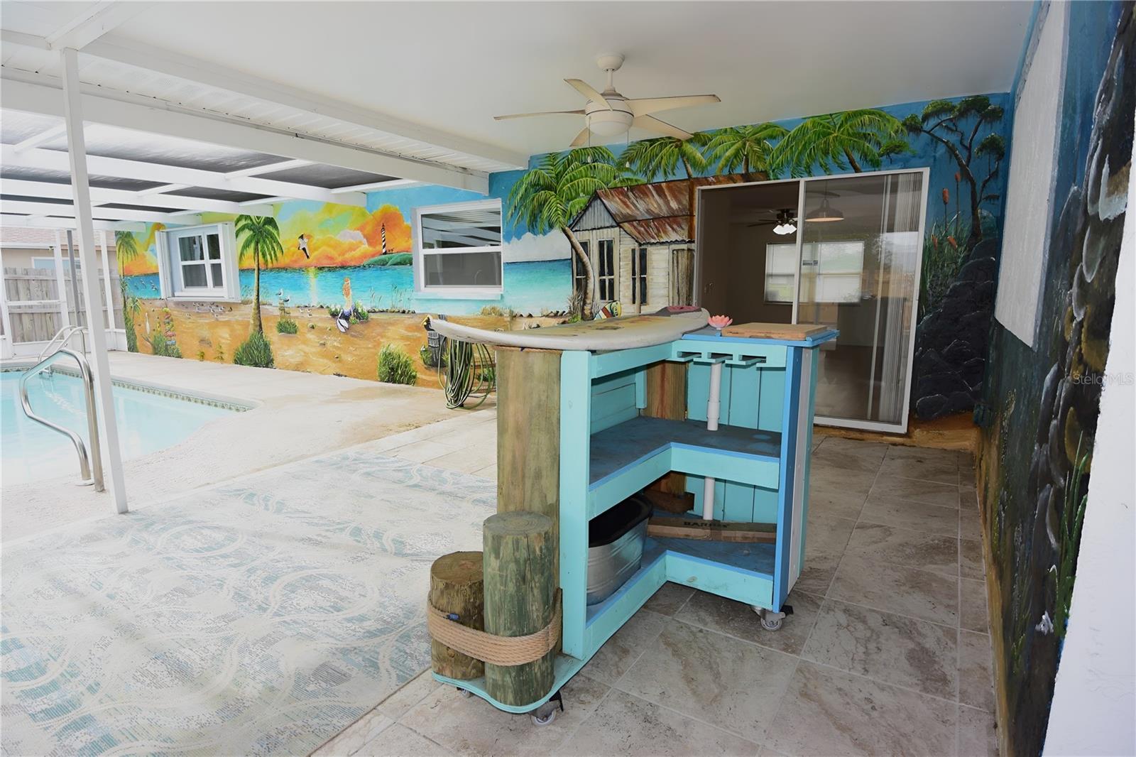 One or more photo(s) has been virtually staged. Welcome to Island Time—where it feels like 5 o’clock somewhere, all the time. This adorable 3-bedroom, 2-bath, 2-car garage pool home offers a relaxed beachy vibe and a well-designed split floor plan with spacious bedrooms. The updated kitchen features granite countertops and newer stainless steel appliances, while both bathrooms have been tastefully renovated with quality finishes. The interior has been freshly painted and includes new carpet in the bedrooms, making the home move-in ready. An oversized two-car garage provides ample storage space. The outdoor living area is a standout, featuring a covered porch, outdoor shower, custom beach bar, and a private, fenced backyard with no rear neighbors—perfect for entertaining or unwinding. If you are searching for a pool home in the Spring Hill area, this property should be at the top of your list.