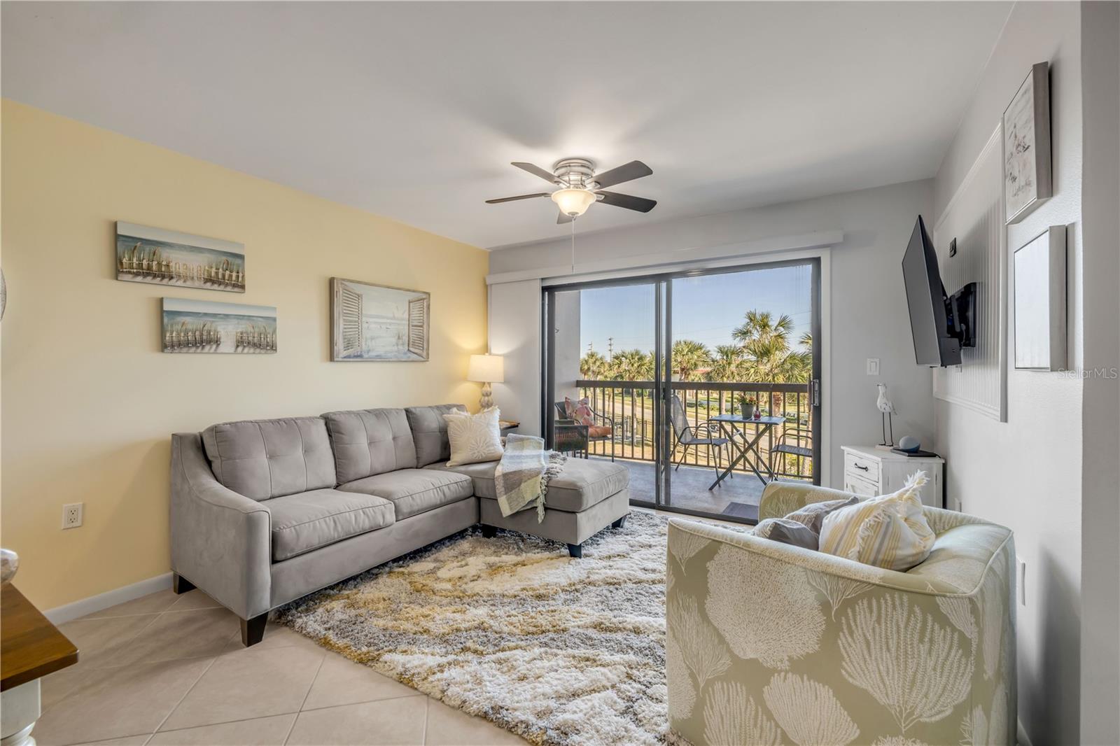 Welcome home to this stunning, FULLY renovated in May of 2024, beach condo that perfectly blends coastal charm with modern luxury. Nestled between the Atlantic Ocean and the Matanzas River, this TURNKEY, top-floor condo offers ultimate PRIVACY as it is located in a highly sought after, quiet, and private location of Ocean Village Club and comes completely furnished! Upon entering, you’re greeted by the fully renovated kitchen, complete with soft-close shaker-style cabinets, stunning granite countertops, beautiful backsplash, top-of-the-line stainless steel appliances (2024) and a breakfast bar. As you continue through the home, you will be impressed by the open concept layout that flows effortlessly into the living area that exudes a coastal feel complete with a charming beadboard accent feature and pull-out couch, ideal for accommodating guests. The large glass sliders lead you to the spacious balcony, where you can enjoy a peep view of the Atlantic Ocean, reminding you how close you are to the shore. The spacious primary bedroom comes complete with an electric, adjustable king-sized bed (2024) and a huge walk-in closet, ensuring plenty of storage. The beautifully updated bathroom is a perfect example of coastal elegance, featuring beadboard details, a beautiful vanity, upgraded mirror & light fixtures, heightened toilet, resurfaced shower/tub combo, and top of the line showerhead. With bathroom access from both the bedroom and the living area, this layout is perfect for when guests are visiting. For added convenience, this condo also features a full-sized washer and dryer (2024) inside the unit. The freshly painted interior, all newer interior doors, and luxury tile flooring throughout the entire home creates a warm and inviting atmosphere. The complex itself boasts resort-style amenities that make you feel like you’re on vacation year-round. These include a gated entrance, two pools (one heated), tennis and shuffleboard courts, a private beach walkover, a clubhouse, fitness room, shared grills, and a covered dining pavilion. The monthly HOA fee includes access to all amenities, water & sewer, trash collection & recycling, internet & cable, a master insurance policy, maintenance of grounds & exterior of the building, and optional onsite property management. This unit is short-term rental-friendly, providing a fantastic opportunity for generating income and is also in close proximity to shopping and restaurants directly across the street!