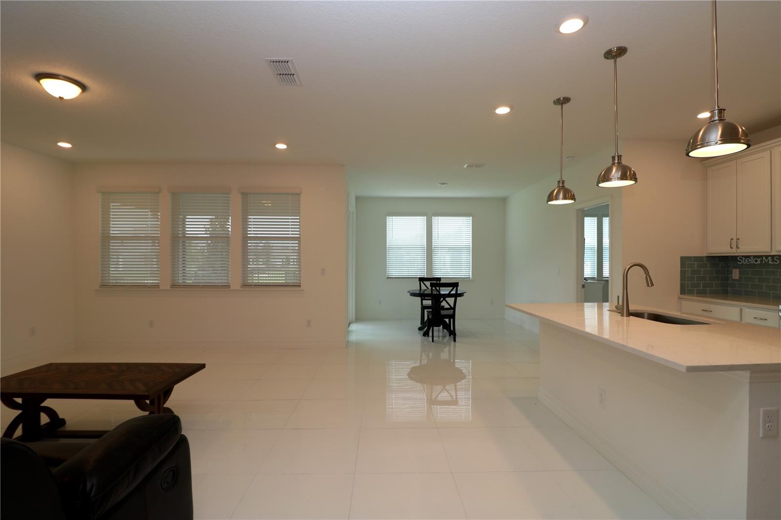 This one year old home is like new! Barely lived in and with awesome upgrades. Owner had 20x20 tiles installed all throughout the this home, extended the garage by an extra 4 feet, purchased and installed water treatment unit are just a few of these upgrades. Open floor plan with spacious kitchen offering Kitchen Aid appliances and island overlooking living and dining room. Ample kitchen cabinets and counter space with a pantry are an added bonus. Inside laundry room with washer and dryer. Home sits at the entrance to an open cul-de-sac with a nice fenced back yard. Just adjacent to the home a stone walking path, the community pond with walking path all way around it and a beautiful covered bench to relax on. Community has sidewalks throughout and is close to shopping, restaurants and more! This home is a must see if seeking new construction with everything done!