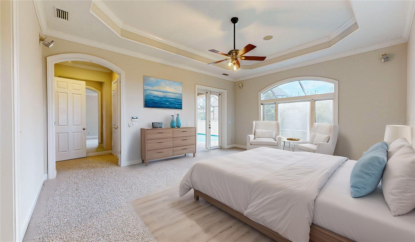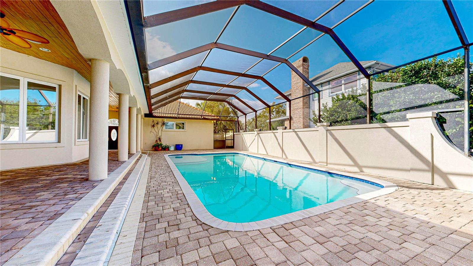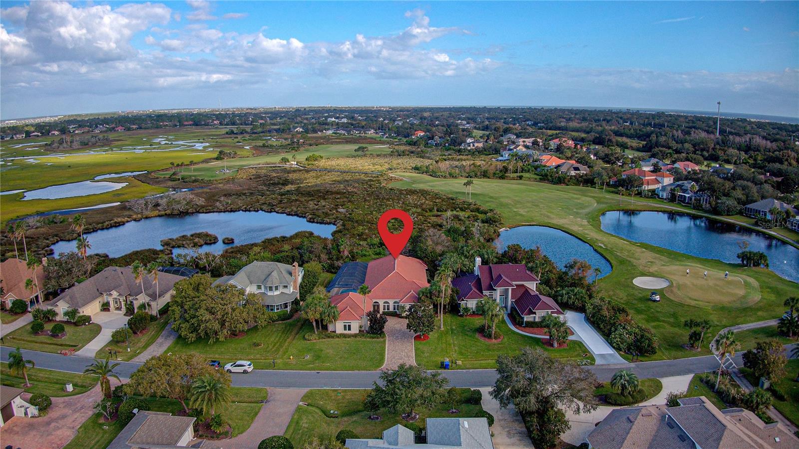 One or more photo(s) has been virtually staged. Mediterranean Estate with Marsh Views & Saltwater Pool in a Premier Golf Community. Welcome to 308 Marsh Point Circle, a beautiful 3-bedroom, 3-bath luxury home in St. Augustine Beach, just a mile from the ocean and minutes to historic downtown. Nestled in a sought-after guard-gated golf course community, this near half-acre property offers an ideal blend of coastal charm and resort-style living. The home's Mediterranean architecture, complete with block construction and a durable tile roof, creates an inviting first impression. Inside, the open layout is perfect for entertaining, featuring a spacious living area with a fireplace, 10 foot ceilings and large French doors leading out to the veranda & screened pool area. The kitchen is well-appointed with cherry wood cabinets, a gas range, and new appliances. Fresh paint and new carpet in bedrooms give the home a modern and welcoming feel. Step outside to enjoy the large in-ground saltwater pool, recently resurfaced and surrounded by expansive paver decking. The oversized veranda and pool area overlook the serene marsh, offering a peaceful retreat for relaxing or hosting gatherings. Perfect for enjoying sunsets or your morning coffee in the fresh air. Located in a top-tier golf course community, with membership you'll have access to exceptional amenities, including a tennis club, country club with a restaurant, and a well-maintained golf course. Whether you're hitting the links, enjoying a meal at the clubhouse, or spending the day at the nearby beach, this home defines the best of both coastal and luxury community living.