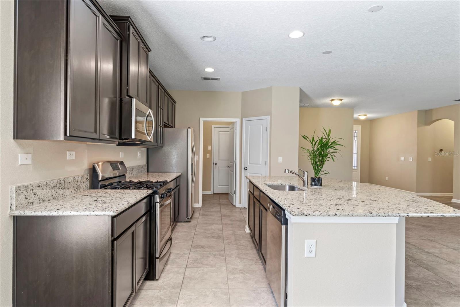 Closing Cost Assistance Available! Back on your radar—and better than ever! This charming 4 bedroom - 2 bathroom home offers unbeatable value & room to make it your own. Nestled in the desirable gated community of Markland, this well-maintained property features 42' cabinets, granite countertops, gas range, tiled throughout with no carpet for low maintenance, a front porch, back lanai & a fully fenced yard adds convenience & charm to this home. With fresh updates and plenty of natural light, it's easy to envision settling into a home like this. Whether you're a first-time buyer or looking to right-size, this one checks all the boxes. Bonus: Sellers are motivated—don't miss your chance to own this gem at a new price point! Schedule your private showing today and discover why this home is worth a second look. Education is at its best with top-rated schools. Amenities include pool, gym, pickle ball courts, play ground & dog park. 1 Year Home Warranty included.