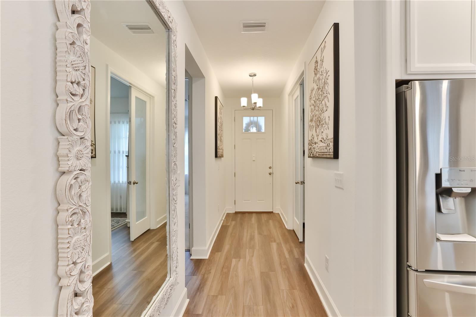 This 2023 beautiful 3 bedroom, 2 bath home for sale in the sought after Shearwater community has a lot. Sleek convenience and effortless luxury combine to create The Myrtle lifestyle home plan by David Weekly. Open floor plan gives you plenty of room for entertainment with extra windows allowing lots of natural light to flow through the home! Begin and end each day in the elegant Master Bedroom which features a sanctuary bathroom with his and hers sinks and a walk-in closet. Both spare bedrooms present a delightful space for growth and personalization. Light and Bright kitchen features an island with quartz countertops, gas stove, SS appliance package and ample room for food storage and meal prep! Luxury vinyl flooring throughout the main living areas means you don't need to worry about spills. Enjoy living in golf cart friendly Shearwater and using all the fun-packed amenities such as fitness center, tennis courts, a resort-style lagoon, water-slide tower, nature trails, and more, as well as being 16.4 miles to the Atlantic surf!