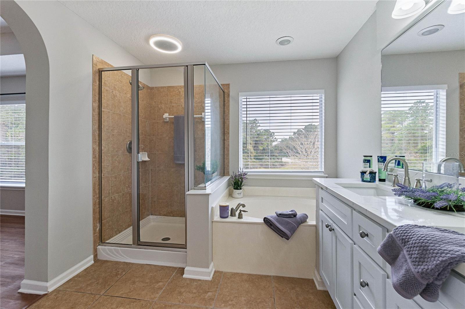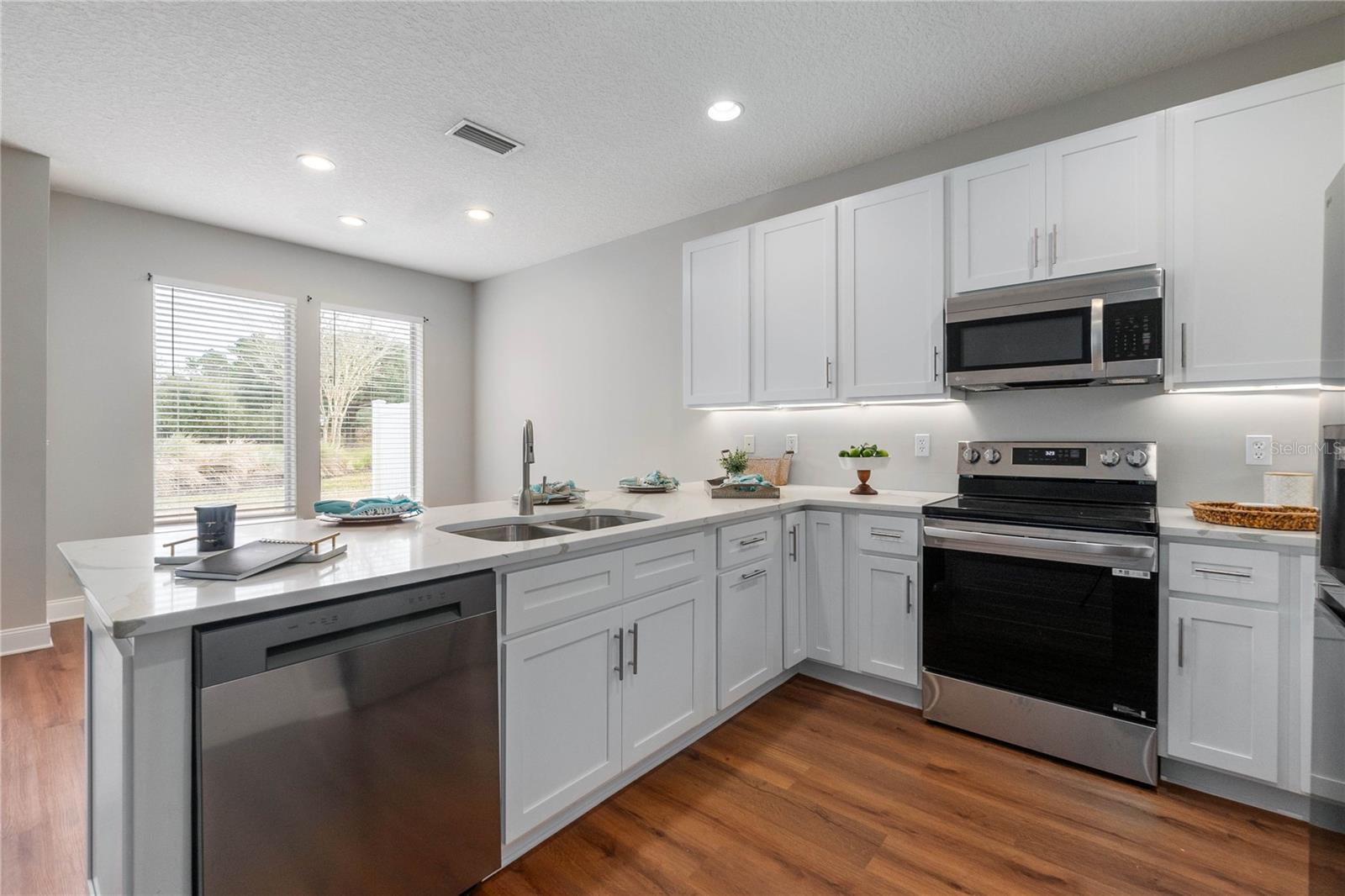 Check out all the beautiful updates on this conveniently located townhome in Villages of Valencia. As you enter, you will notice new LVP Flooring and wood treads on the stairs. Convenient half bath on the ground floor. Great floor plan with a large living room space and screened lanai featuring a nice backyard view. Newly remodeled kitchen with gorgeous quartz countertops, all new stainless steel appliances, and white shaker cabinets. Dining area with room for bar stool seating at the counter. Upstairs includes new LVP Flooring, sitting area or office space and laundry room. Two bedrooms with ensuite bathrooms, walk-in closets and new quartz tops. This move in ready home has been freshly painted and even has a new Epoxy coated garage floor. Conveniently located close to shopping, dining, schools, I-95, Crescent Beach and all that the First Coast has to offer! Call today to schedule your appointment and start ''Living the Dream in St. Augustine''.