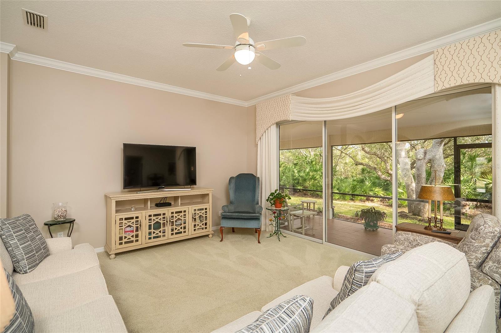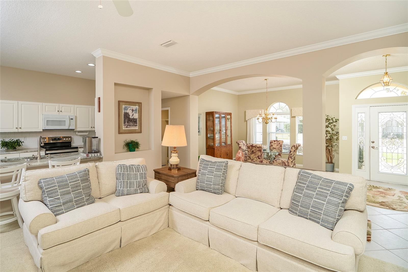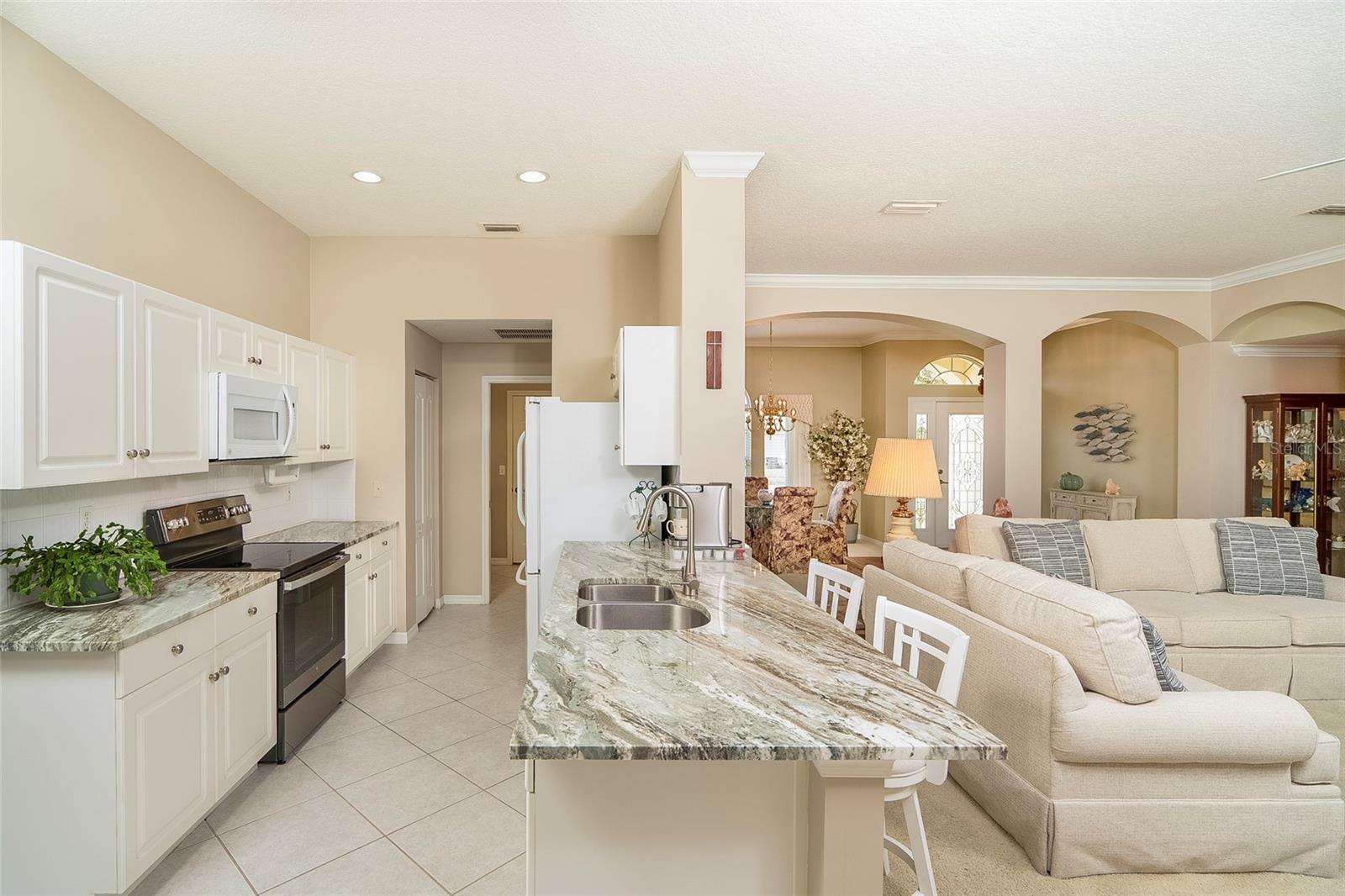 Welcome to this beautifully maintained 3-bedroom, 2-bath concrete block home in the highly sought-after Ocean Palms community on Anastasia Island. Built in 2000, this 1,762 sq. ft. residence offers a split floor plan designed for both comfort and style. Step inside to an inviting living space featuring high ceilings and expansive 12’ sliders that bathe the home in natural light while seamlessly connecting to the extended lanai and tranquil preserve backyard—a private oasis for relaxation or entertaining. The updated kitchen opens to the living room and breakfast nook, creating the perfect flow for modern living, while a formal dining room offers an elegant space for gatherings. Designed with quality finishes, the home boasts 18” diagonal tile flooring in the walkways, crown molding, and a spacious primary suite with 8’ sliders leading to the lanai. The primary bath includes a double vanity and walk-in shower. Additional features include a two-car garage with a utility sink, a 5-year-old roof, and a termite bond for peace of mind. Ocean Palms is a neighborly community known for its serene coastal setting and amenities, including a community pool, fishing dock, and walking trails. Just minutes from pristine beaches, top-rated schools, and historic downtown St. Augustine, this is a "feel-good" home in one of the island’s best neighborhoods on the intercoastal waterway. See “Aruba” floor plan on documents.