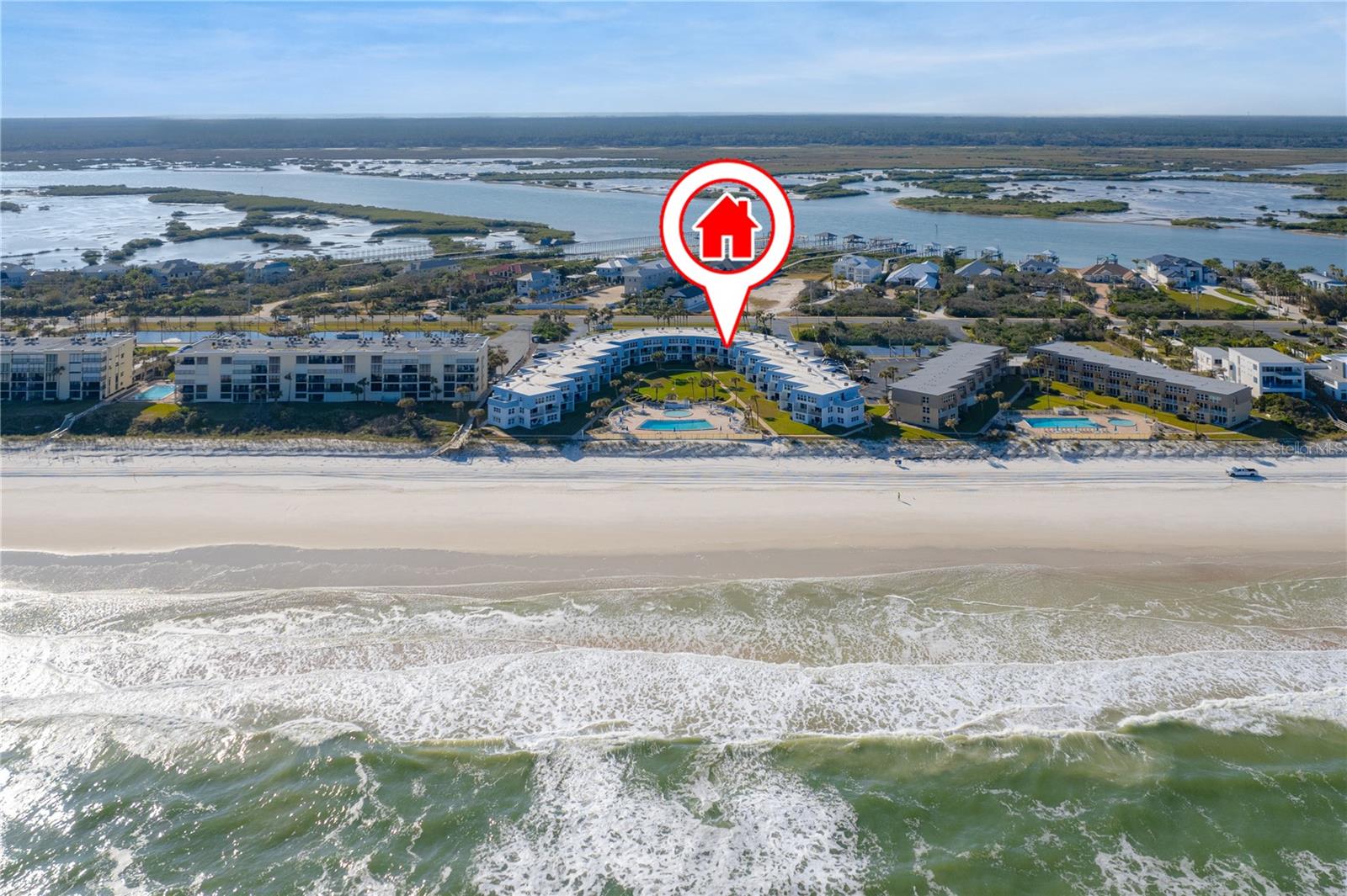 NEW WASHER/DRYER WITH ACCEPTABLE OFFER!!Beloved Crescent Sandpiper –like no other - where the cool, sparkling pool is just steps away from the soft, sugar sand beaches of the Atlantic Ocean. Easily one of the most beautiful units in one of the most sought-after communities in St. Augustine – with views that will make you never want to leave your cozy balcony hammock. Perfect for vacations or as a successful investment rental, this beautifully updated and appointed condo will take your breath away. This intimate community with only 51 units captures the azure, blue ocean views like no other. High and dry and not in a flood zone, this amazing worry-free living is the answer to dreams. Spend your days at the beach and pool, then entertain your guests in the fully updated chef’s kitchen, spacious living room and perfectly situated balcony. Both bedrooms are open and airy, both bathrooms are beautifully updated. The grounds of Crescent Sandpiper are famously luscious, green and always inviting. Jump from the pool to the beach in seconds. Enjoy your morning coffee on your private balcony and savor the sunsets from the beautiful and spacious sundeck. Other amenities include/pickleball courts, locked bike storage, and a community room with TVs, kitchenette and ample room for additional entertaining. Absolutely move-in ready, down to the adorable teaspoons, this treasure is ready for the beach lifestyle to go on and on…Please note: this condo was partially staged for photos and video so some visual differences will be present for showings. We are happy to accommodate your showing even when guests are in place.