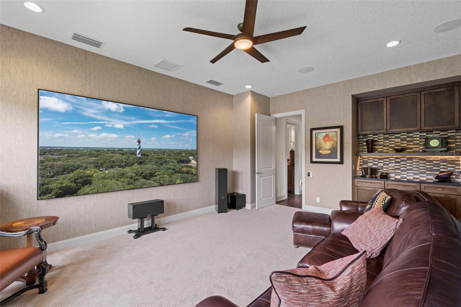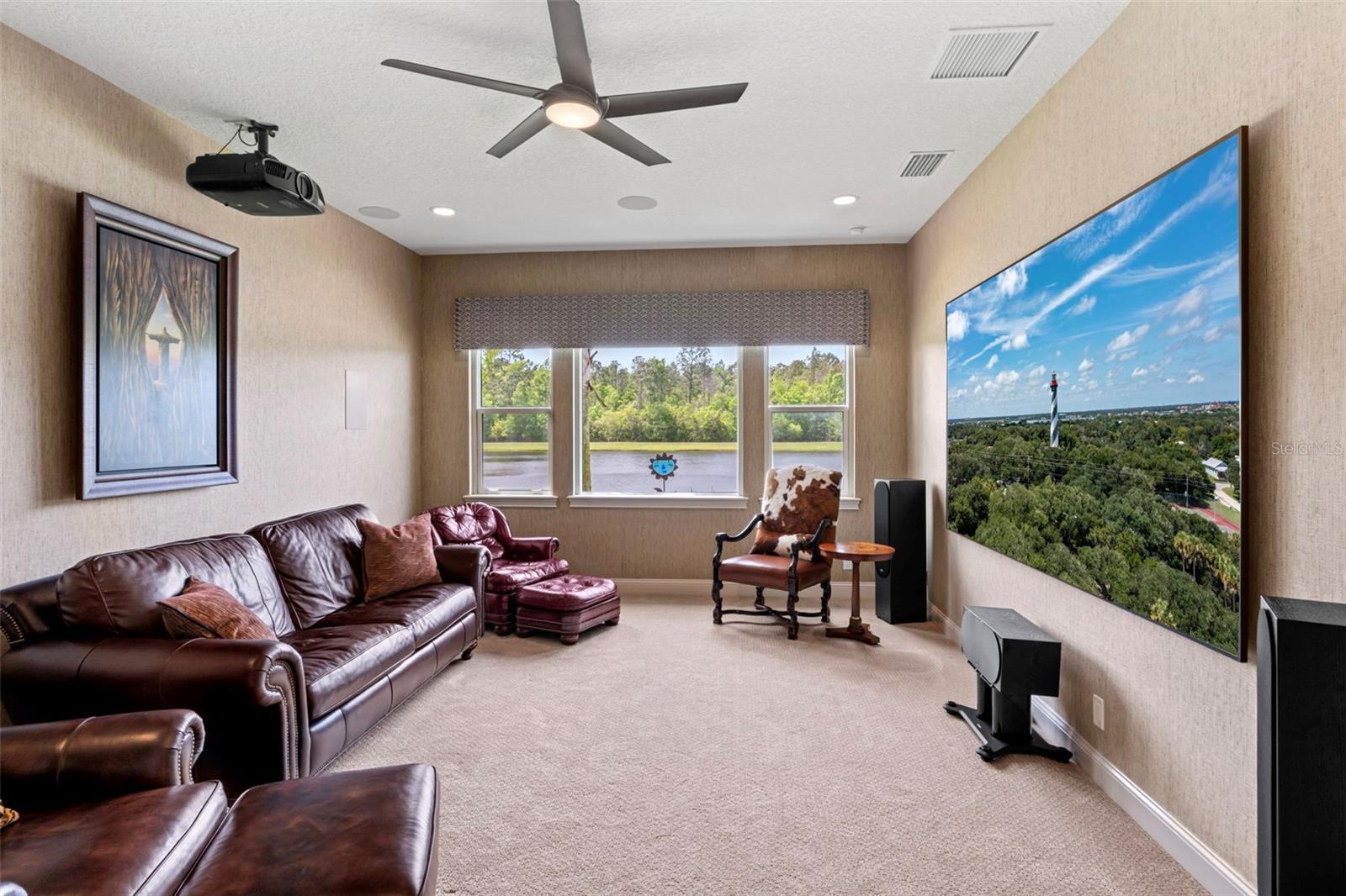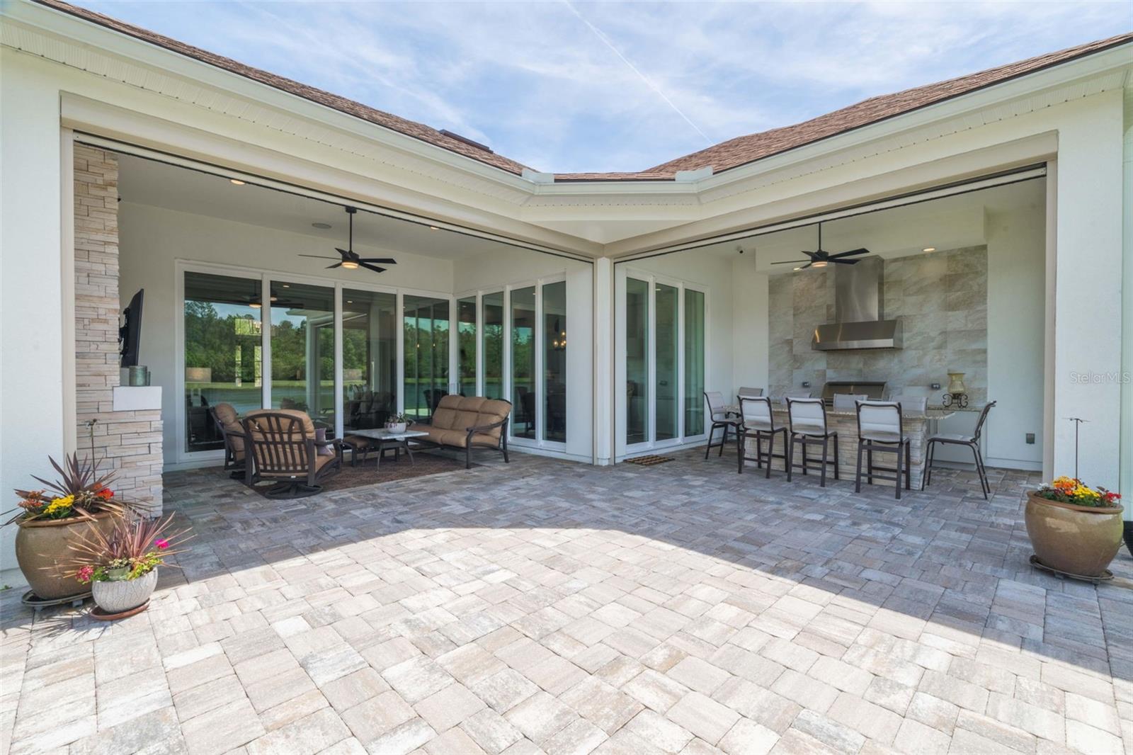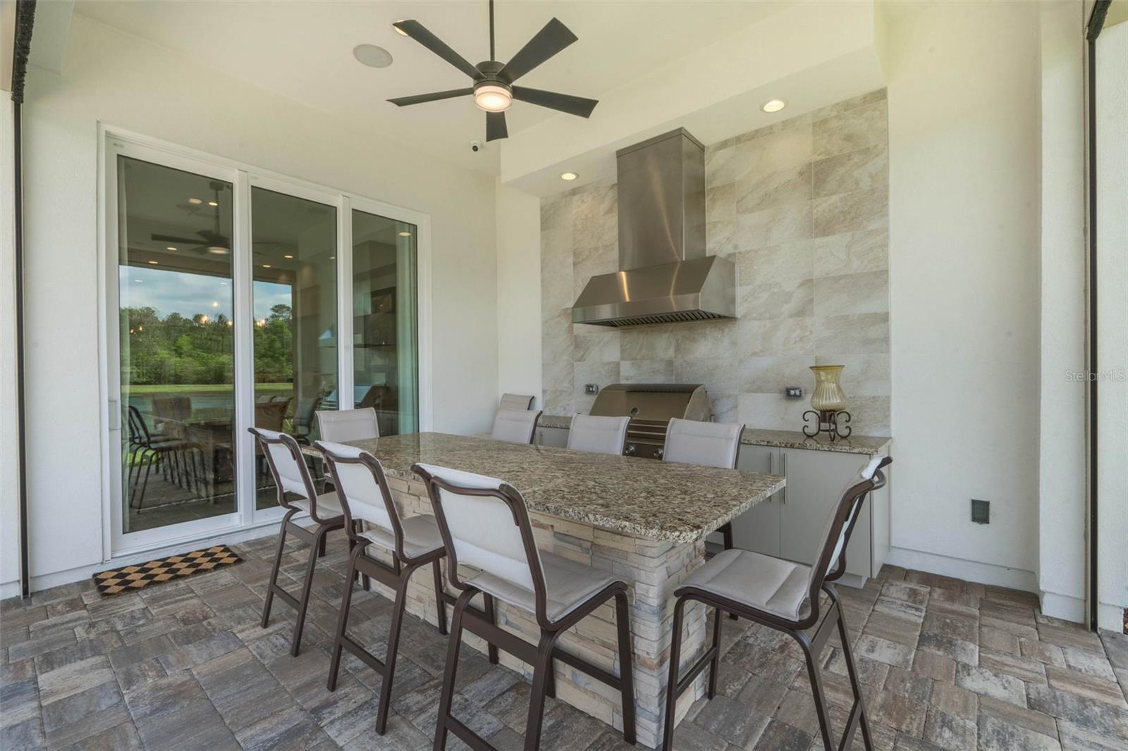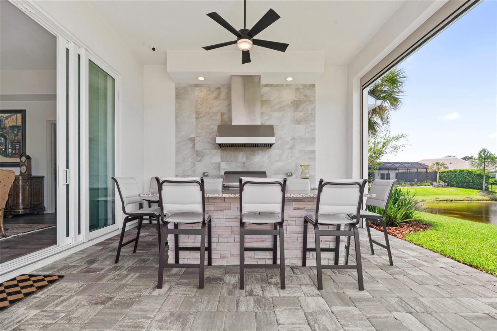 This Arthur Rutenberg custom built home in the gated community of Markland delivers elegance, innovation, & luxury on a grand scale. This home was designed for those who appreciate craftsmanship, detail, & seamless indoor outdoor living. From the moment you arrive, the pavered driveway & expertly manicured landscaping framed by elegant palm trees set the tone for the quality & beauty found throughout this home. Designed with entertaining in mind, the open concept floor plan is enhanced by soaring 12-foot ceilings, & collapsible 10-ft sliding glass doors that seamlessly connect indoor comfort with outdoor splendor. Natural light & panoramic views fill the main living areas, creating an elevated yet welcoming atmosphere. Step outside into your private resort style oasis featuring a built in summer kitchen with professional grade grill, marble countertops, a stunning 9.5-ft stacked stone dining table with integrated lighting & electrical, & a cozy gas fireplace sitting area. The extended screened lanai completes the space, offering the perfect backdrop for hosting guests or enjoying quiet evenings at home. The home has been enlarged to allow for generously sized rooms, including a chef's kitchen with expanded cabinetry, extended countertops, an oversized island & a multi zone wine cooler that is adjacent to the dining area. Throughout the home, storage is abundant including an enormous hidden walk-in pantry that includes a second refrigerator and coffee bar. The spa-like primary suite is a true retreat featuring his & her custom built-in closets, a luxurious bathroom with dual vanities & an oversized glass walk-in shower. Movie nights will never be the same in the state-of-the-art home theater, featuring a Dolby Atmos system, 125" screen, 4K projector, capable of 11 integrated speakers, & a dry bar. Your very own in-home cinema experience! Looking for somewhere quiet to work, the large office is perfect for working from home, complete with motorized blinds for added convenience and privacy. Guests will enjoy comfort & quiet with one Guest bedroom offering an en-suite bath, while another guest bedroom & full bath are located with easy access to the outdoor living areas. Livability and sophistication is offered through the home with custom drapes & wallpaper throughout, built-in closet systems in all closets, engineered hardwood floors, Motorized blinds (office, theater, master bedroom), a Whole-house Pentair filtration system & water softener system, Dual-zone Trane HVAC with MERV 11 allergy-free HEPA filtration, high speed Cat 6 wiring throughout, Eero 3-zone mesh WiFi system, Centralized electronics racking system, Monitored Security & Fire, 30 day recordable camera security, tankless gas water heater with recirculating pump, Smart LG Washer & Dryer, overhead rack systems in the garage & pull down attic stairs with flooring. Centralized Smart Home system that manages dimmable lighting, 6-zone Sonos music speaker system, door locks, garage doors, motorized blinds, cameras, video doorbell through in-wall Brilliant controllers, Alexa voice or remotely through your mobile device. This home combines elegance, innovation & functionality, all in one of St. Johns County's most sought-after gated communities. Don't miss this lifetime opportunity to own a truly exceptional home. Education is at its best with top-rated schools & wonderful amenities that include a pool, gym, pickle ball courts, playground, kayak launch, firepit & dog park.