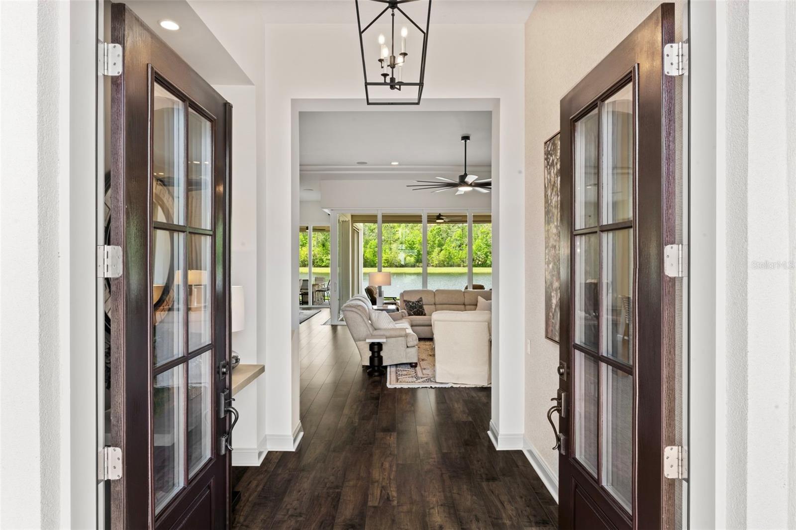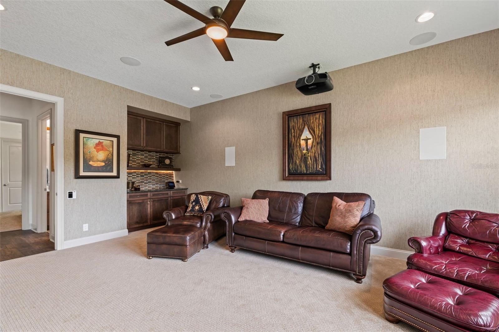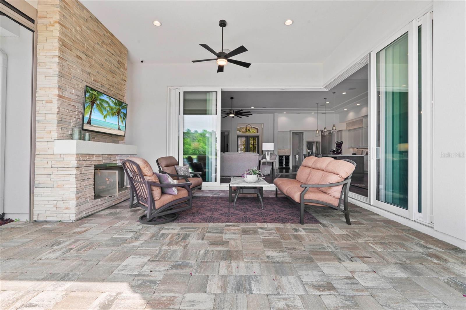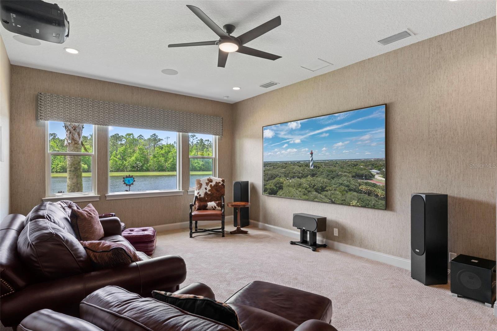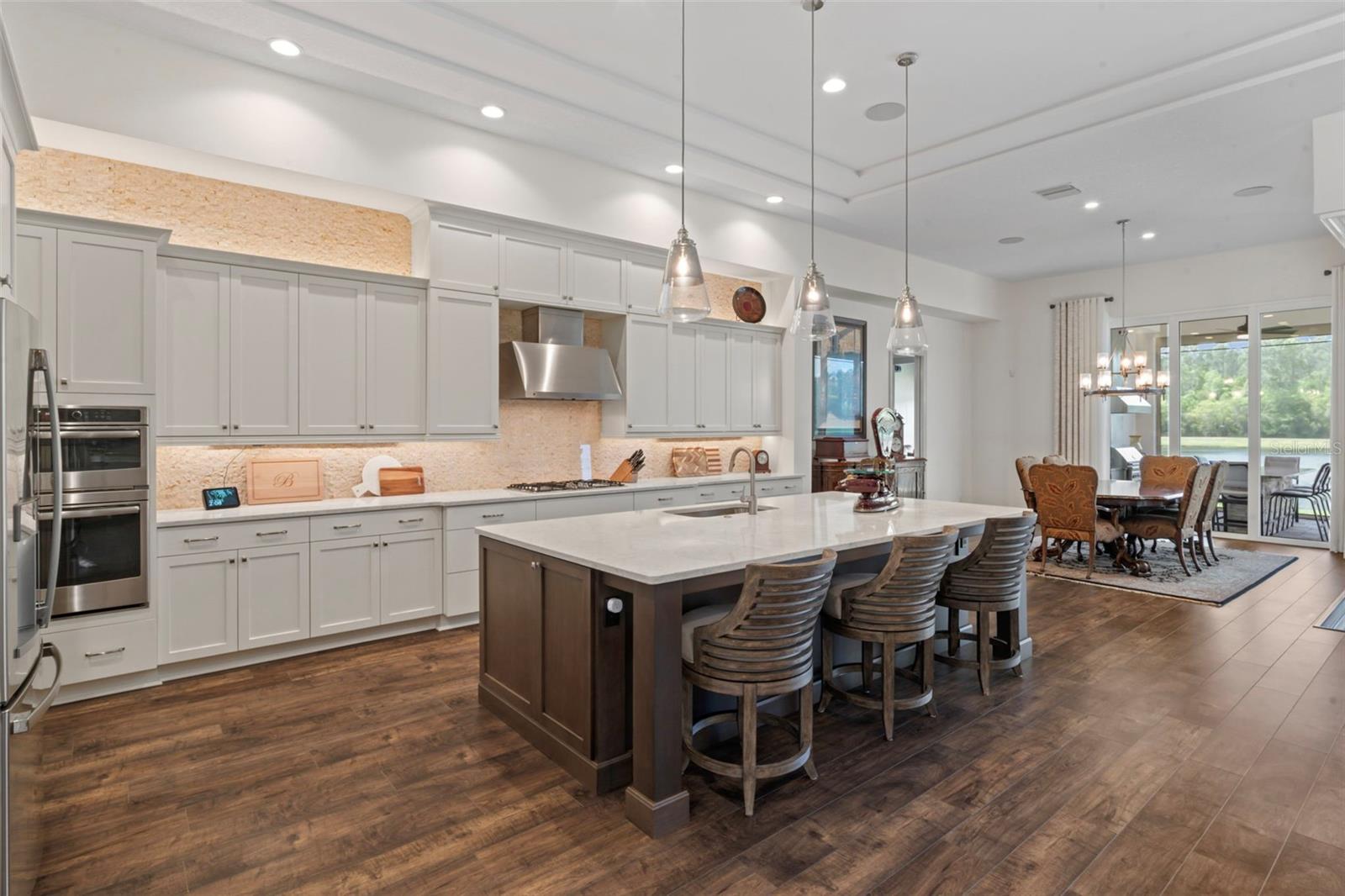 This Arthur Rutenberg custom built home in the gated community of Markland delivers elegance, innovation, & luxury on a grand scale. This home was designed for those who appreciate craftsmanship, detail, & seamless indoor outdoor living. From the moment you arrive, the pavered driveway & expertly manicured landscaping framed by elegant palm trees set the tone for the quality & beauty found throughout this home. Designed with entertaining in mind, the open concept floor plan is enhanced by soaring 12-foot ceilings, & collapsible 10-ft sliding glass doors that seamlessly connect indoor comfort with outdoor splendor. Natural light & panoramic views fill the main living areas, creating an elevated yet welcoming atmosphere. Step outside into your private resort style oasis featuring a built in summer kitchen with professional grade grill, marble countertops, a stunning 9.5-ft stacked stone dining table with integrated lighting & electrical, & a cozy gas fireplace sitting area. The extended screened lanai completes the space, offering the perfect backdrop for hosting guests or enjoying quiet evenings at home. The home has been enlarged to allow for generously sized rooms, including a chef's kitchen with expanded cabinetry, extended countertops, an oversized island & a multi zone wine cooler that is adjacent to the dining area. Throughout the home, storage is abundant including an enormous hidden walk-in pantry that includes a second refrigerator and coffee bar. The spa-like primary suite is a true retreat featuring his & her custom built-in closets, a luxurious bathroom with dual vanities & an oversized glass walk-in shower. Movie nights will never be the same in the state-of-the-art home theater, featuring a Dolby Atmos system, 125" screen, 4K projector, capable of 11 integrated speakers, & a dry bar. Your very own in-home cinema experience! Looking for somewhere quiet to work, the large office is perfect for working from home, complete with motorized blinds for added convenience and privacy. Guests will enjoy comfort & quiet with one Guest bedroom offering an en-suite bath, while another guest bedroom & full bath are located with easy access to the outdoor living areas. Livability and sophistication is offered through the home with custom drapes & wallpaper throughout, built-in closet systems in all closets, engineered hardwood floors, Motorized blinds (office, theater, master bedroom), a Whole-house Pentair filtration system & water softener system, Dual-zone Trane HVAC with MERV 11 allergy-free HEPA filtration, high speed Cat 6 wiring throughout, Eero 3-zone mesh WiFi system, Centralized electronics racking system, Monitored Security & Fire, 30 day recordable camera security, tankless gas water heater with recirculating pump, Smart LG Washer & Dryer, overhead rack systems in the garage & pull down attic stairs with flooring. Centralized Smart Home system that manages dimmable lighting, 6-zone Sonos music speaker system, door locks, garage doors, motorized blinds, cameras, video doorbell through in-wall Brilliant controllers, Alexa voice or remotely through your mobile device. This home combines elegance, innovation & functionality, all in one of St. Johns County's most sought-after gated communities. Don't miss this lifetime opportunity to own a truly exceptional home. Education is at its best with top-rated schools & wonderful amenities that include a pool, gym, pickle ball courts, playground, kayak launch, firepit & dog park.