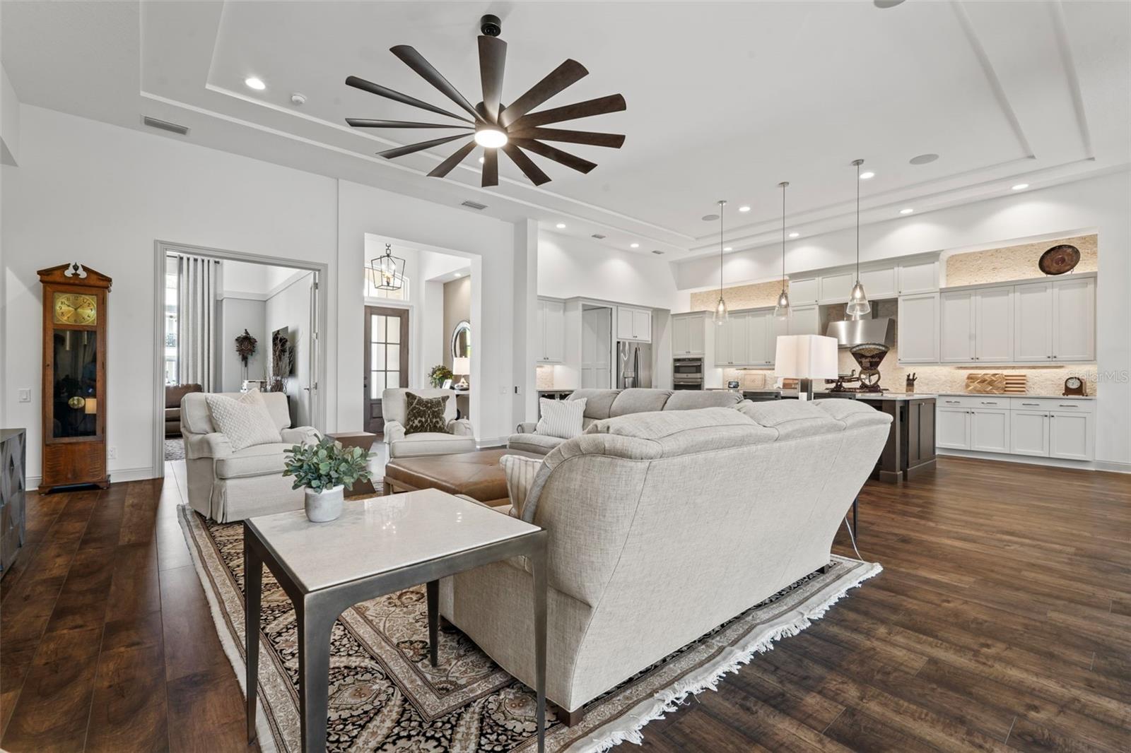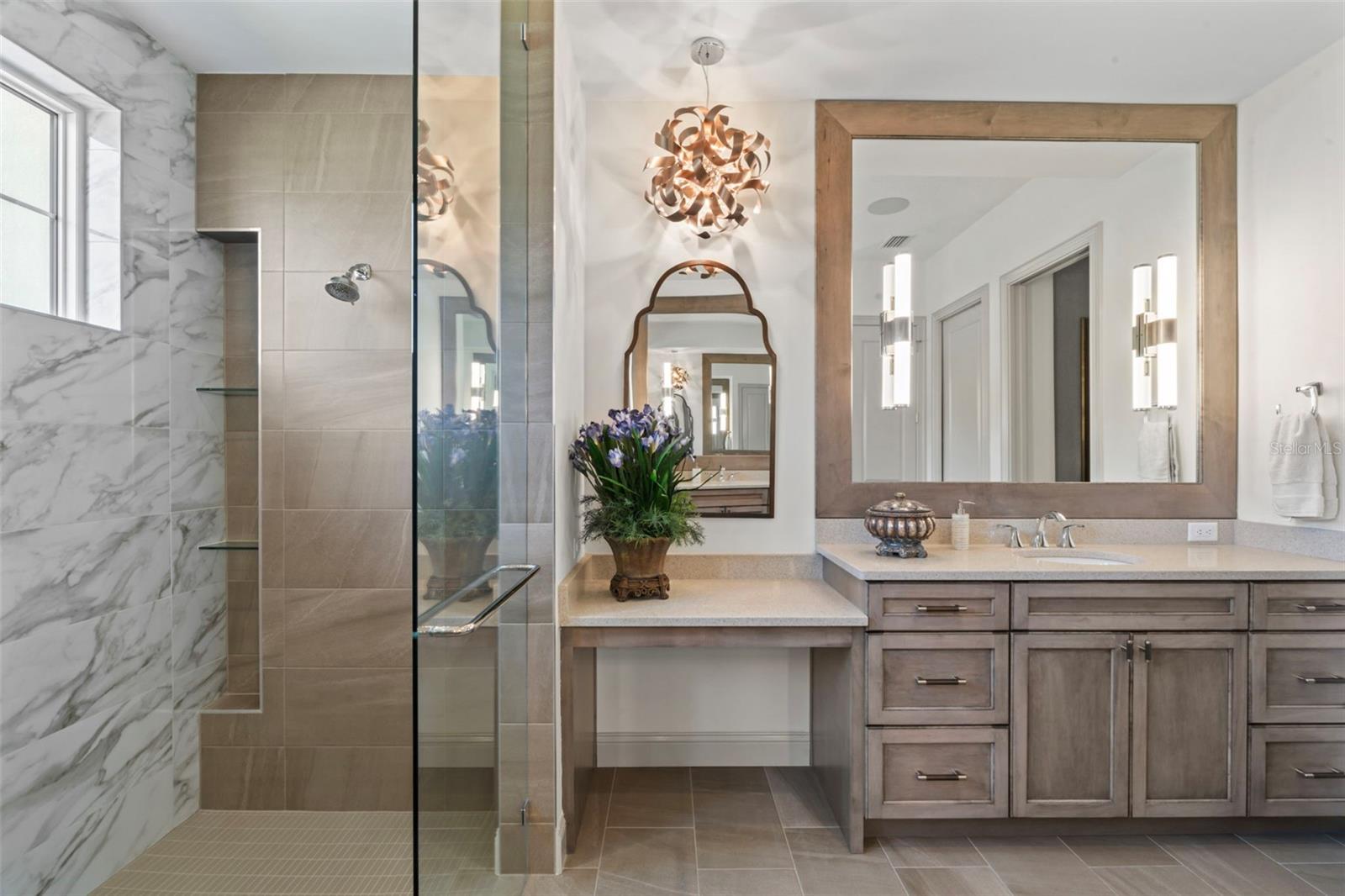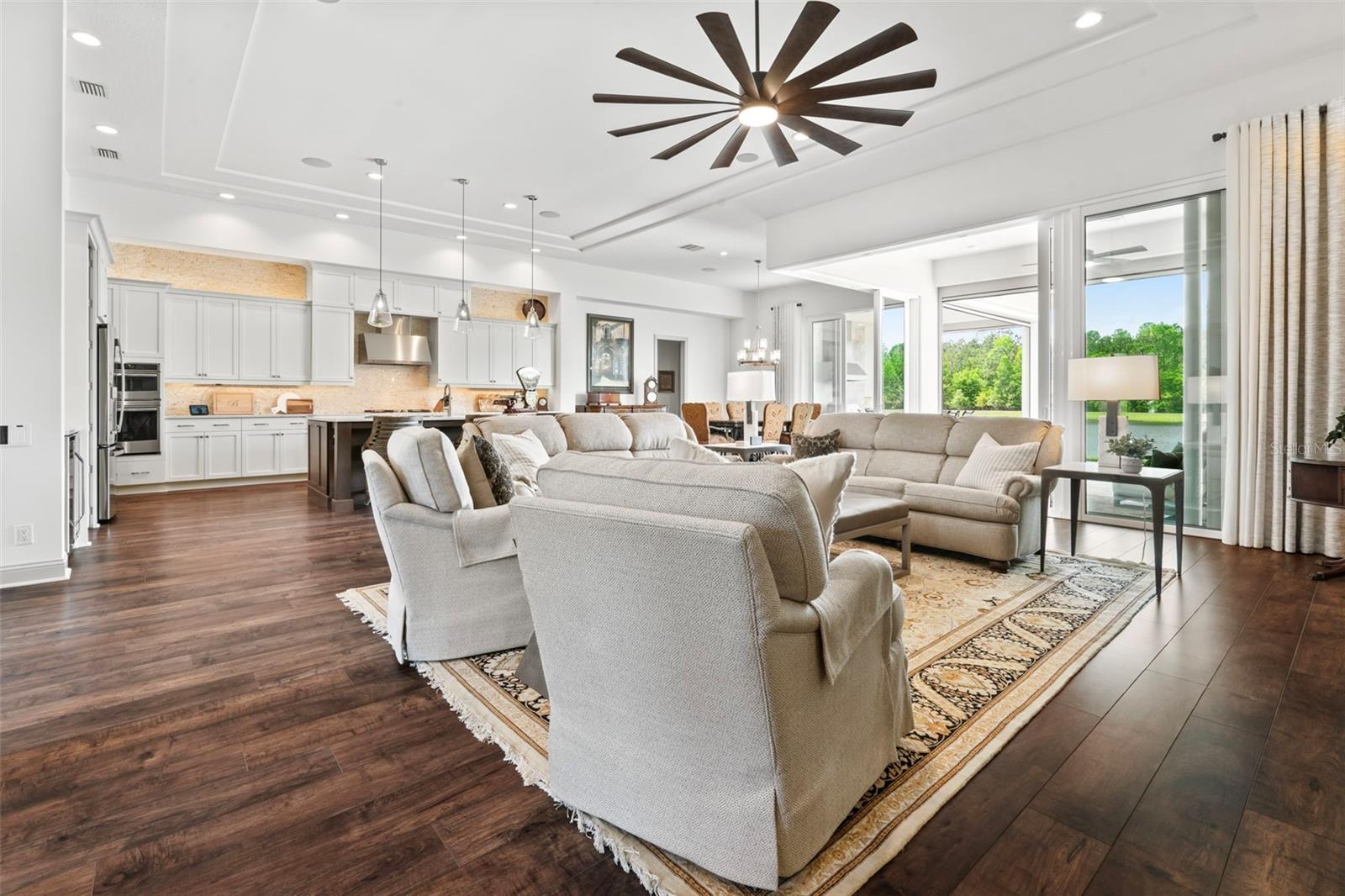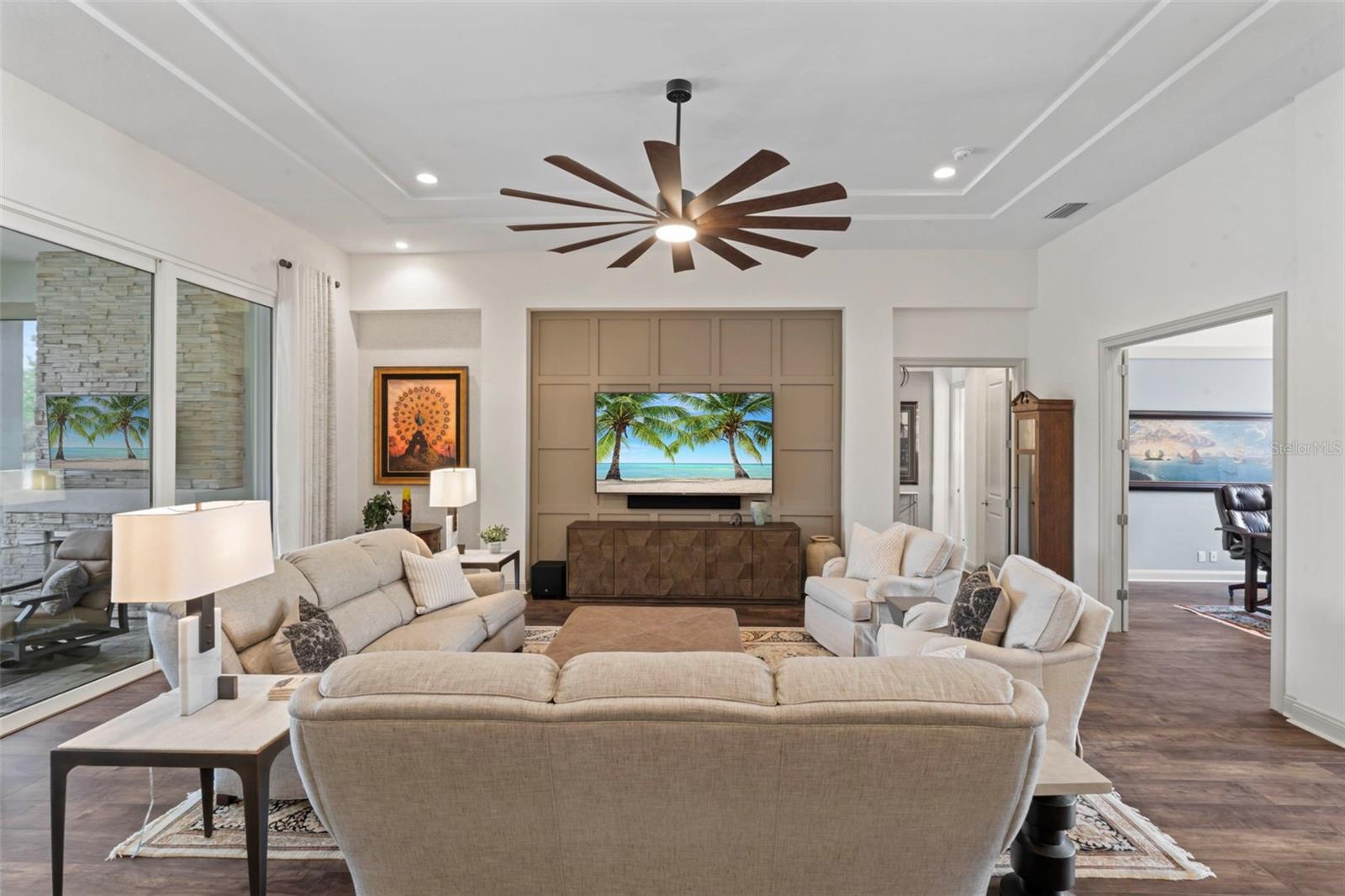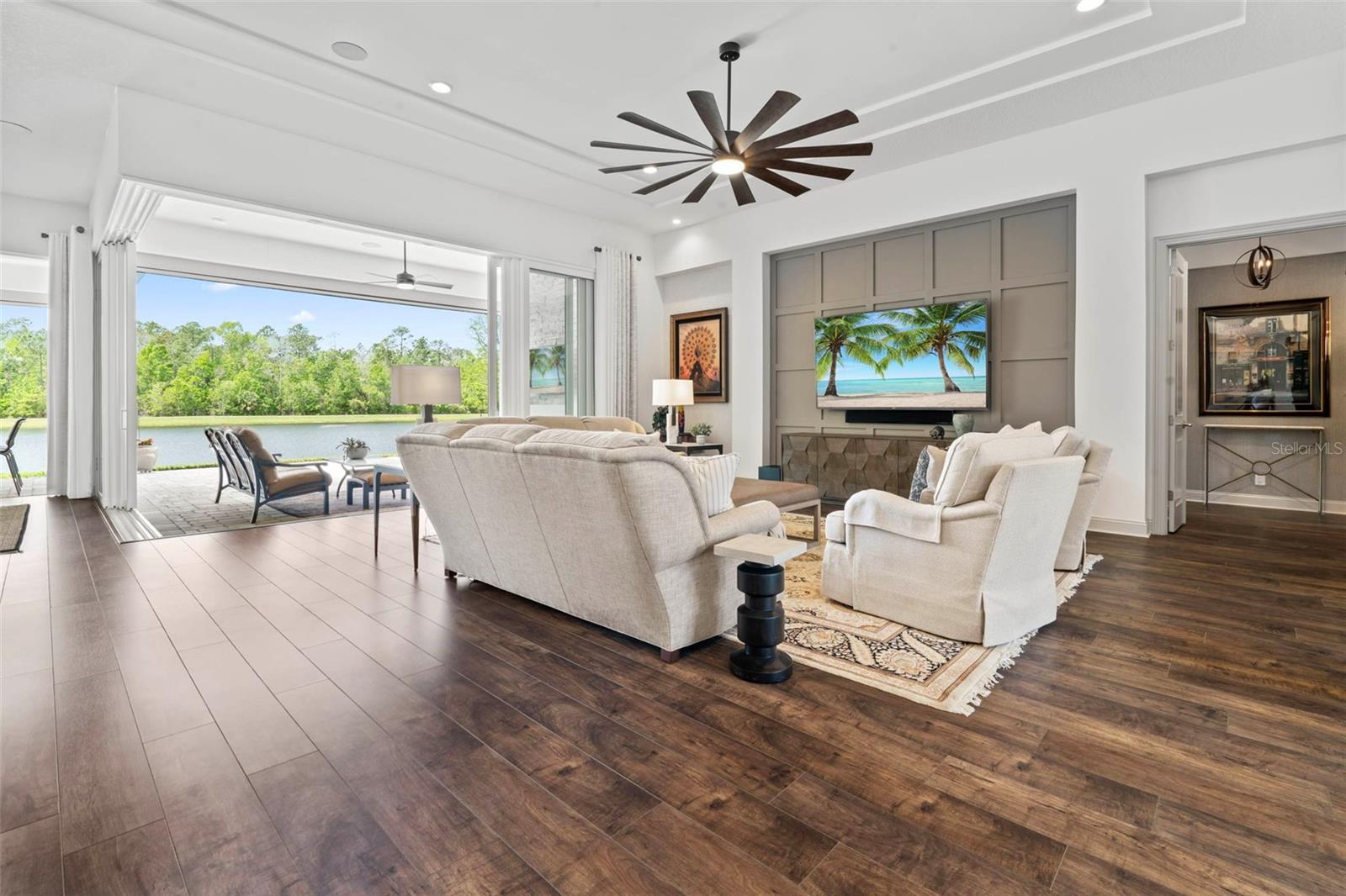 This Arthur Rutenberg custom built home in the gated community of Markland delivers elegance, innovation, & luxury on a grand scale. This home was designed for those who appreciate craftsmanship, detail, & seamless indoor outdoor living. From the moment you arrive, the pavered driveway & expertly manicured landscaping framed by elegant palm trees set the tone for the quality & beauty found throughout this home. Designed with entertaining in mind, the open concept floor plan is enhanced by soaring 12-foot ceilings, & collapsible 10-ft sliding glass doors that seamlessly connect indoor comfort with outdoor splendor. Natural light & panoramic views fill the main living areas, creating an elevated yet welcoming atmosphere. Step outside into your private resort style oasis featuring a built in summer kitchen with professional grade grill, marble countertops, a stunning 9.5-ft stacked stone dining table with integrated lighting & electrical, & a cozy gas fireplace sitting area. The extended screened lanai completes the space, offering the perfect backdrop for hosting guests or enjoying quiet evenings at home. The home has been enlarged to allow for generously sized rooms, including a chef's kitchen with expanded cabinetry, extended countertops, an oversized island & a multi zone wine cooler that is adjacent to the dining area. Throughout the home, storage is abundant including an enormous hidden walk-in pantry that includes a second refrigerator and coffee bar. The spa-like primary suite is a true retreat featuring his & her custom built-in closets, a luxurious bathroom with dual vanities & an oversized glass walk-in shower. Movie nights will never be the same in the state-of-the-art home theater, featuring a Dolby Atmos system, 125" screen, 4K projector, capable of 11 integrated speakers, & a dry bar. Your very own in-home cinema experience! Looking for somewhere quiet to work, the large office is perfect for working from home, complete with motorized blinds for added convenience and privacy. Guests will enjoy comfort & quiet with one Guest bedroom offering an en-suite bath, while another guest bedroom & full bath are located with easy access to the outdoor living areas. Livability and sophistication is offered through the home with custom drapes & wallpaper throughout, built-in closet systems in all closets, engineered hardwood floors, Motorized blinds (office, theater, master bedroom), a Whole-house Pentair filtration system & water softener system, Dual-zone Trane HVAC with MERV 11 allergy-free HEPA filtration, high speed Cat 6 wiring throughout, Eero 3-zone mesh WiFi system, Centralized electronics racking system, Monitored Security & Fire, 30 day recordable camera security, tankless gas water heater with recirculating pump, Smart LG Washer & Dryer, overhead rack systems in the garage & pull down attic stairs with flooring. Centralized Smart Home system that manages dimmable lighting, 6-zone Sonos music speaker system, door locks, garage doors, motorized blinds, cameras, video doorbell through in-wall Brilliant controllers, Alexa voice or remotely through your mobile device. This home combines elegance, innovation & functionality, all in one of St. Johns County's most sought-after gated communities. Don't miss this lifetime opportunity to own a truly exceptional home. Education is at its best with top-rated schools & wonderful amenities that include a pool, gym, pickle ball courts, playground, kayak launch, firepit & dog park.