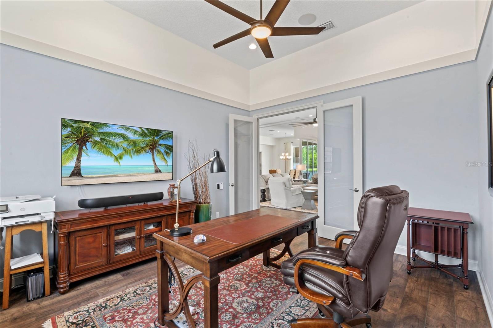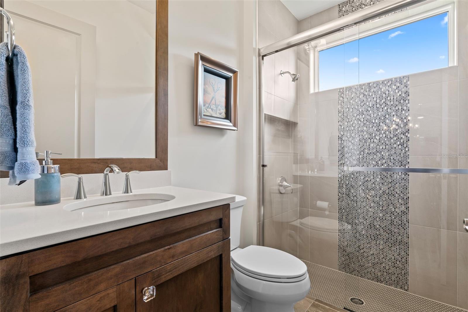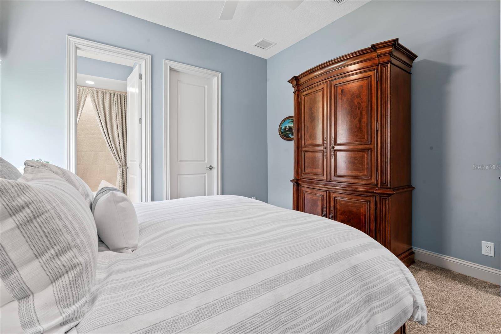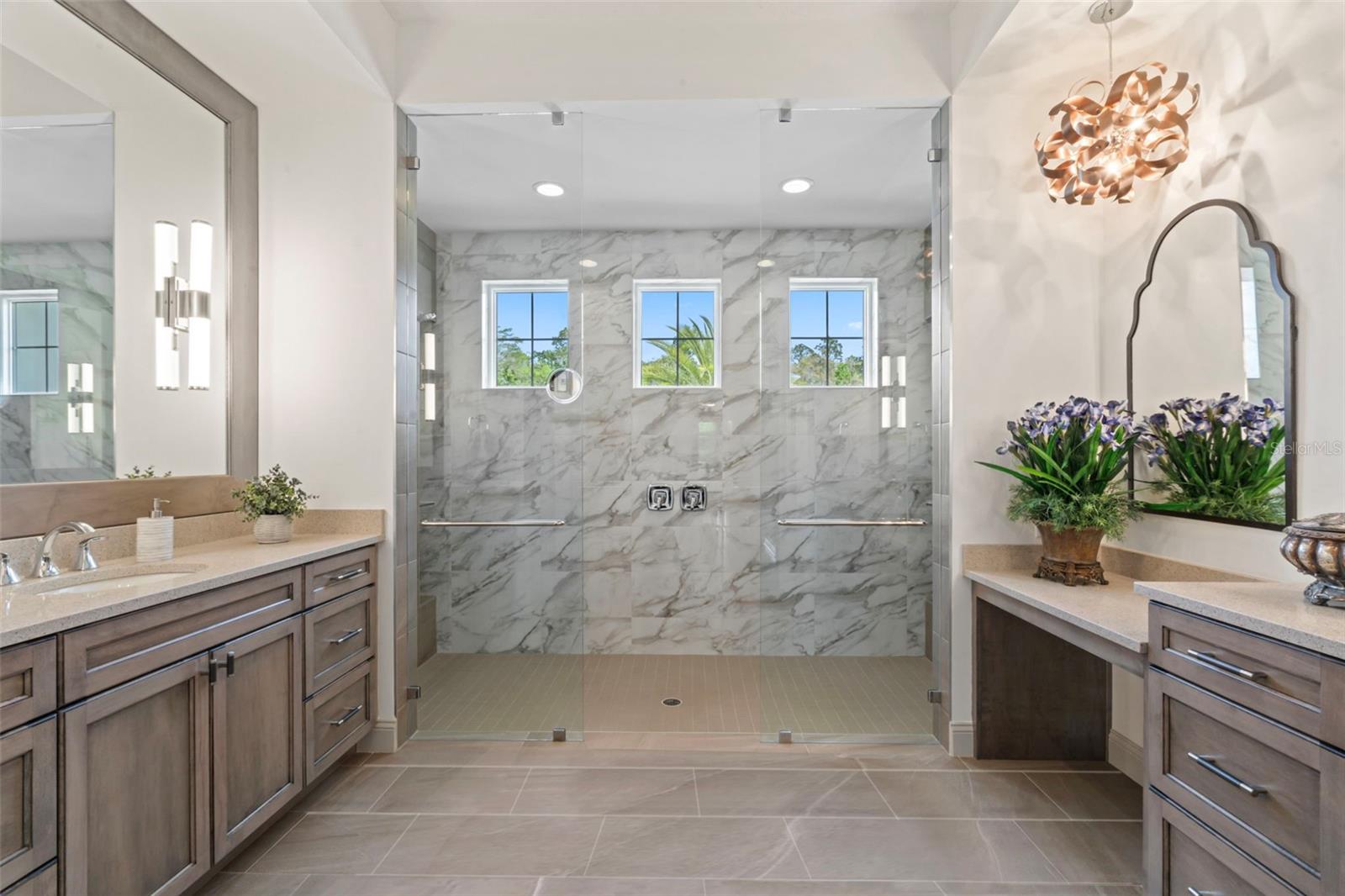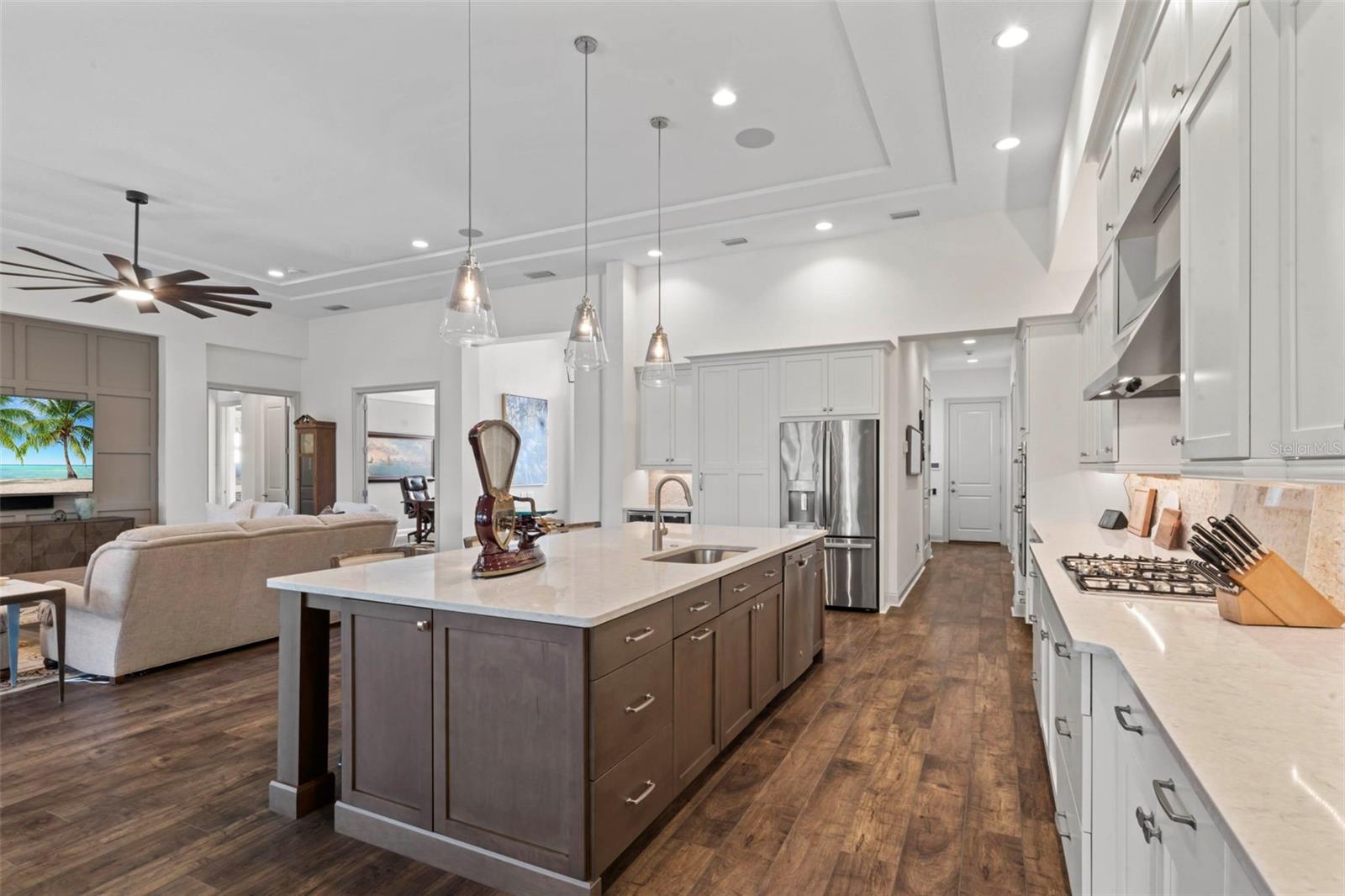 This Arthur Rutenberg custom built home in the gated community of Markland delivers elegance, innovation, & luxury on a grand scale. This home was designed for those who appreciate craftsmanship, detail, & seamless indoor outdoor living. From the moment you arrive, the pavered driveway & expertly manicured landscaping framed by elegant palm trees set the tone for the quality & beauty found throughout this home. Designed with entertaining in mind, the open concept floor plan is enhanced by soaring 12-foot ceilings, & collapsible 10-ft sliding glass doors that seamlessly connect indoor comfort with outdoor splendor. Natural light & panoramic views fill the main living areas, creating an elevated yet welcoming atmosphere. Step outside into your private resort style oasis featuring a built in summer kitchen with professional grade grill, marble countertops, a stunning 9.5-ft stacked stone dining table with integrated lighting & electrical, & a cozy gas fireplace sitting area. The extended screened lanai completes the space, offering the perfect backdrop for hosting guests or enjoying quiet evenings at home. The home has been enlarged to allow for generously sized rooms, including a chef's kitchen with expanded cabinetry, extended countertops, an oversized island & a multi zone wine cooler that is adjacent to the dining area. Throughout the home, storage is abundant including an enormous hidden walk-in pantry that includes a second refrigerator and coffee bar. The spa-like primary suite is a true retreat featuring his & her custom built-in closets, a luxurious bathroom with dual vanities & an oversized glass walk-in shower. Movie nights will never be the same in the state-of-the-art home theater, featuring a Dolby Atmos system, 125" screen, 4K projector, capable of 11 integrated speakers, & a dry bar. Your very own in-home cinema experience! Looking for somewhere quiet to work, the large office is perfect for working from home, complete with motorized blinds for added convenience and privacy. Guests will enjoy comfort & quiet with one Guest bedroom offering an en-suite bath, while another guest bedroom & full bath are located with easy access to the outdoor living areas. Livability and sophistication is offered through the home with custom drapes & wallpaper throughout, built-in closet systems in all closets, engineered hardwood floors, Motorized blinds (office, theater, master bedroom), a Whole-house Pentair filtration system & water softener system, Dual-zone Trane HVAC with MERV 11 allergy-free HEPA filtration, high speed Cat 6 wiring throughout, Eero 3-zone mesh WiFi system, Centralized electronics racking system, Monitored Security & Fire, 30 day recordable camera security, tankless gas water heater with recirculating pump, Smart LG Washer & Dryer, overhead rack systems in the garage & pull down attic stairs with flooring. Centralized Smart Home system that manages dimmable lighting, 6-zone Sonos music speaker system, door locks, garage doors, motorized blinds, cameras, video doorbell through in-wall Brilliant controllers, Alexa voice or remotely through your mobile device. This home combines elegance, innovation & functionality, all in one of St. Johns County's most sought-after gated communities. Don't miss this lifetime opportunity to own a truly exceptional home. Education is at its best with top-rated schools & wonderful amenities that include a pool, gym, pickle ball courts, playground, kayak launch, firepit & dog park.