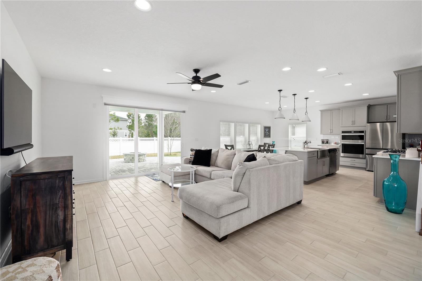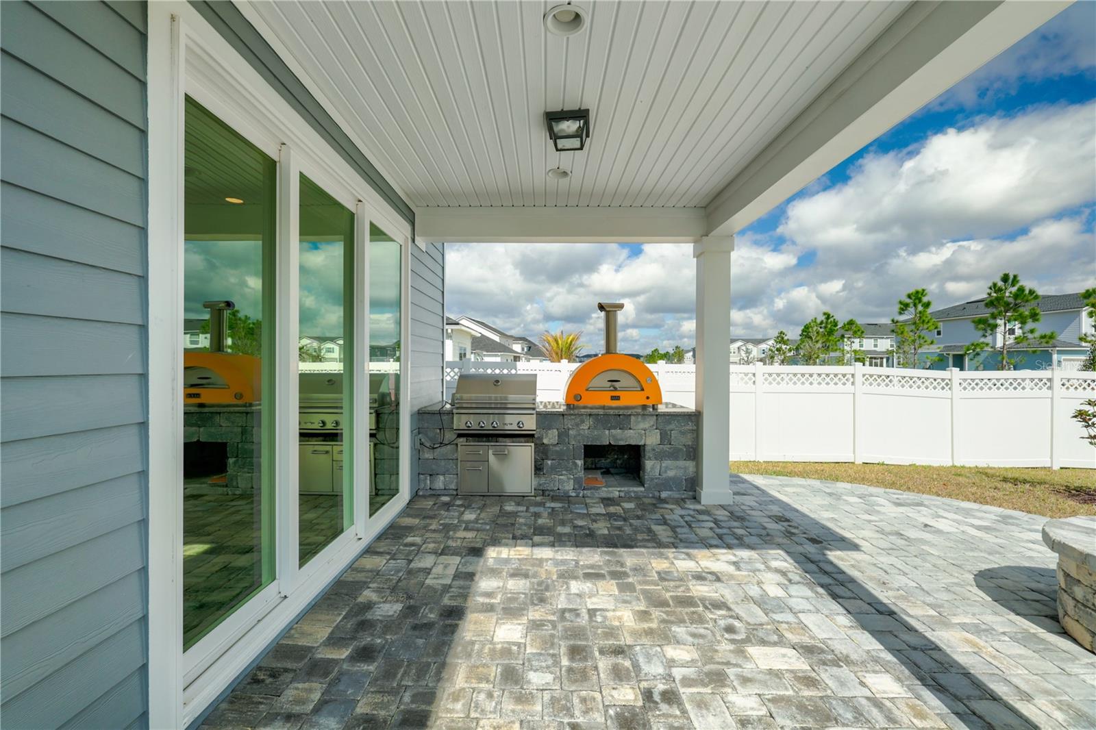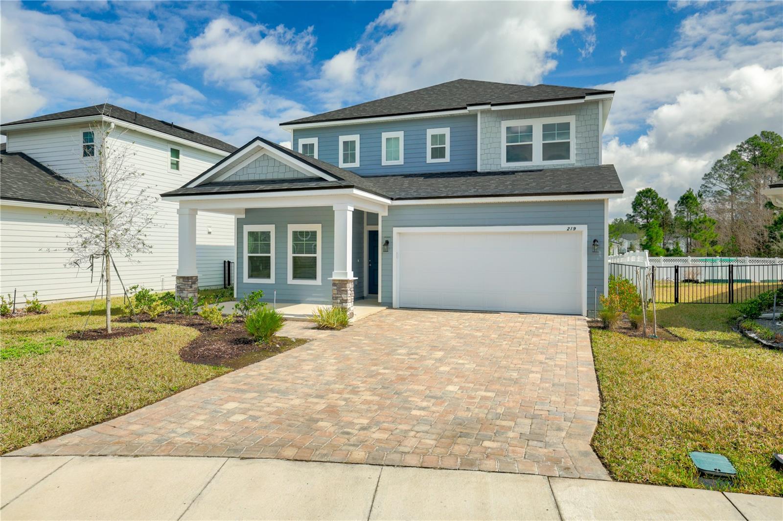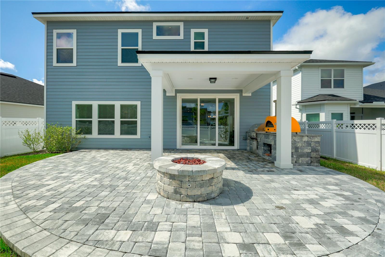 Welcome to 219 Goldcrest Way, a stunning 2023-built home in Silver Landing at Silverleaf. This 4-bedroom, 3-bathroom home blends modern convenience with stylish comfort. The open-concept design flows seamlessly from the chef's kitchen to the dining area and great room—perfect for entertaining. Enjoy top-tier upgrades including a gas stove, tankless water heater, electric patio shades, and an auto shade in the family room for added comfort. A washer & dryer, TV, and premium audio equipment are all included! Step outside to your fully fenced backyard oasis, ideal for year-round gatherings. It features a custom fire pit, an outdoor kitchen with a gas grill, and a pizza oven from Italy—a true chef's dream! Located in the amenity-rich Silverleaf community, you'll enjoy resort-style pools, walking trails, playgrounds, and top-rated schools—all with NO CDD fees!