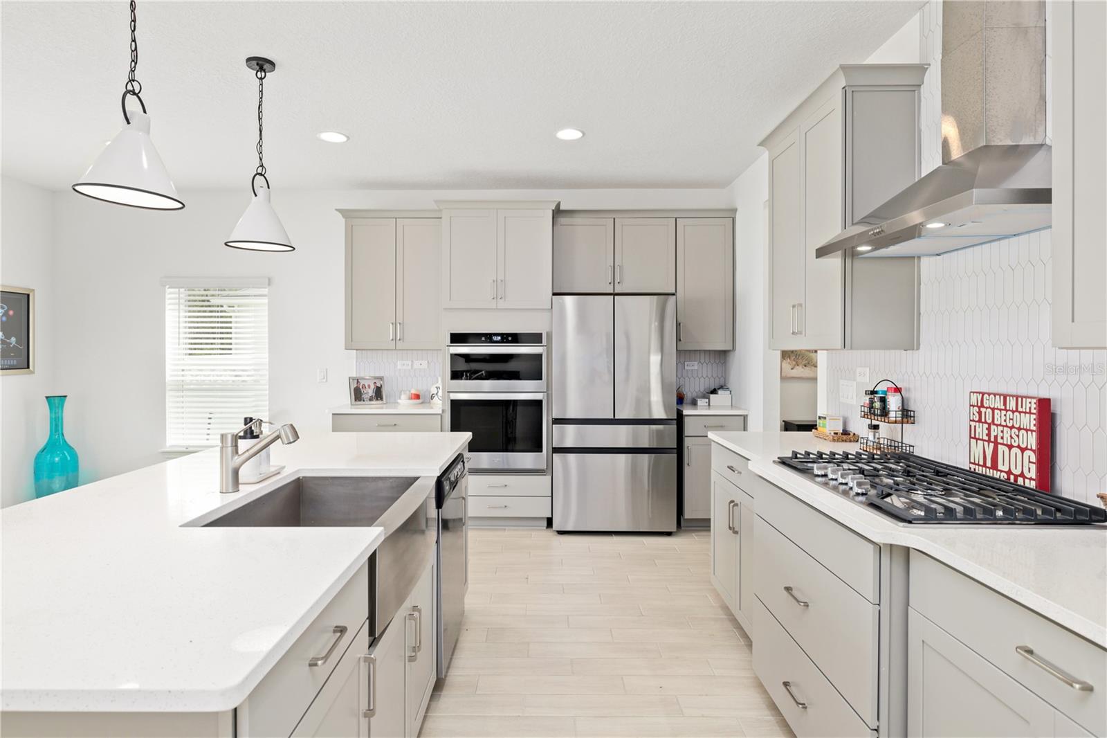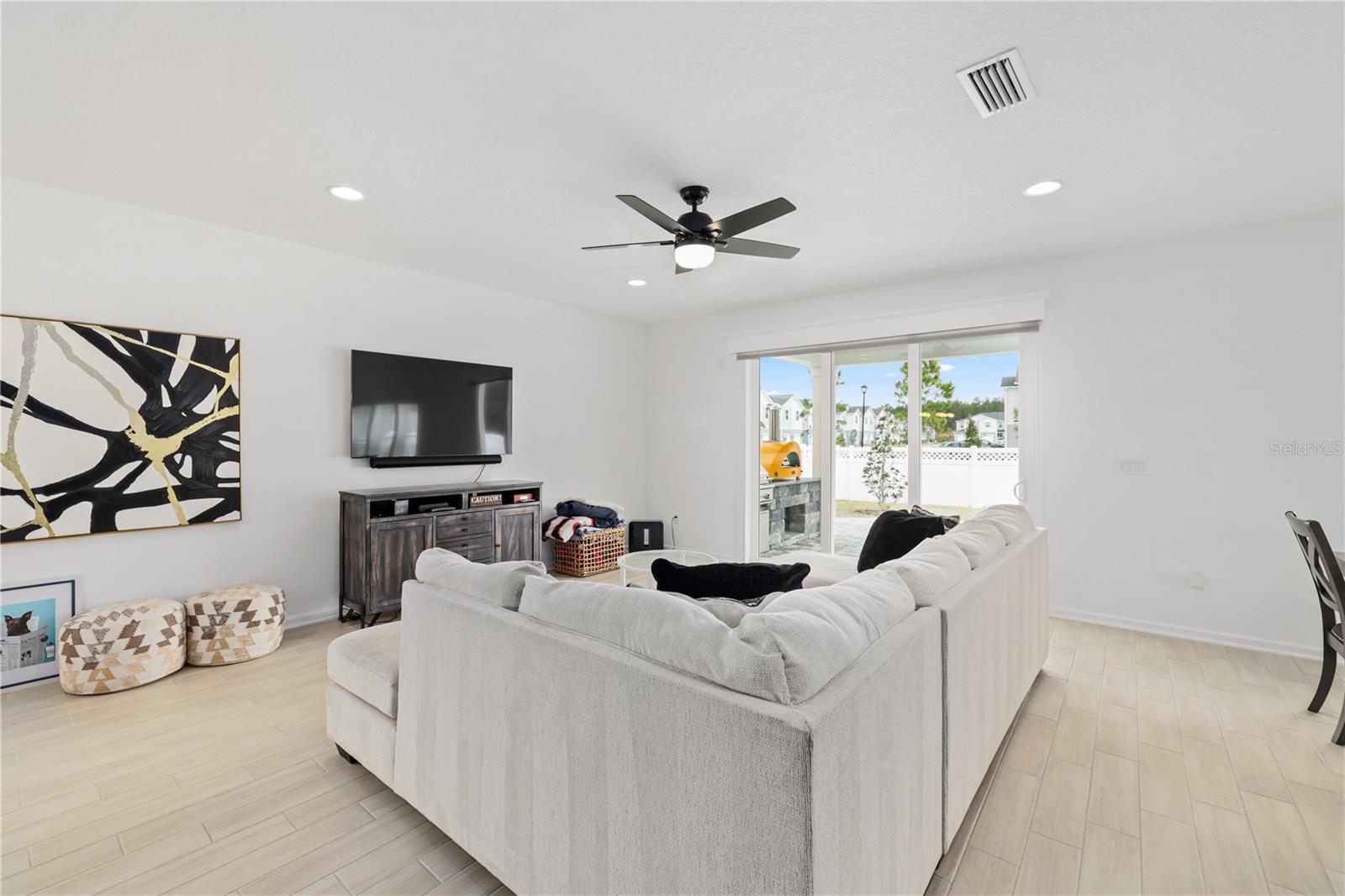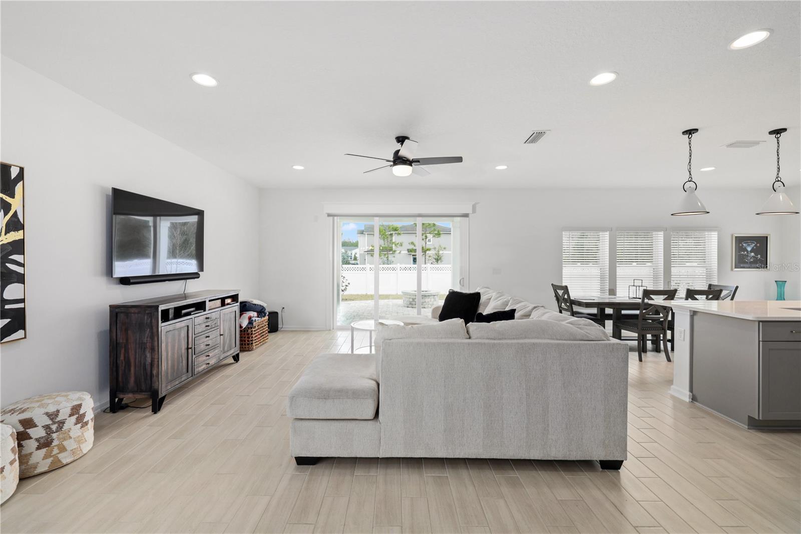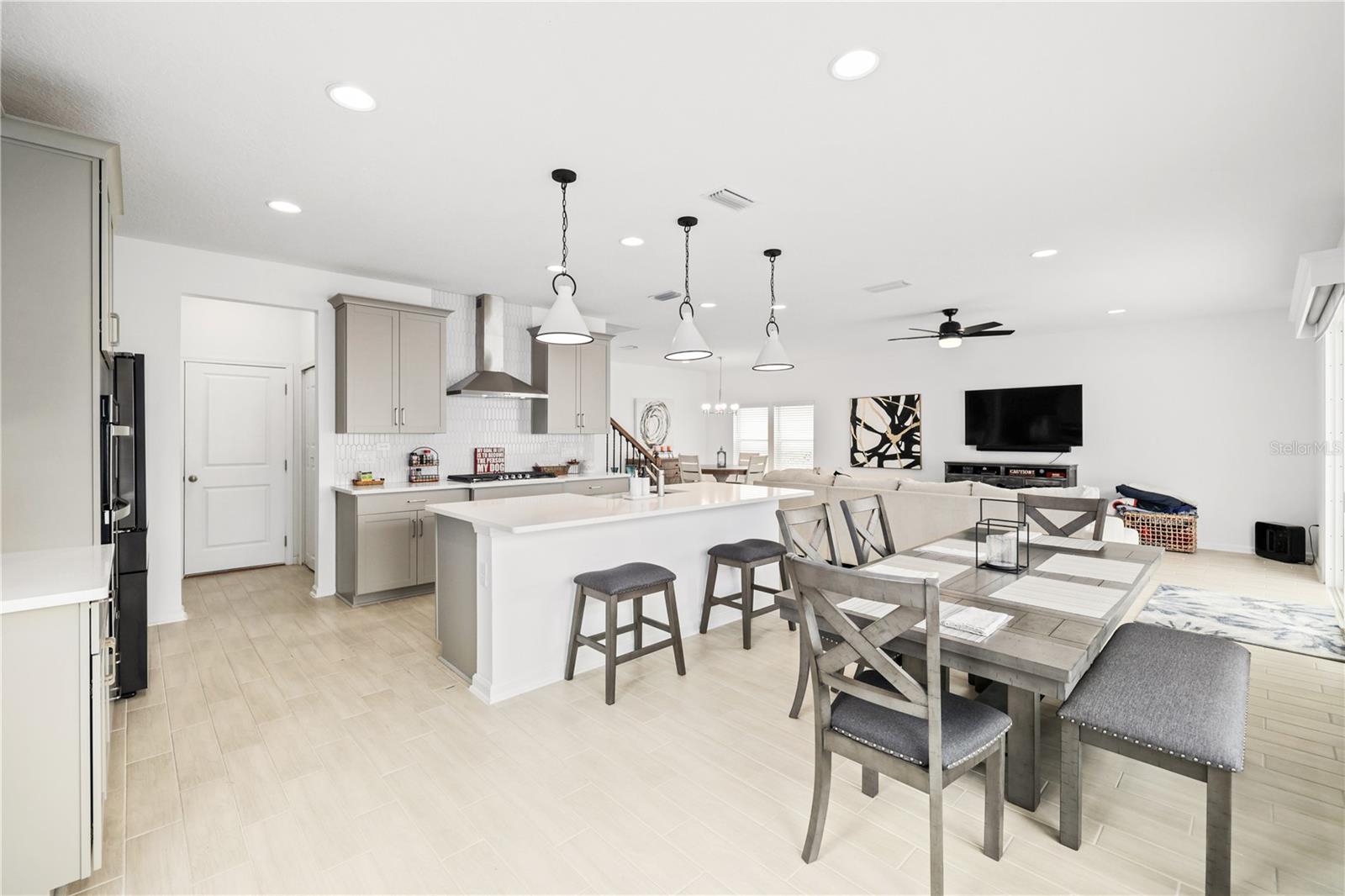 Welcome to 219 Goldcrest Way, a stunning 2023-built home in Silver Landing at Silverleaf. This 4-bedroom, 3-bathroom home blends modern convenience with stylish comfort. The open-concept design flows seamlessly from the chef's kitchen to the dining area and great room—perfect for entertaining. Enjoy top-tier upgrades including a gas stove, tankless water heater, electric patio shades, and an auto shade in the family room for added comfort. A washer & dryer, TV, and premium audio equipment are all included! Step outside to your fully fenced backyard oasis, ideal for year-round gatherings. It features a custom fire pit, an outdoor kitchen with a gas grill, and a pizza oven from Italy—a true chef's dream! Located in the amenity-rich Silverleaf community, you'll enjoy resort-style pools, walking trails, playgrounds, and top-rated schools—all with NO CDD fees!