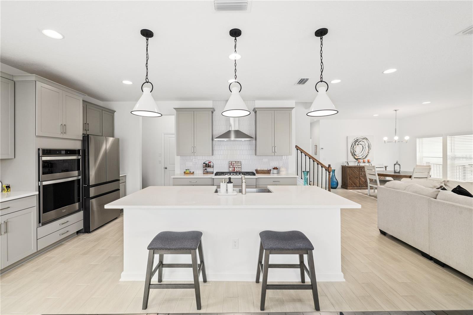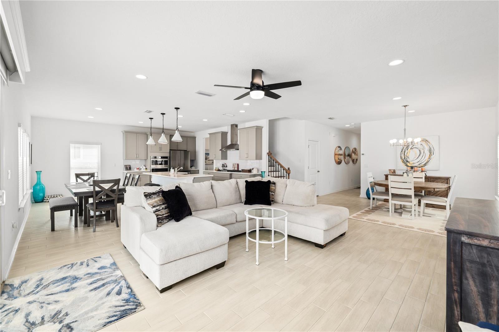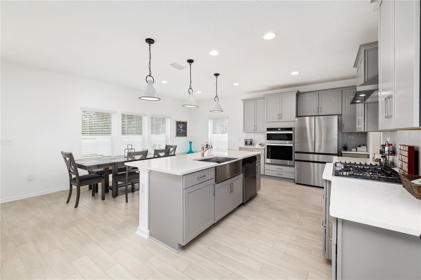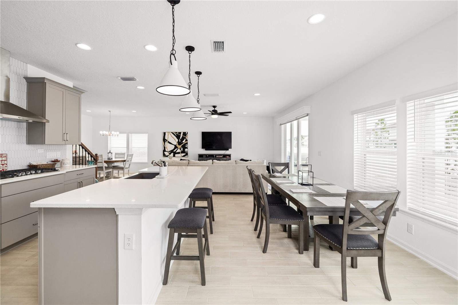 Welcome to 219 Goldcrest Way, a stunning 2023-built home in Silver Landing at Silverleaf. This 4-bedroom, 3-bathroom home blends modern convenience with stylish comfort. The open-concept design flows seamlessly from the chef's kitchen to the dining area and great room—perfect for entertaining. Enjoy top-tier upgrades including a gas stove, tankless water heater, electric patio shades, and an auto shade in the family room for added comfort. A washer & dryer, TV, and premium audio equipment are all included! Step outside to your fully fenced backyard oasis, ideal for year-round gatherings. It features a custom fire pit, an outdoor kitchen with a gas grill, and a pizza oven from Italy—a true chef's dream! Located in the amenity-rich Silverleaf community, you'll enjoy resort-style pools, walking trails, playgrounds, and top-rated schools—all with NO CDD fees!