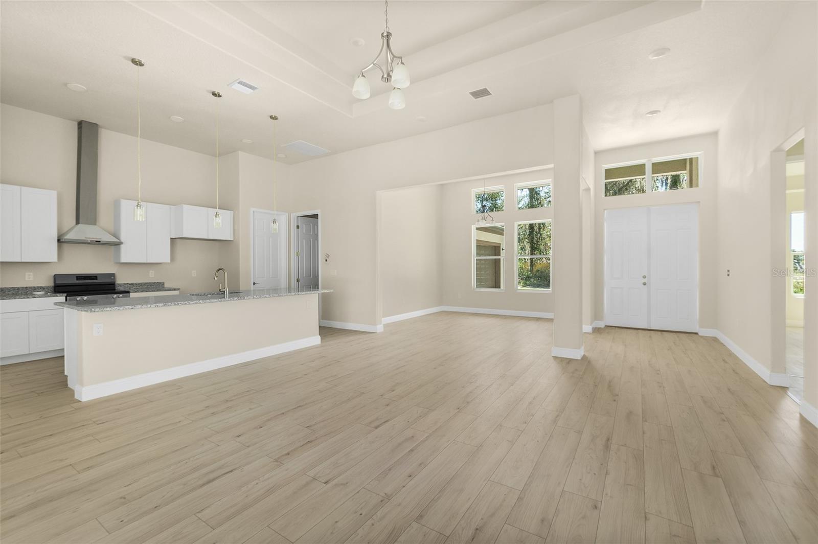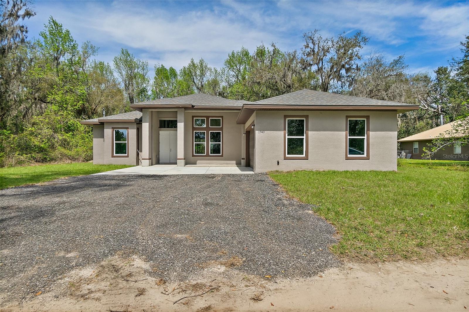 Across St. Johns River. It has Exterior vented hood, all 8 ' doors, double doors in front. The baths have floor to ceiling tile. Sprayed foam insulated. peaceful cul-de-sac . This 3-bedroom, 2-bathroom home boasts an open/split floor plan, accentuated by soaring 14' ceilings in the living room and 10' ceilings in the bedrooms. Big Laundry Room. Exceptional garage: 8' door 2.5 car garage . NO HOA. Almost 1 acre ! 18 minutes to down town St Augustine , NOT A FLOOD zone