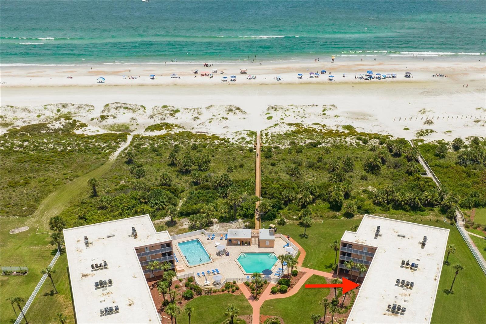Renovated Beachside Retreat – 2 Bed, 2 Bath Condo on the beach! Step into this stunningly updated ground-floor condo, just steps from two sparkling pools and a short stroll to the pristine sands of St. Augustine Beach. This 2-bedroom, 2-bathroom gem is move-in ready, featuring NEW luxury vinyl plank flooring, a completely remodeled kitchen with quartz countertops and NEW stainless steel appliances, plus fully updated bathrooms with sleek NEW vanities. Enjoy peace of mind with a brand NEW A/C from 2024. Whether you're looking for a beachside retreat, an investment property, or both, this condo offers the best of coastal living. The pet-friendly St. Augustine Beach & Tennis Club allows vacation rentals with a five-night minimum and features a private, gated boardwalk that winds over protected dunes and turtle habitats, leading directly to the wide, white sand beaches. This is your chance to own in a well-maintained oceanfront community while generating rental income when you're not enjoying the beach life yourself. Can be sold fully furnished—just bring your suitcase!