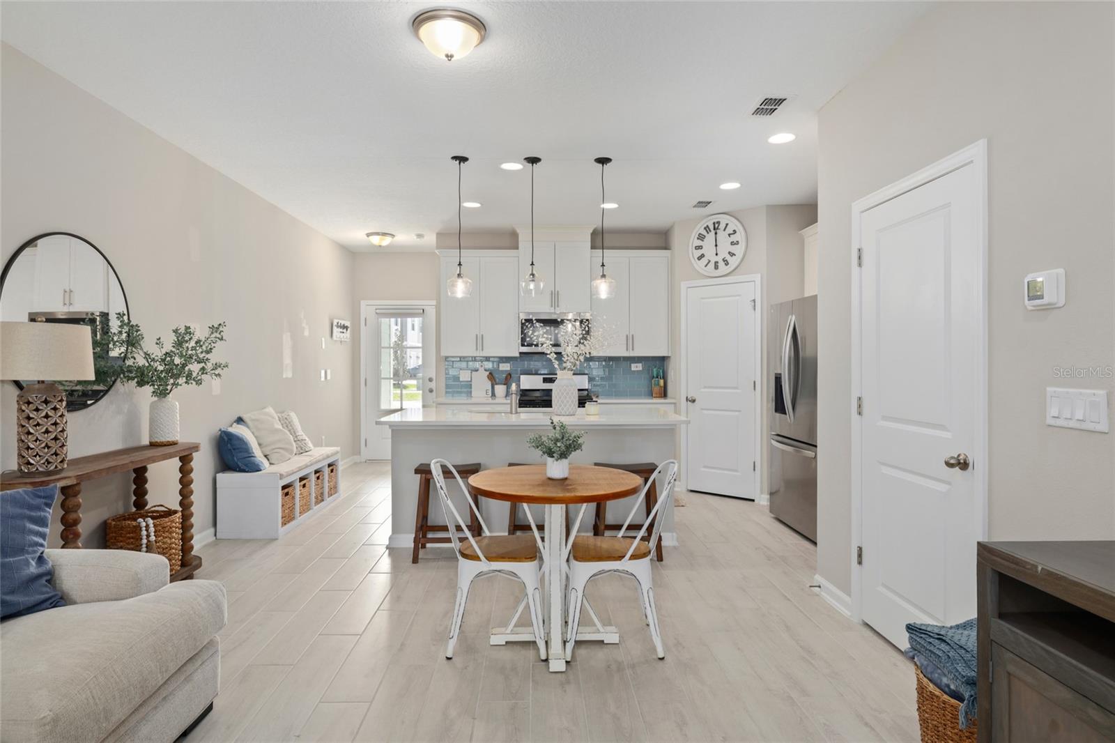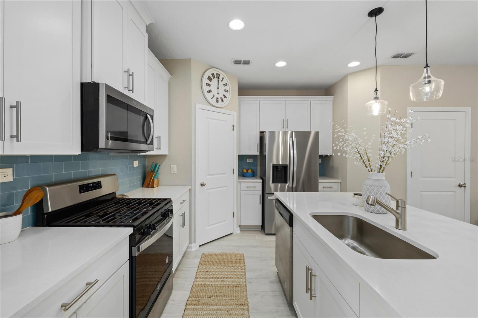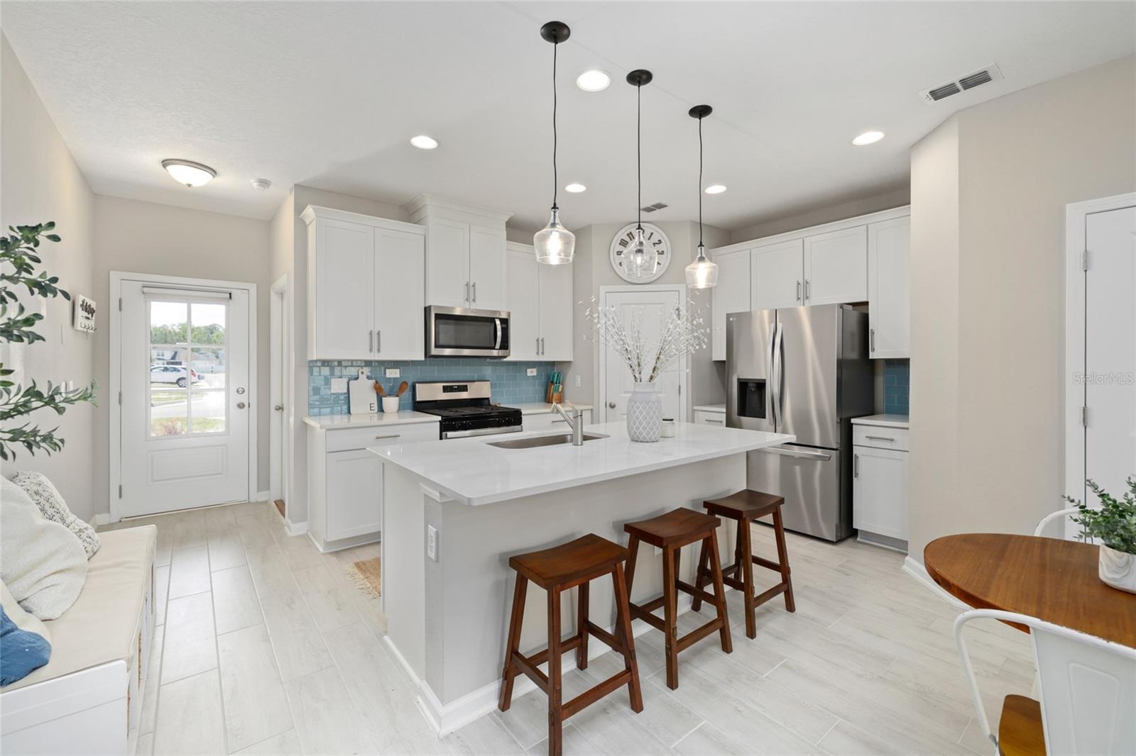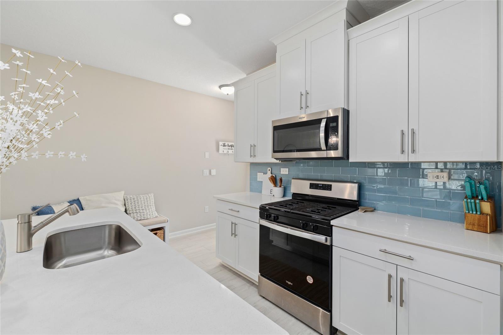 **Live Your Best Florida Life** in this stylishly upgraded, nearly-new 3-bed, 2.5-bath townhome tucked away on a peaceful street in the sought-after Silverleaf community. From the moment you step inside, you'll be hit with serious ''wow'' factor—hello, quartz countertops, 42'' cabinets, stainless steel appliances (yes, there's a gas range!), upgraded backsplash, modern lighting, and a pantry that's ready to store your snack stash. The open-concept kitchen flows effortlessly into the dining area and family room—perfect for Netflix marathons, game nights, or just pretending you're hosting a cooking show. Downstairs also features a chic updated half-bath (guests will be impressed), and wood-look tile flooring throughout for that ''I-have-my-life-together'' vibe. Slide out to the screened lanai and take in the private, peaceful view while sipping your morning coffee or evening wine. Upstairs? You've got two generously sized bedrooms, a large full bath with double sinks (because sharing is overrated), and a hallway laundry closet that keeps the chaos out of sight. Bonus points: one-car garage with a water softener and sleek epoxy flooring. Low HOA fees, no CDDs, and all the perks of Silverleaf resort-style pools, spray park, playgrounds, dog park, tennis and pickleball courts (your inner athlete is already cheering). Why wait? Your new Florida dream townhome is calling, pick up!