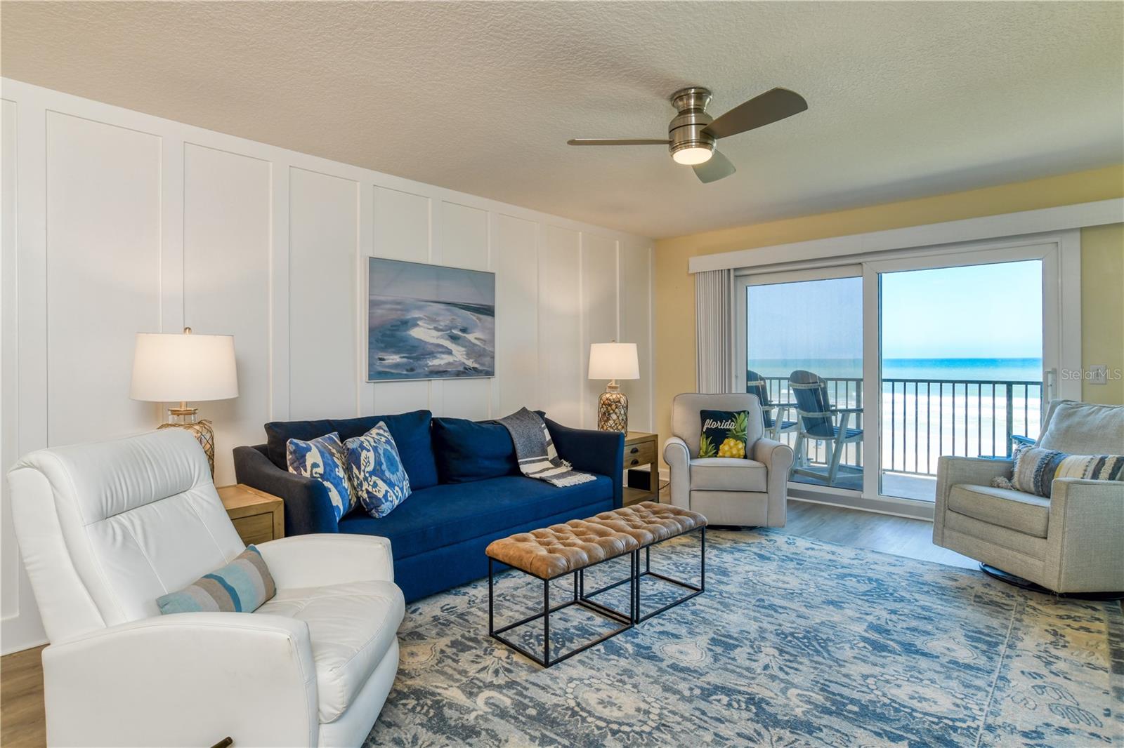 Discover coastal living at its finest in this fully renovated, direct oceanfront two-story condo located in the prestigious Summerhouse Beach & Racquet Club. This exquisite 2-bedroom, 2.5-bathroom residence offers breathtaking ocean views and modern comforts. Upon entering, you'll be captivated by the seamless flow of new flooring throughout the open-concept living space. The gourmet kitchen boasts gleaming granite countertops, pristine white cabinetry, and top-of-the-line stainless steel appliances, making it a chef's delight. The adjoining living room, bathed in natural light, provides uninterrupted ocean vistas and opens to a private balcony—perfect for savoring sunrises over the Atlantic. Upstairs, the primary suite serves as a tranquil retreat with expansive ocean views and an updated en-suite bathroom featuring a spacious walk-in shower. A second well-appointed bedroom and additional full bathroom ensure ample space for family or guests. Summerhouse is a gated community offering resort-style amenities, including four heated pools, four private beach walkovers, a state-of-the-art fitness center, playgrounds, RV/boat storage, pickleball courts, and tennis courts. Residents also benefit from the on-site rental program, providing an excellent opportunity for investment income. Embrace the beachfront lifestyle you've always dreamed of in this exceptional condo, where luxury meets the laid-back charm of coastal living.