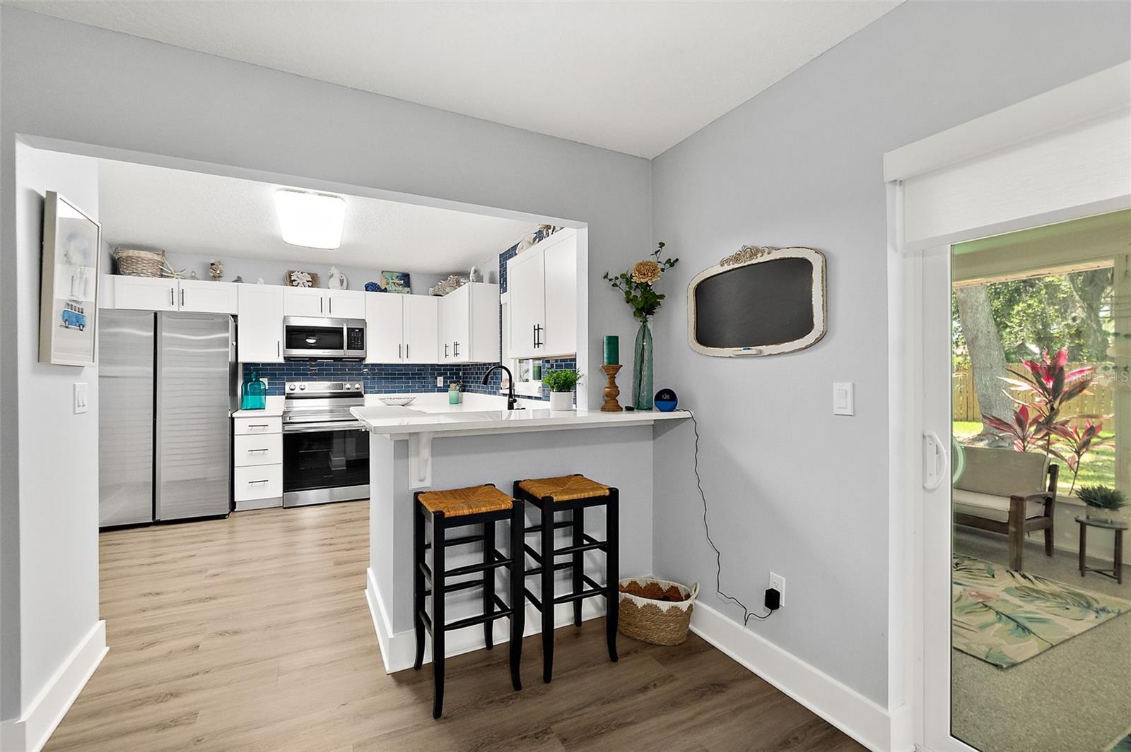 Here's your chance to own a beautifully renovated concrete block home and enjoy the pleasing intracoastal breeze and views! This home was modernized in 2022 with a metal roof, new windows, flooring, molding, new bathrooms & fixtures, stylish kitchen with quartz countertops, soft close cabinetry, and stainless-steel appliances. Subsequently, the current owner added numerous upgrades including tile backsplash in kitchen, glass shower door, epoxy flooring on lanai and front entrance, window treatments, fresh paint, landscaping stone & border edging, lanai enclosure, new fence boards & sealed pavers, etc... Great curb appeal and private backyard with fire pit & extensive landscaping. New water heater in 2025. All appliances convey including washer & dryer. Excellent location that is close to dining, shopping, medical, and all that St. Augustine has to offer. Just minutes to I-95 and Crescent Beach. Call today to schedule your appointment and start ''Living the Dream in St. Augustine''! St. Augustine Shores features The Shores Golf Course, walking & biking trails, tennis &pickleball courts, pier access to the Intracoastal, and lots of activities at the Riverview Club.