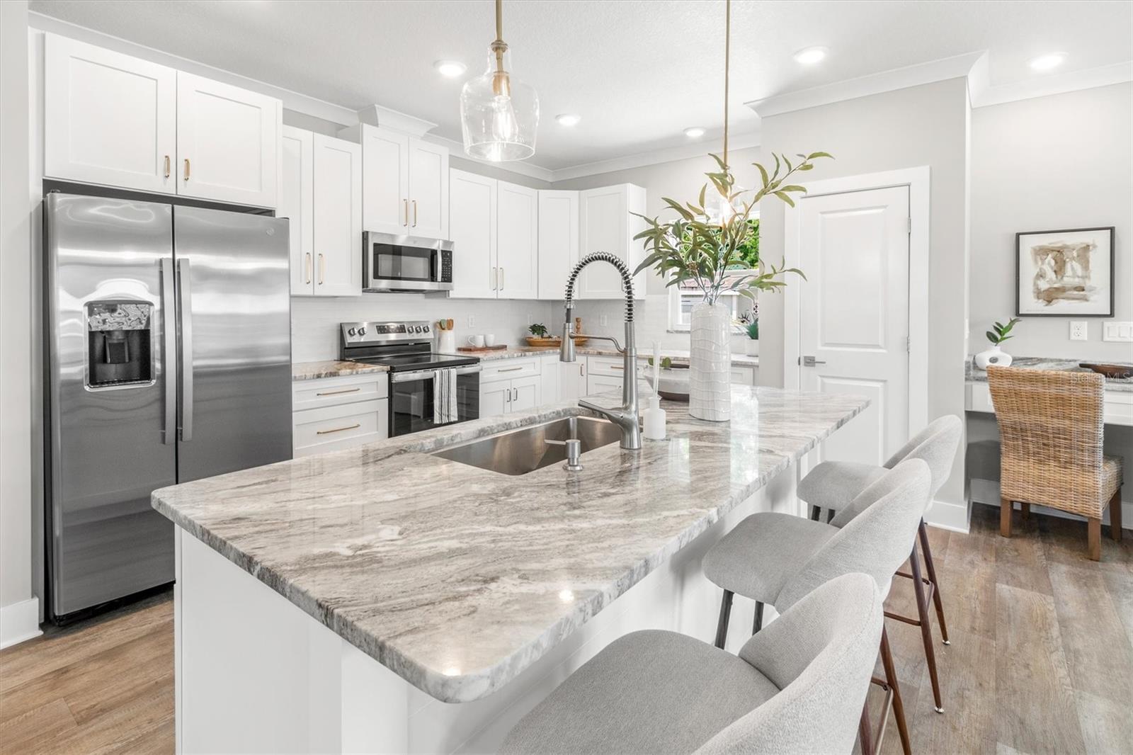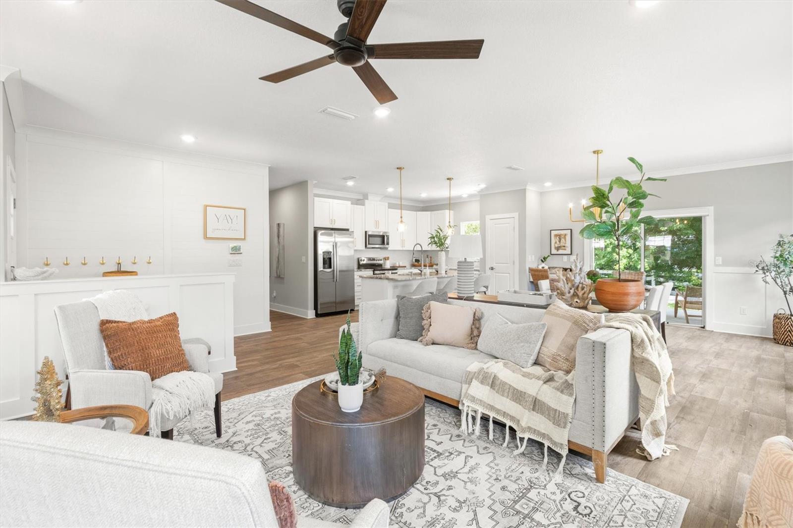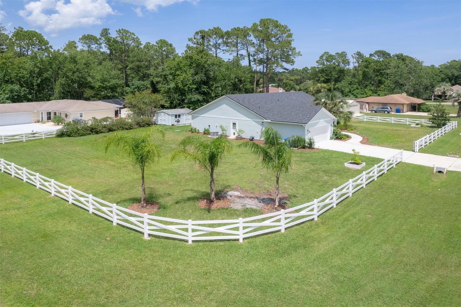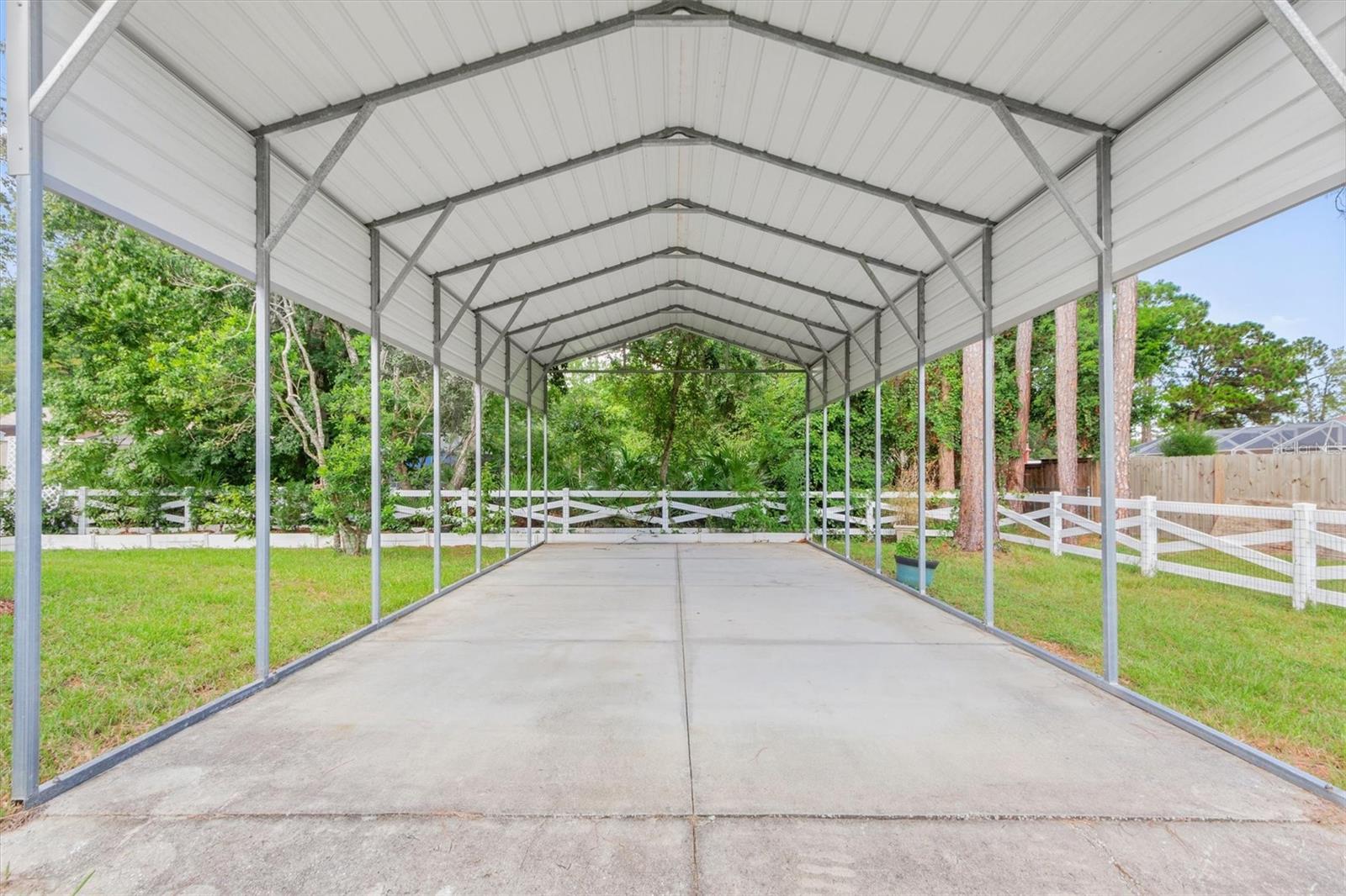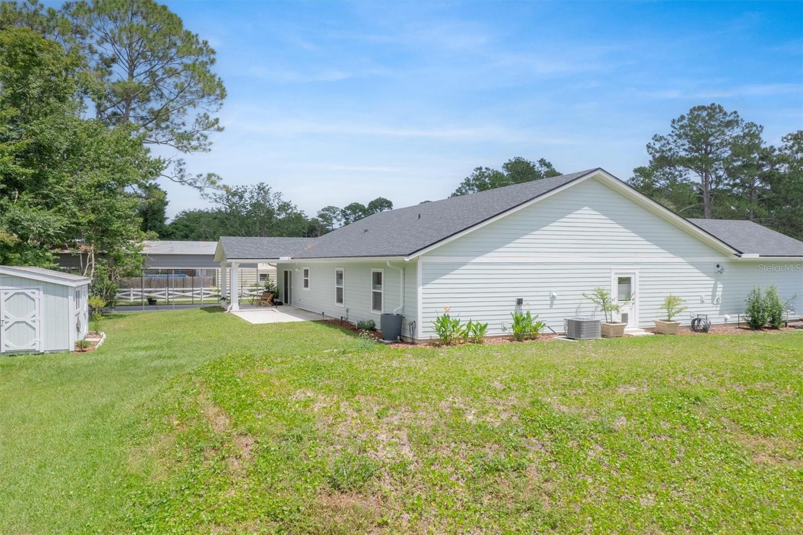 Welcome to this beautifully crafted 2024 home on a spacious half-acre, corner lot in St. Augustine. This 4-bedroom, 3-bath property offers nearly 1,800 square feet of open living with luxury vinyl plank flooring, upgraded tile, and elegant top-down bottom-up window shades. The gourmet kitchen features granite counters, upgraded cabinetry, a large island, and upscale fixtures. The flexible 4th bedroom doubles as a private office with a garage entrance and half-glass door with pet door. Enjoy a separate laundry room with sink, spacious front and back covered porches, remote patio blinds, an outdoor shower, and a fully fenced yard with kid/pet safety mesh and two gates. The oversized 2-car garage includes plumbing for a future bath or pet wash and a half-glass door. Also included: covered RV/boat port with pad, extra-large powered shed, tankless water heater, gutters with rain barrels, and smart features. All just 5 minutes to Crescent Beach and I-95.