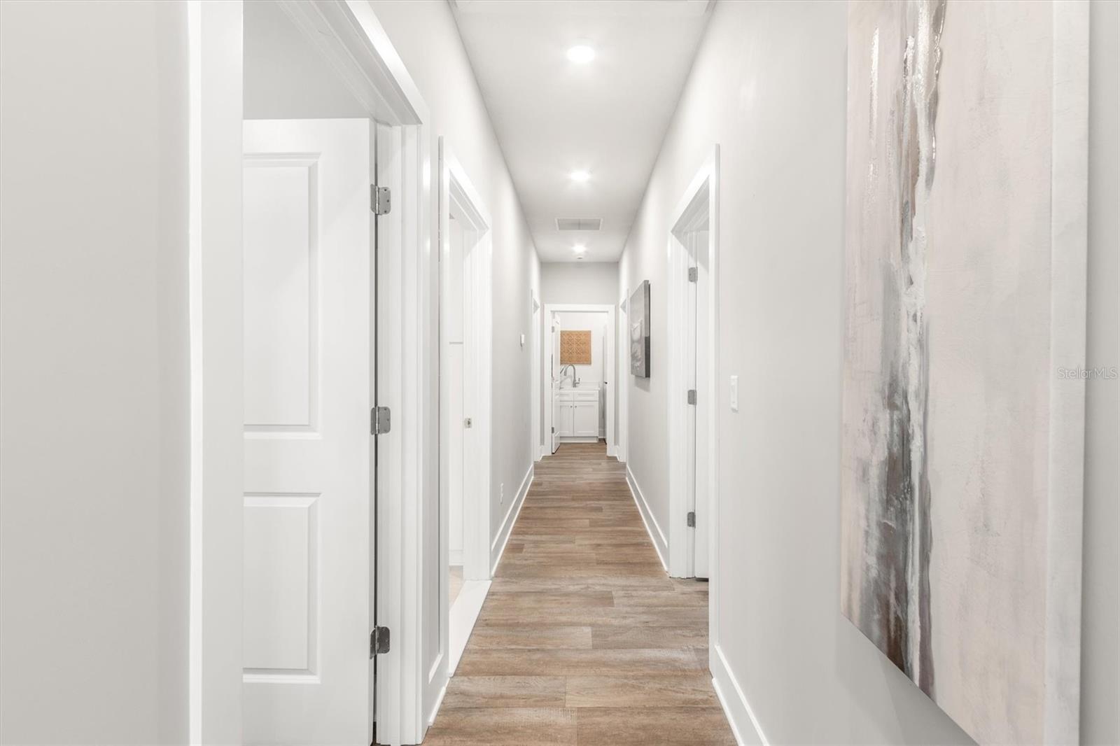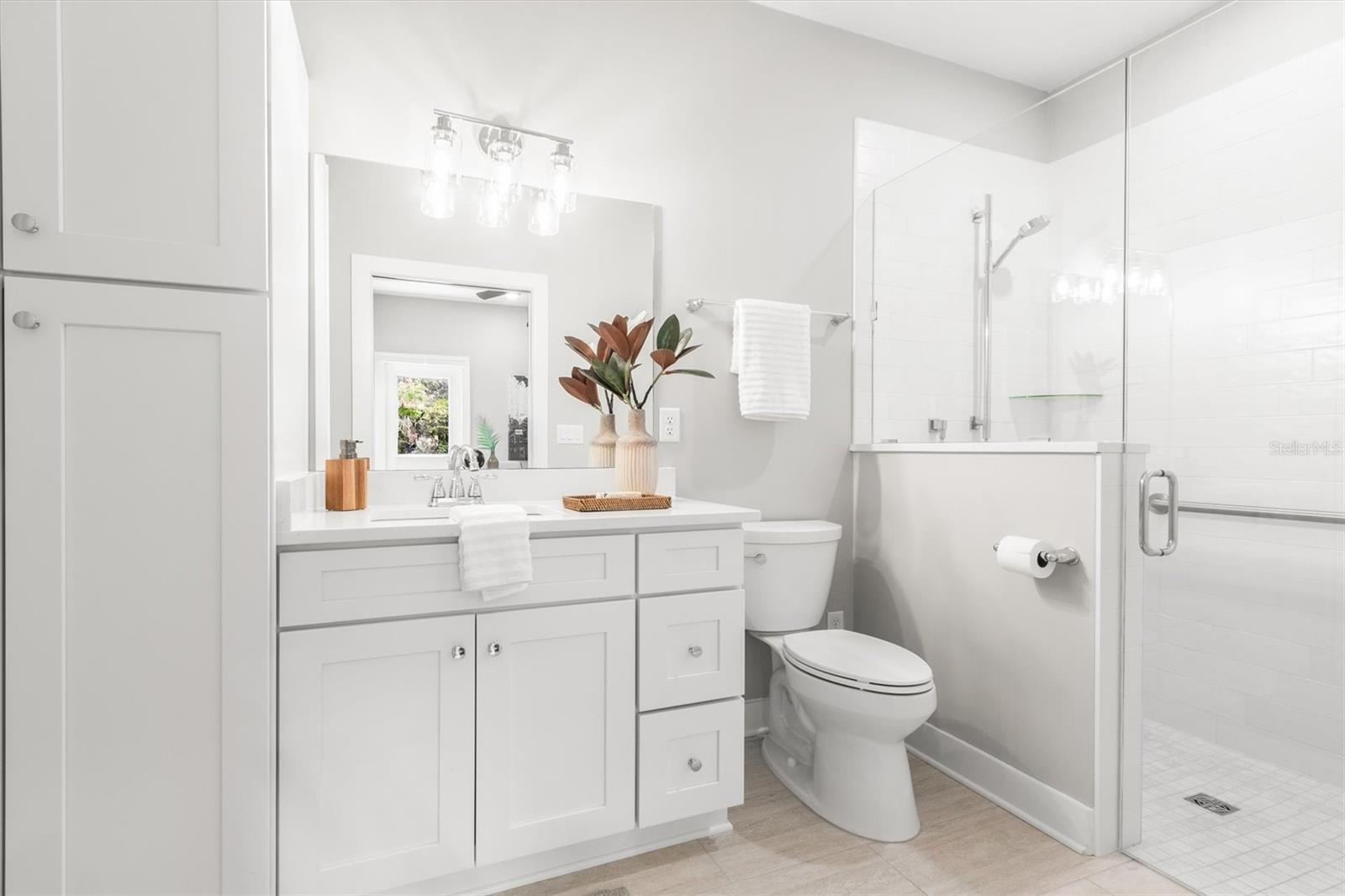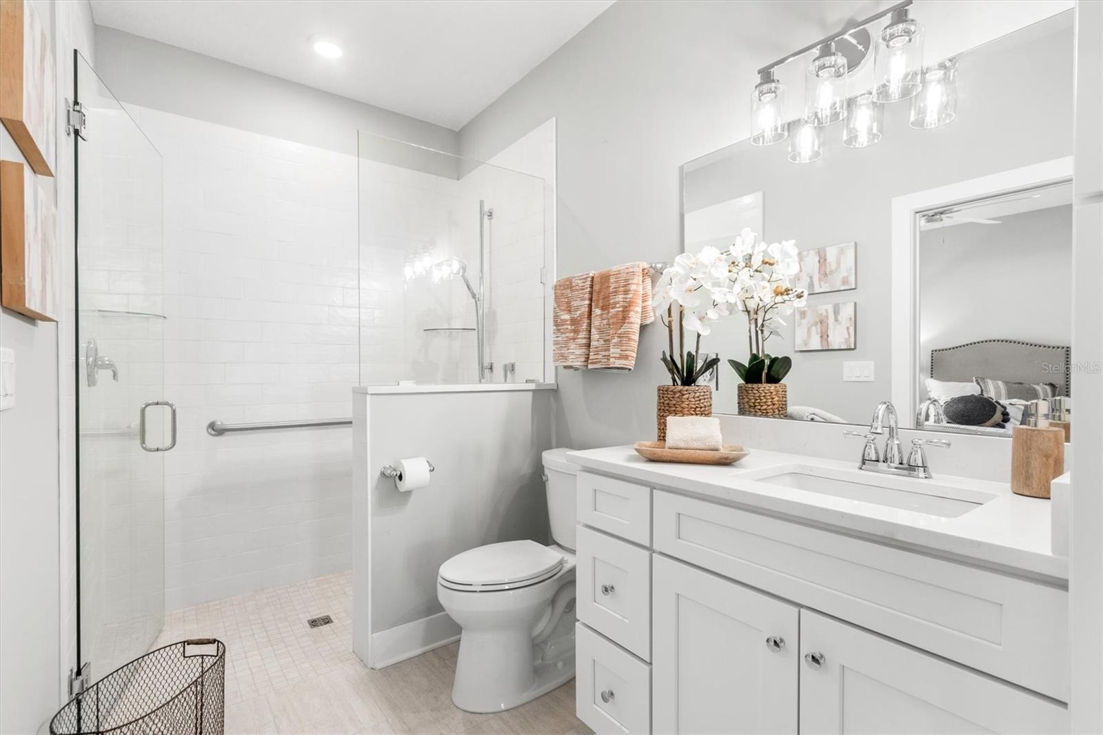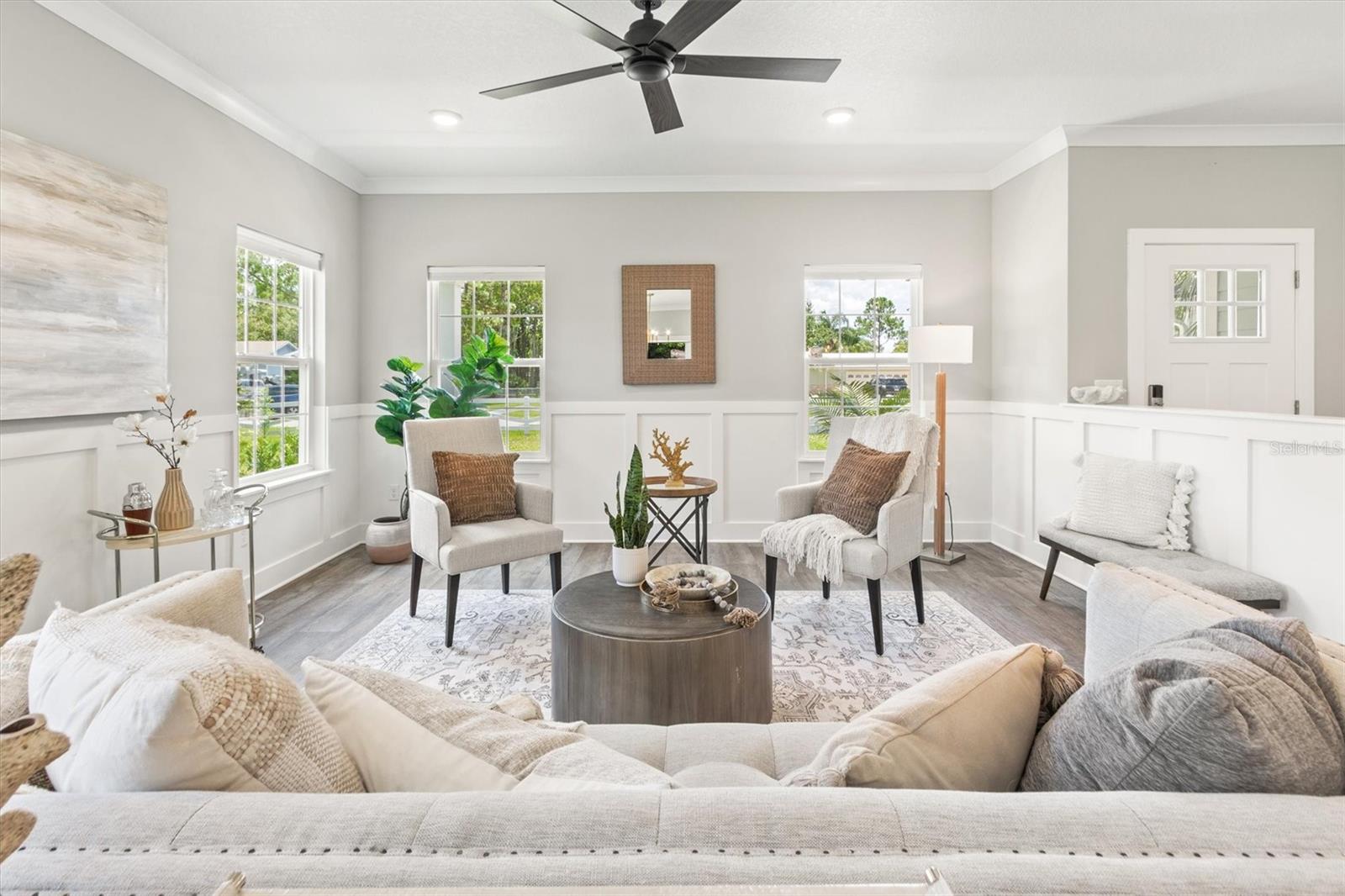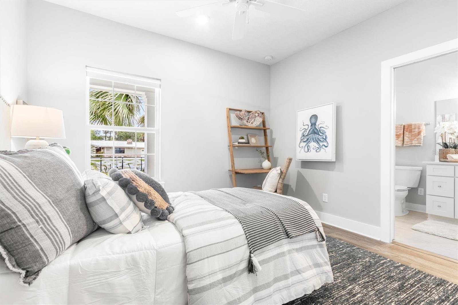Welcome to this beautifully crafted 2024 home on a spacious half-acre, corner lot in St. Augustine. This 4-bedroom, 3-bath property offers nearly 1,800 square feet of open living with luxury vinyl plank flooring, upgraded tile, and elegant top-down bottom-up window shades. The gourmet kitchen features granite counters, upgraded cabinetry, a large island, and upscale fixtures. The flexible 4th bedroom doubles as a private office with a garage entrance and half-glass door with pet door. Enjoy a separate laundry room with sink, spacious front and back covered porches, remote patio blinds, an outdoor shower, and a fully fenced yard with kid/pet safety mesh and two gates. The oversized 2-car garage includes plumbing for a future bath or pet wash and a half-glass door. Also included: covered RV/boat port with pad, extra-large powered shed, tankless water heater, gutters with rain barrels, and smart features. All just 5 minutes to Crescent Beach and I-95.