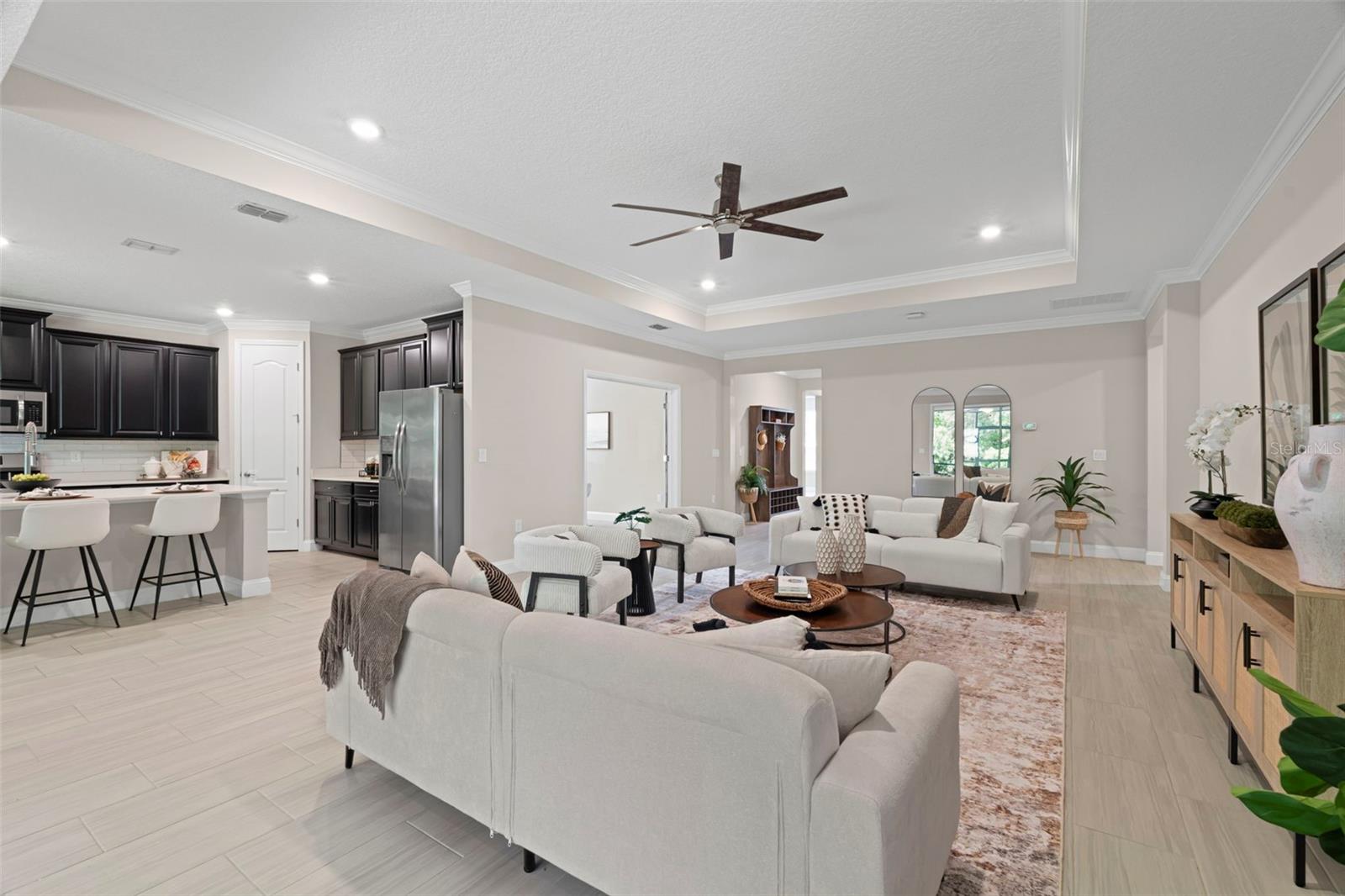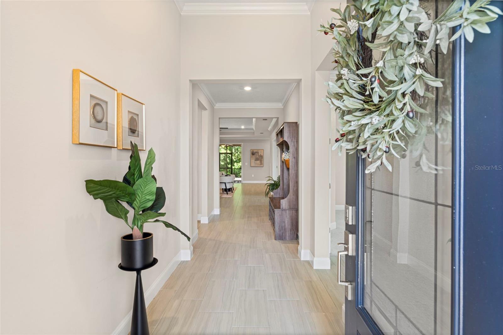 Elegant 4 bedroom, 3 bath home in a premier gated community. Designed with a spacious open split floor plan, this home offers a balance of comfort & sophistication. The gourmet kitchen features a large center island, quartz countertops, stainless appliances & a natural gas cooktop range. The large family room is perfect for entertaining family & friends. Behind the french doors, a flexible space can be used for an office, homeschool space or adapted to whatever your lifestyle requires. The master suite is a private retreat with a large walk-in closet, dual vanities, soaking tub & separate shower. 2 bedrooms up front share a full bath, while a 3rd bedroom is split from the others with its own bath & walk-in shower which is perfect for guests. Outdoor living is enhanced with a screened lanai & paver patio overlooking the backyard, along with a paver driveway. Ideally located in an A-rated school district, close to shopping, dining, historic downtown St Augustine & beaches.