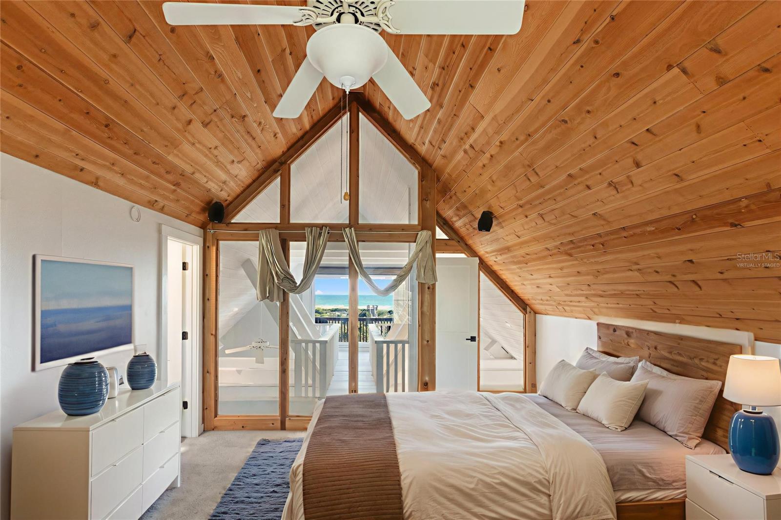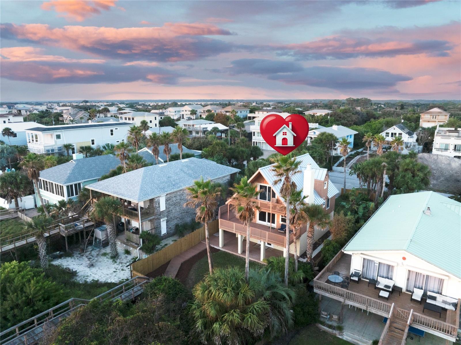 One or more photo(s) has been virtually staged. DIRECT OCEAN FRONT 3/3 +bonus room HOME makes you feel like you are always on VACATION! The moment you step inside you are transported back to summer at the beach house of your childhood but with lots of recent UPDATES! It has towering vaulted ceilings with lots of glass giving spectacular views of the BEACH beyond the dunes and EXPANSIVE DECKS where you can breathe in the OCEAN air! Watch the sunrise while you sip your morning coffee on the deck. The entire exterior was FRESH PAINTED in September, with elastomeric on the stucco & Sherwin Williams on the wood, it has newer PAINT inside, BRAND NEW FENCING, recently updated kitchen with NEW CABINETS, NEW QUARTZ counter tops, Built-in GE 9800 FRIDGE, NEW DOUBLE OVEN, island hood, NEW wood look TILE throughout, Anderson windows, 2 NEW windows facing the ocean, Craftsman doors, 30 year METAL ROOF replaced in 2023, and recently rebuilt PRIVATE BEACH walk over which is an option that many comparable homes in the neighborhood could not boast. ALL 3 BATHROOMS have recently been REMODELED and UPDATED. Entire 3rd floor is dedicated to Master Suite-with glass wall for ocean views or close the curtains for privacy, plus catwalk to private 3rd floor balcony. Tongue & groove cedar that has been painted white for an open feel to the vaulted A-frame space that feels massive. There is a bonus room downstairs that would make a great office, extra living space or has room for multiple bunk beds. Door at top of stairs allows you to close off the downstairs for guests, kids, etc... Backyard has room for a pool & two outdoor showers. Lot base elevation is approximately 13’ and ZONE X, meaning lenders will not require flood insurance. There are multiple layers of dunes between the beach and the house, making this one of the best areas to own OCEAN FRONT property in St. Johns County! This would make a spectacular primary home, second home or a VACATION RENTAL in high demand! It’s not currently used as a vacation rental property but was a few years ago, renting for roughly $8-12k per week at the time. All measurements, dimensions and important info to be verified by buyer. This listing contains some virtually staged photos.