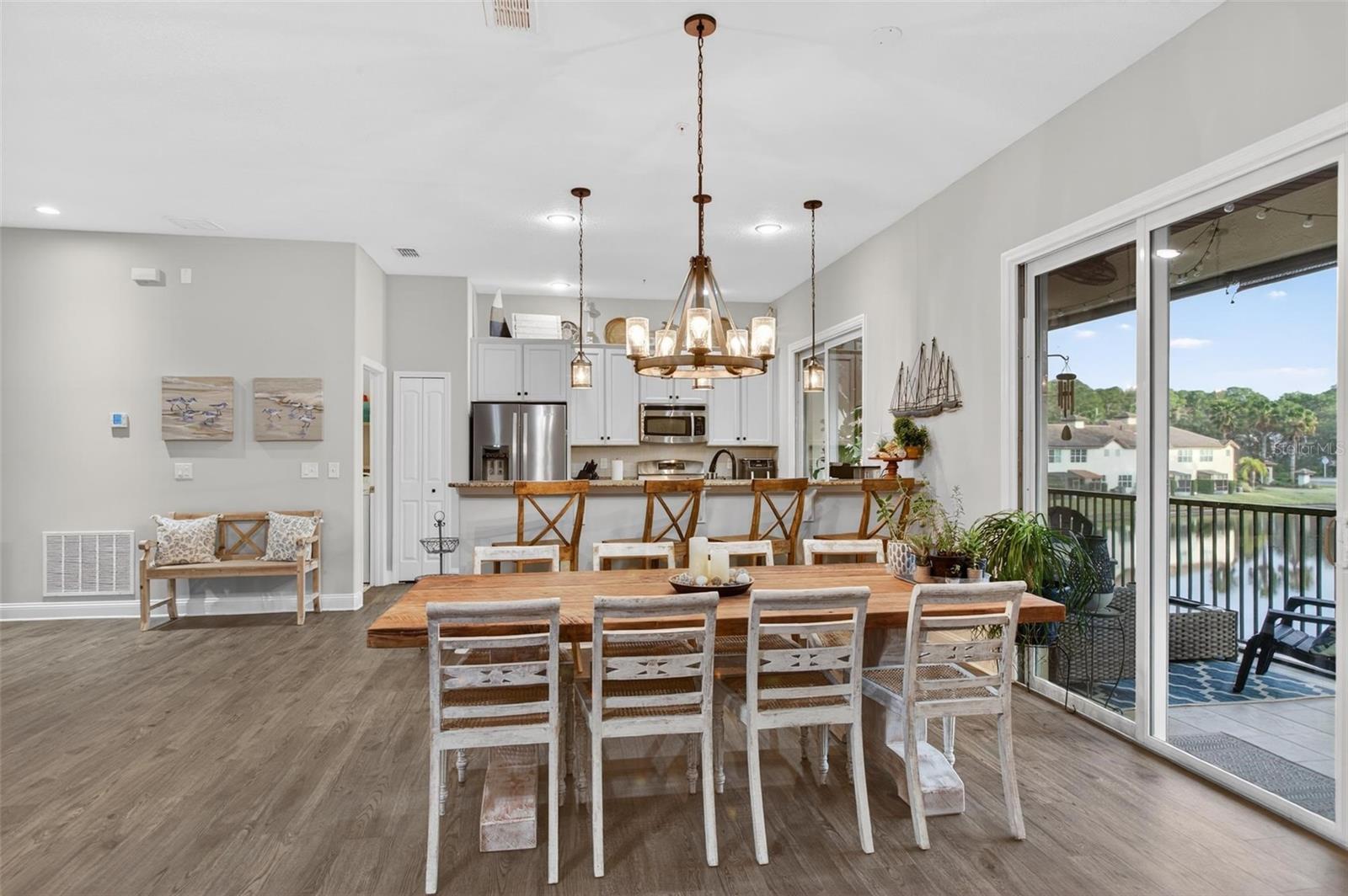 This is more than a home; it’s a lifestyle. Experience the best of St. Augustine living in this stunning Mediterranean-style Condo, perfectly nestled against a lush conservation preserve. This 3-bedroom, 2-bathroom residence offers the rare combination of peaceful seclusion and incredible proximity—located just minutes from the pristine beaches of Anastasia Island, premier shopping, and the vibrant, historic heart of Downtown St. Augustine. Boasting nearly 1,900 sq. ft. of thoughtfully designed living space, this home impresses from the moment you step into the grand 20-foot soaring entry. Highlights include: A chef’s dream featuring granite countertops, 42” cabinetry, upgraded lighting, and a stainless steel appliance package with a gas range. Enjoy the airy feel of 10-foot ceilings throughout, complemented by adult-height vanities and generous closet space in every bedroom. Move in with peace of mind thanks to a BRAND NEW AC system and a high-efficiency tankless gas water heater. Step through the kitchen or living room to your expansive screened lanai (24’ x 7’). This is where "home" feels like a vacation, offering breathtaking, unobstructed views of the lake and nature preserve. The exterior features classic S-style Spanish concrete roof tiles and a paver driveway. Best of all, the HOA maintains the landscaping and automatic sprinklers, leaving you more time to enjoy the beautiful community pool just a short stroll away. ***Schedule your showing today!***