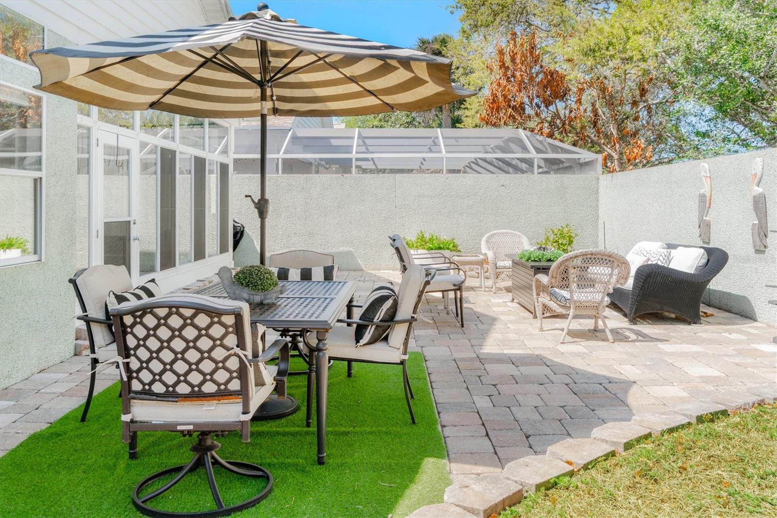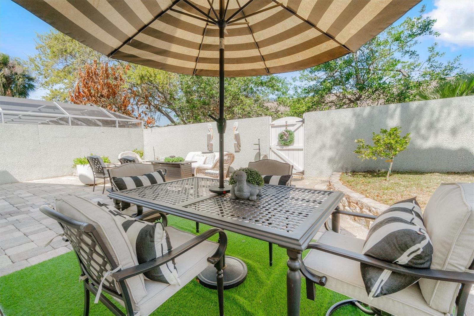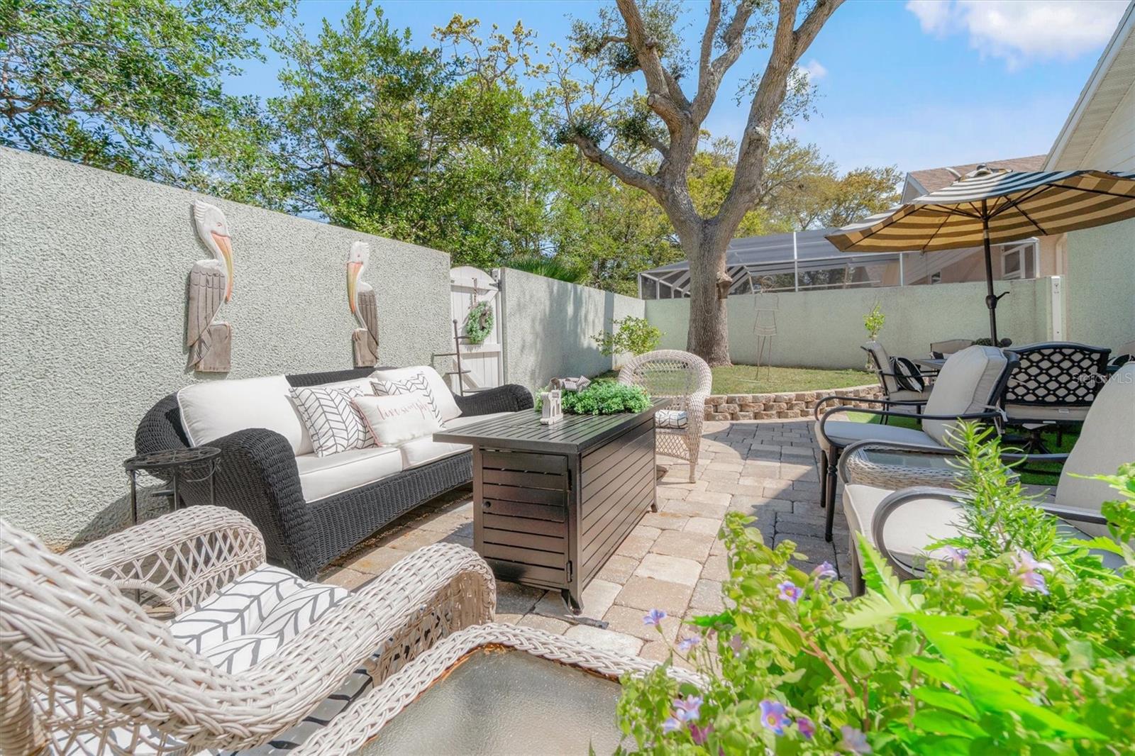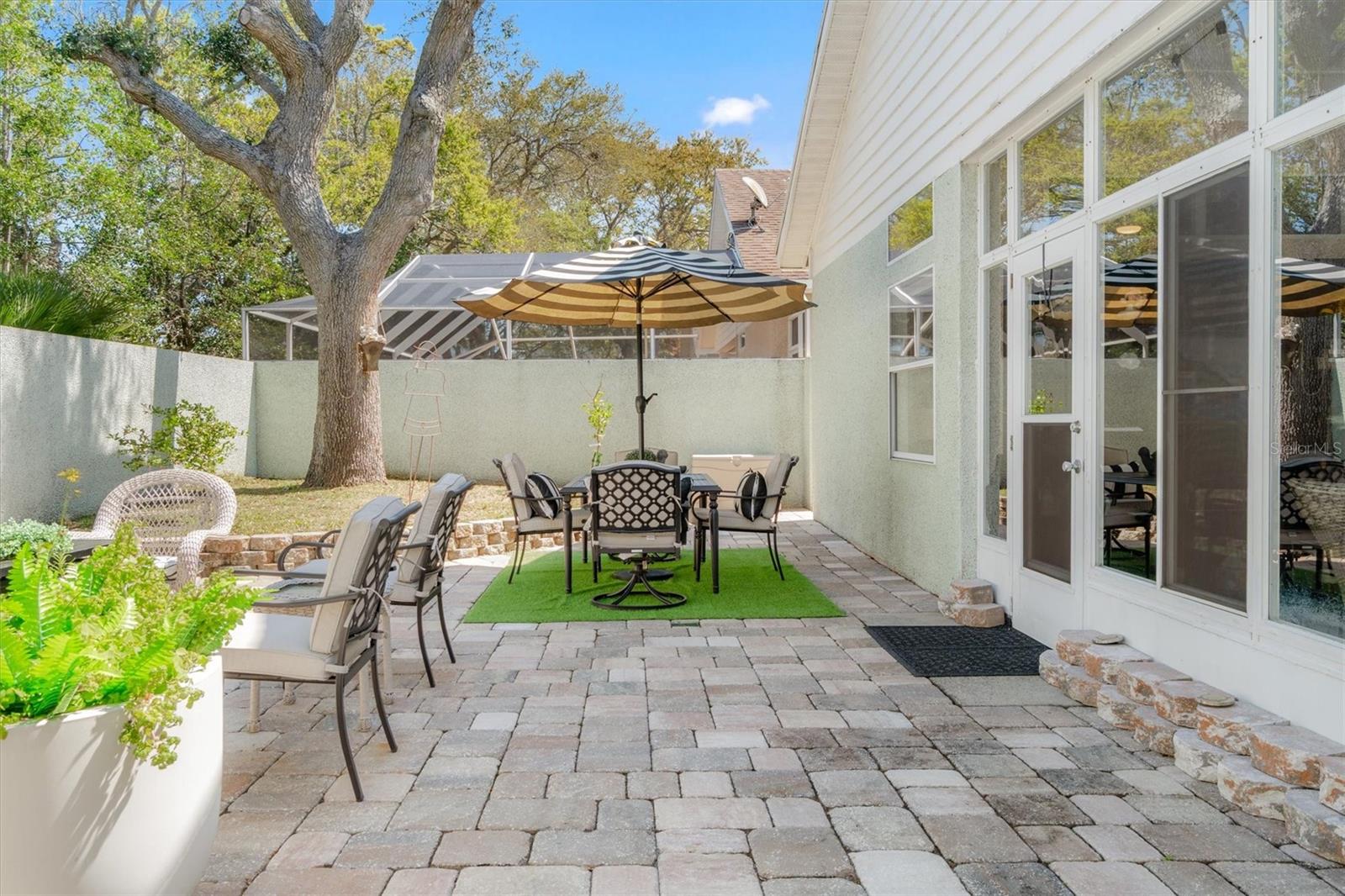 Under contract-accepting backup offers. Imagine starting your mornings with a short stroll to the beach, feeling the ocean breeze, and ending your day with peaceful coastal sunsets. Located in a gated community just minutes from the beaches of Anastasia Island, this beautifully maintained single-story home offers the rare opportunity to enjoy true coastal living just moments from the sand and surf, while still being conveniently close to local restaurants, shopping, and historic downtown St. Augustine. This inviting residence features 3 bedrooms, 2 full baths, and 1,714 square feet of thoughtfully designed living space. Inside, you'll find beautiful tile flooring throughout all main living areas and 10-foot ceilings that create an open, airy feel. The split open floor plan offers both comfort and privacy, making it ideal for everyday living as well as entertaining. The welcoming living room features decorative display ledges with built-in outlets, perfect for showcasing artwork or décor. The spacious kitchen is designed for both function and style, featuring high-tech stainless-steel appliances, a range with air fry and dehydration features, a smart refrigerator with internet connectivity, and a comfortable breakfast nook for casual dining. The large primary suite serves as a relaxing retreat with two walk-in closets, a dual-sink vanity and a separate soaking tub and shower. Enjoy Florida living year-round in the enclosed tiled Florida room, offering beautiful views of the private rear patio with pavers and coquina finish privacy walls, creating a serene outdoor setting ideal for relaxing or entertaining. Additional highlights include a two-car garage with storage cabinets, providing excellent storage and convenience. Residents enjoy low HOA fees that include lawn care, irrigation along with access to a community amenity center featuring a swimming pool, tennis courts, and pickleball courts. Located in Flood Zone X (flood insurance typically not required by lenders), this property offers additional peace of mind. Whether you're looking for a primary residence, coastal getaway, or investment opportunity, this home offers the perfect blend of comfort, convenience, ease of "Lock and Go" and the highly desirable Anastasia Island beach lifestyle. Just minutes from the beaches, shopping, restaurants and Historical downtown St. Augustine.