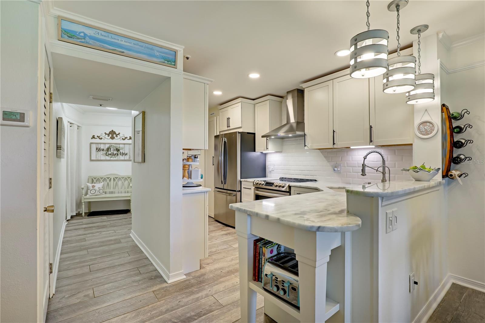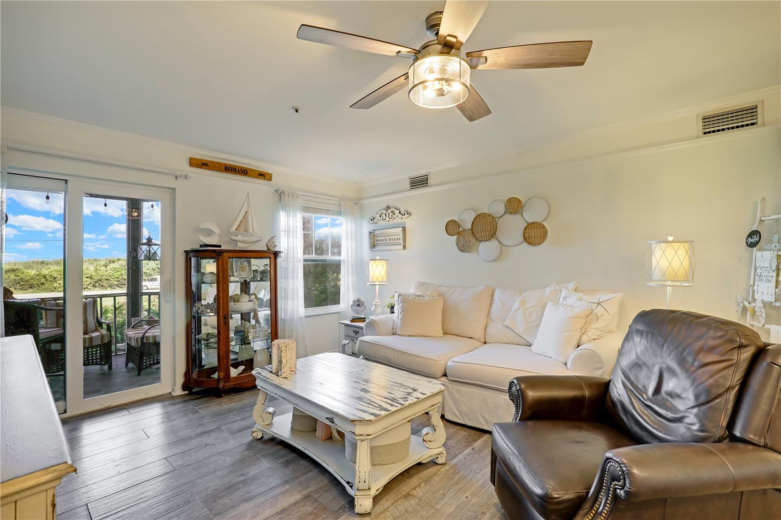 **GATED COMMUNITY**OCEAN FRONT**UPDATED** Step RIGHT ACROSS THE STREET FROM THE OCEAN and into your meticulously maintained coastal sanctuary. This stunning GROUND FLOOR UNIT in the GATED COMMUNITY of Villages of Vilano has been tastefully REMODELED, boasting stylish lighting fixtures, crown molding, and thoughtfully curated finishes throughout. The kitchen features granite countertops, updated cabinetry, and new stainless steel appliances. You'll also find an UPDATED BATHROOM, elegant Italian wood grain tile, NEW PAINT, and a newer AC (2023). Savor the ocean breeze and the soothing sounds of the waves from your NEWLY SCREENED PATIO! As a resident of Villages of Vilano, you'll enjoy unparalleled amenities, including garage parking, two pools (one heated), a sauna, a gym, PRIVATE BEACH ACCESS, a marina, RV/boat storage, tennis courts, pickleball courts, a boat ramp, and 24HR GATED SECURITY. Live the Vilano Beach dream! Don’t miss out!