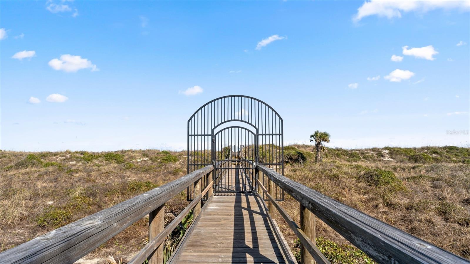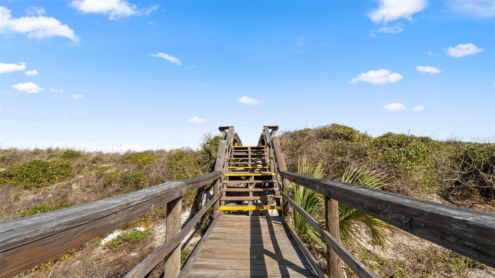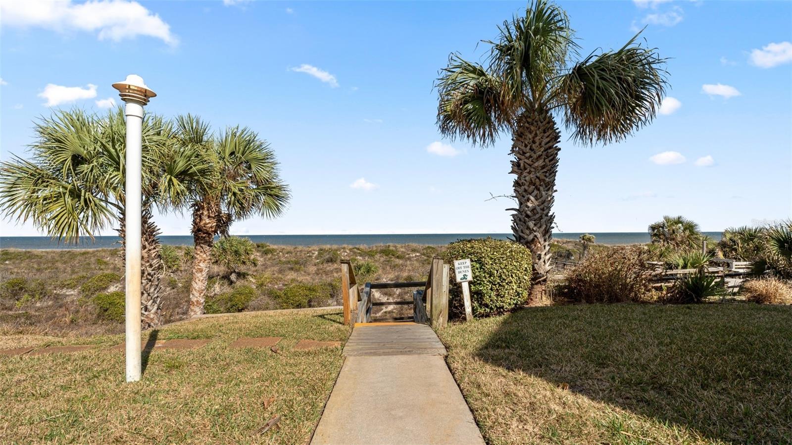 LIVE STEPS FROM THE BEACH! Welcome home to this perfectly placed condo building perched on the dunes with oceanfront views located in Quail Hollow. Step inside this light and bright 2 bedroom / 2 bathroom unit with open floorplan that is fully furnished. The large great room doubles as a functional flex space and is highlighted by sliding door opening to rear private patio. This open concept offers a seamless transition between the great room and the separate dining area with built-in storage cabinets and transom windows to continue basking in the natural light. Galley style kitchen features plenty of cabinetry for all your culinary needs and conveniently placed NEW washer and dryer. The primary bedroom features slider with plantation shutters to private rear patio, two wall closets and en-suite bathroom with tub/shower combo. Second full bathroom offers tub/shower combo and single vanity and second bedroom has wall closet. Hallway coat closet and linen closet for additional storage. Roof recently replaced along with exterior updating and paint. Private gated entrance to complex with one designated parking spot. Gated access and private boardwalk to beach, outdoor rinse station and large outdoor seating and entertaining area. SHORT TERM RENTALS ALLOWED and FULLY FURNISHED! HOA INCLUDES: building insurance, internet, water, waste water, pest control, on-site maintenance, pool, and trash.