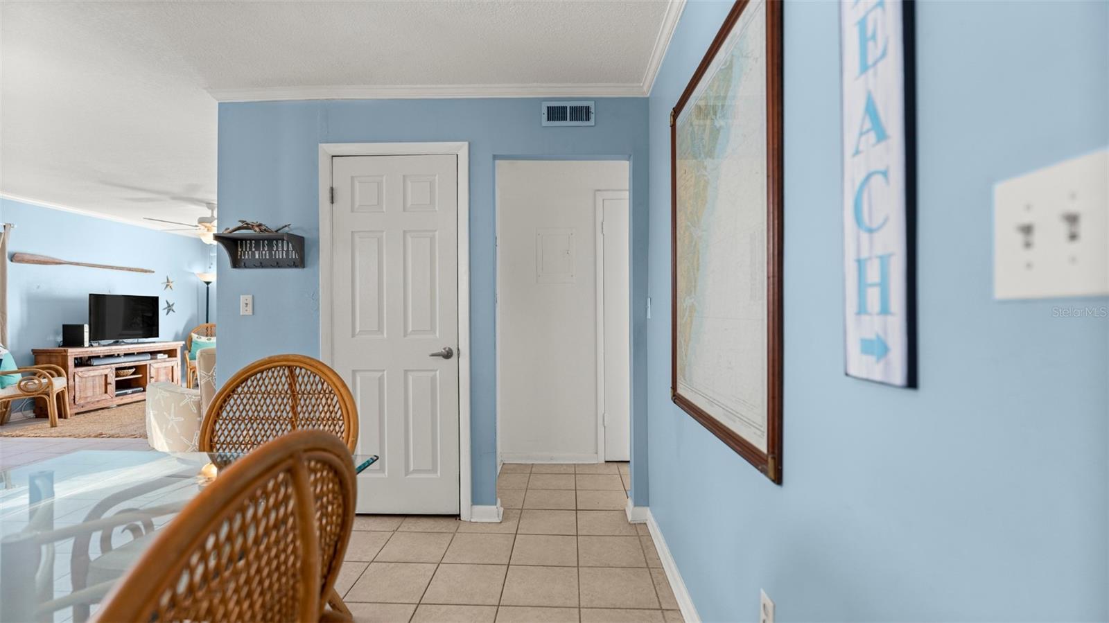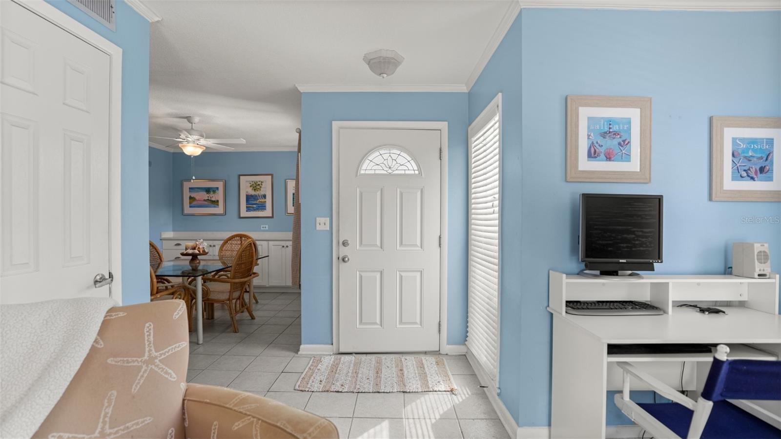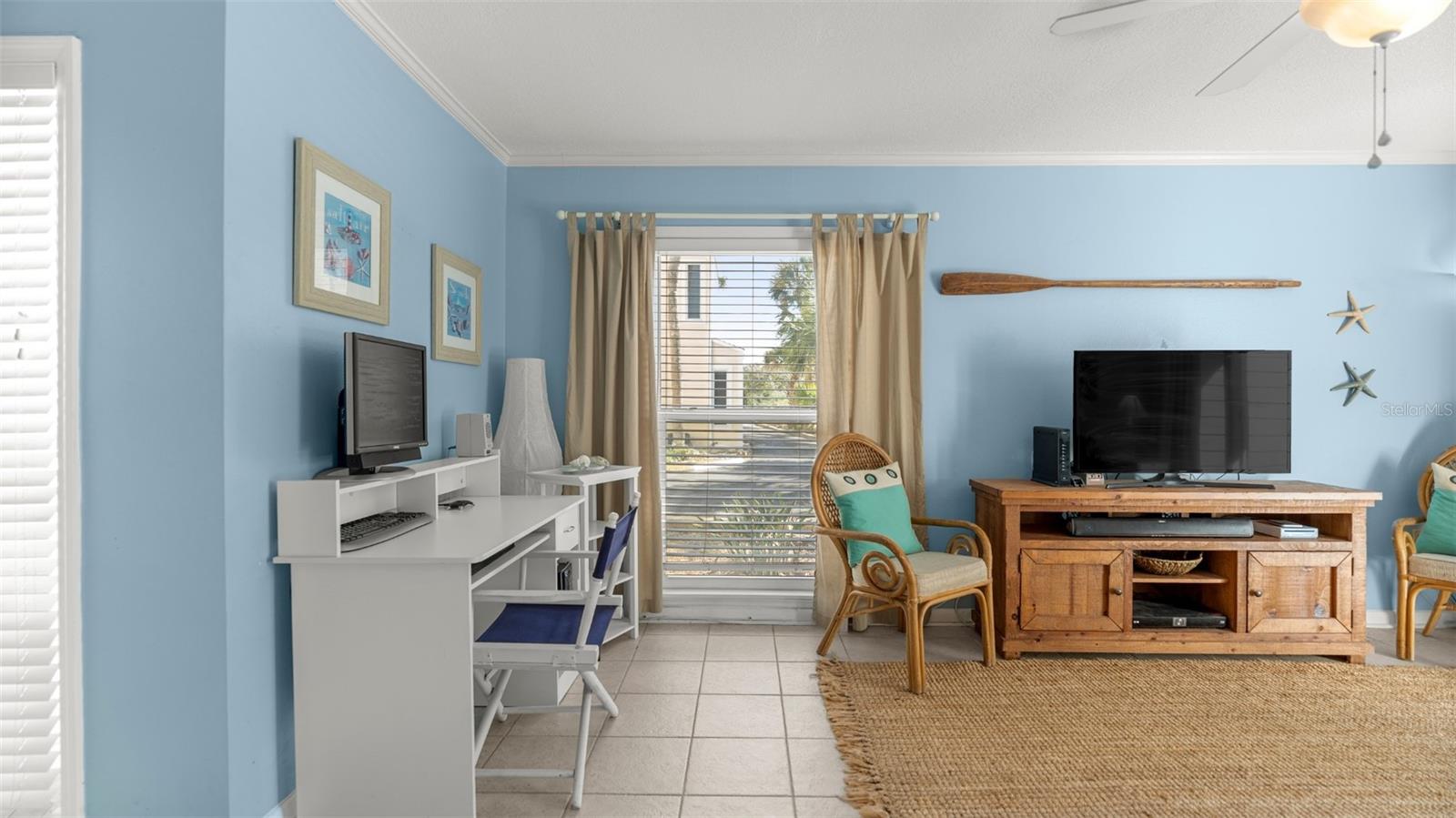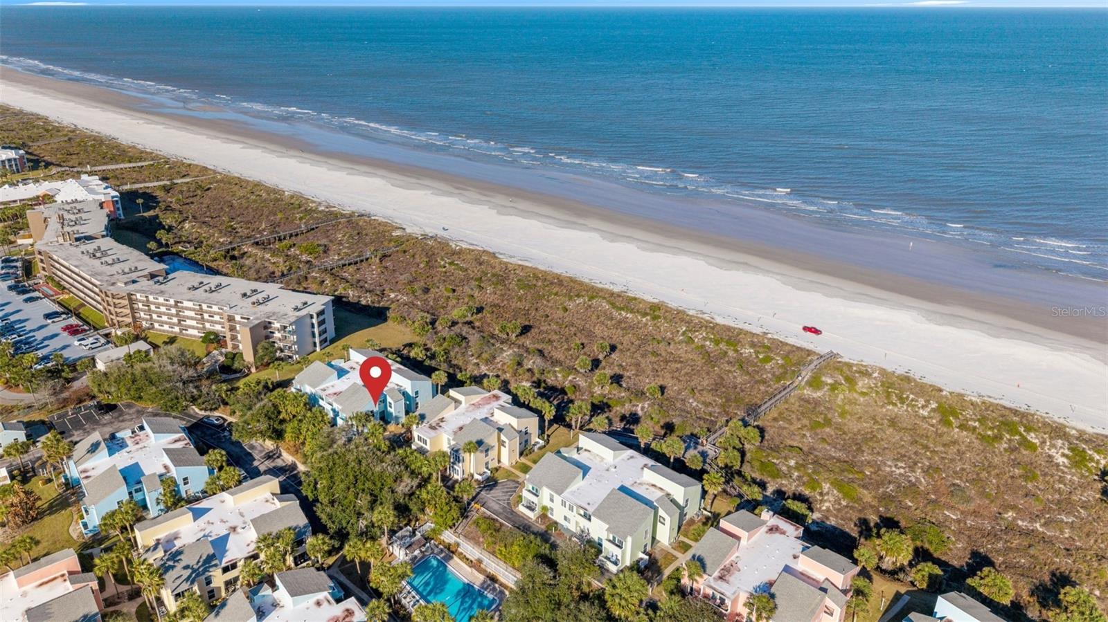 LIVE STEPS FROM THE BEACH! Welcome home to this perfectly placed condo building perched on the dunes with oceanfront views located in Quail Hollow. Step inside this light and bright 2 bedroom / 2 bathroom unit with open floorplan that is fully furnished. The large great room doubles as a functional flex space and is highlighted by sliding door opening to rear private patio. This open concept offers a seamless transition between the great room and the separate dining area with built-in storage cabinets and transom windows to continue basking in the natural light. Galley style kitchen features plenty of cabinetry for all your culinary needs and conveniently placed NEW washer and dryer. The primary bedroom features slider with plantation shutters to private rear patio, two wall closets and en-suite bathroom with tub/shower combo. Second full bathroom offers tub/shower combo and single vanity and second bedroom has wall closet. Hallway coat closet and linen closet for additional storage. Roof recently replaced along with exterior updating and paint. Private gated entrance to complex with one designated parking spot. Gated access and private boardwalk to beach, outdoor rinse station and large outdoor seating and entertaining area. SHORT TERM RENTALS ALLOWED and FULLY FURNISHED! HOA INCLUDES: building insurance, internet, water, waste water, pest control, on-site maintenance, pool, and trash.