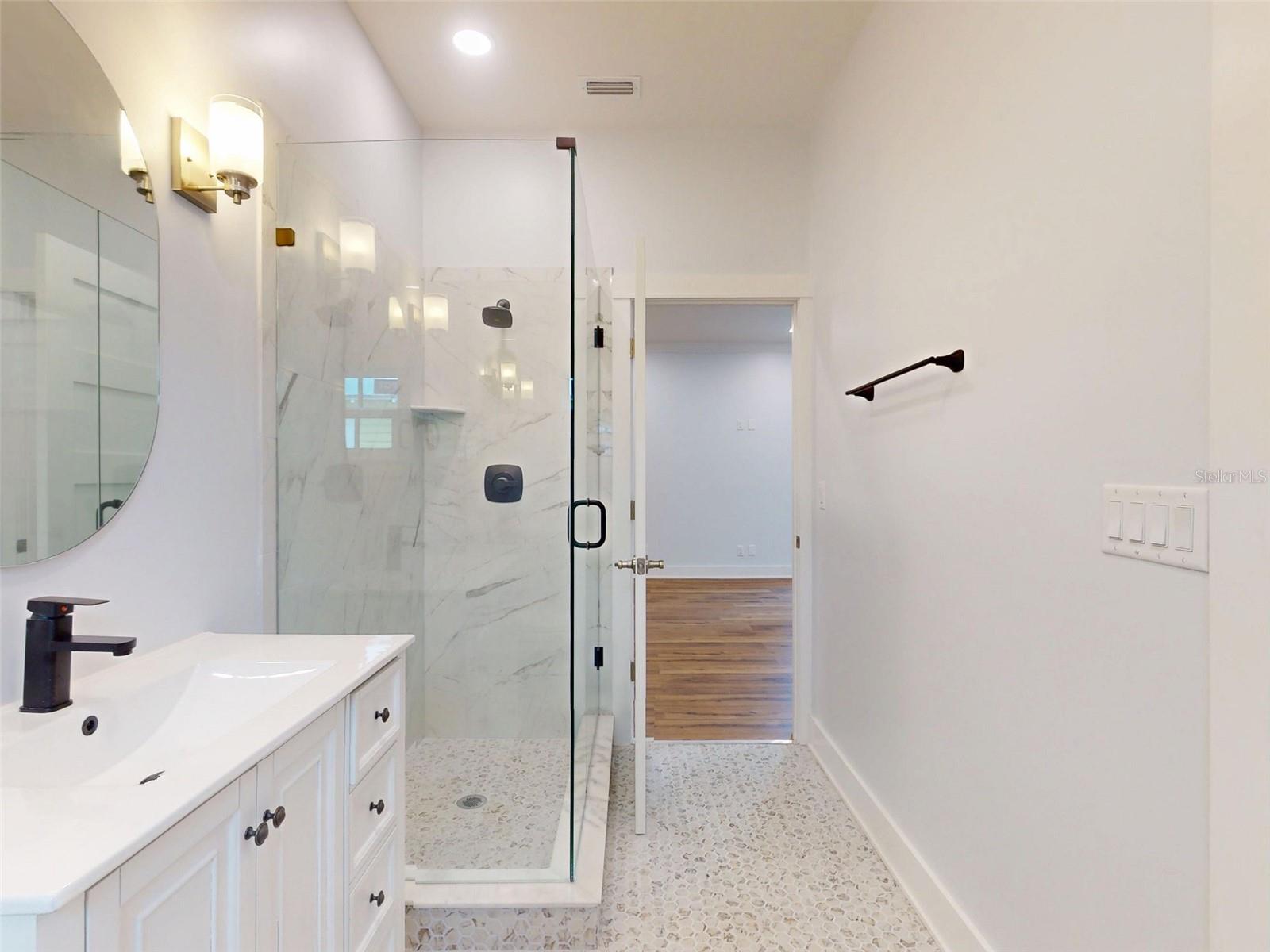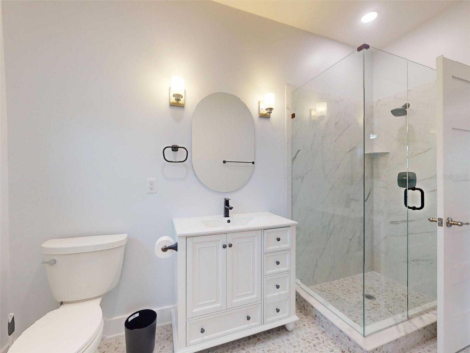 RENOVATED and REMODELED beautiful home located in the historic Lincolnville area of downtown Saint Augustine. The upgrades to this home are so significant that you will feel as though you are in a newly constructed home! This home has been completely re-plumbed, re-wired and re-framed. Brand new flooring throughout, New storm rated windows and doors, new A/C system and new tankless water heater. All kitchen appliances are new and this home is equipped with a new washer and dryer. All new lighting, fans, interior and exterior paint. The "before and after" of this complete home transformation is amazing. As you arrive to the home you will notice the beautifully landscaped yard with the newly installed brick-pavered walkway that leads to the inviting wrap-around, covered front porch. The perfect spot to relax with family and friends. Enter through the front door into the large "open concept" living area. The beautiful new windows bring in tons of natural light. The living room and dining area provide ample space for entertaining. Step into the gorgeous kitchen with new quartz back-splash, fresh new counter tops and wood, shaker cabinets. The jewel of this kitchen is the center island topped with a unique, custom quartz counter top designed to evoke feelings of Florida coastal living. There are two spacious bedrooms each with their own ensuite bathroom. The two completely new bathrooms feel like a spa retreat. All new fixtures, flooring, lighting, etc. The spacious walk-in closet and laundry room are conveniently located adjacent to the primary bedroom. The backyard and screened in back-porch provide a tranquil and peaceful oasis to relax and unwind. The renovation of this home included raising the elevation. This home now sits at 10.3 feet. As you step outdoors, you quickly realize why Saint Augustine is so special. Tree-lined streets, local cafes, historic architecture and horse drawn carriages add to the charm of this area. Museums, live music and a variety of festivals are all a part of the vibrant Saint Augustine life style. Located close to the river and just minutes to the beautiful beaches, this area is rich in outdoor activities. Call today to schedule a showing to see this amazing home.
