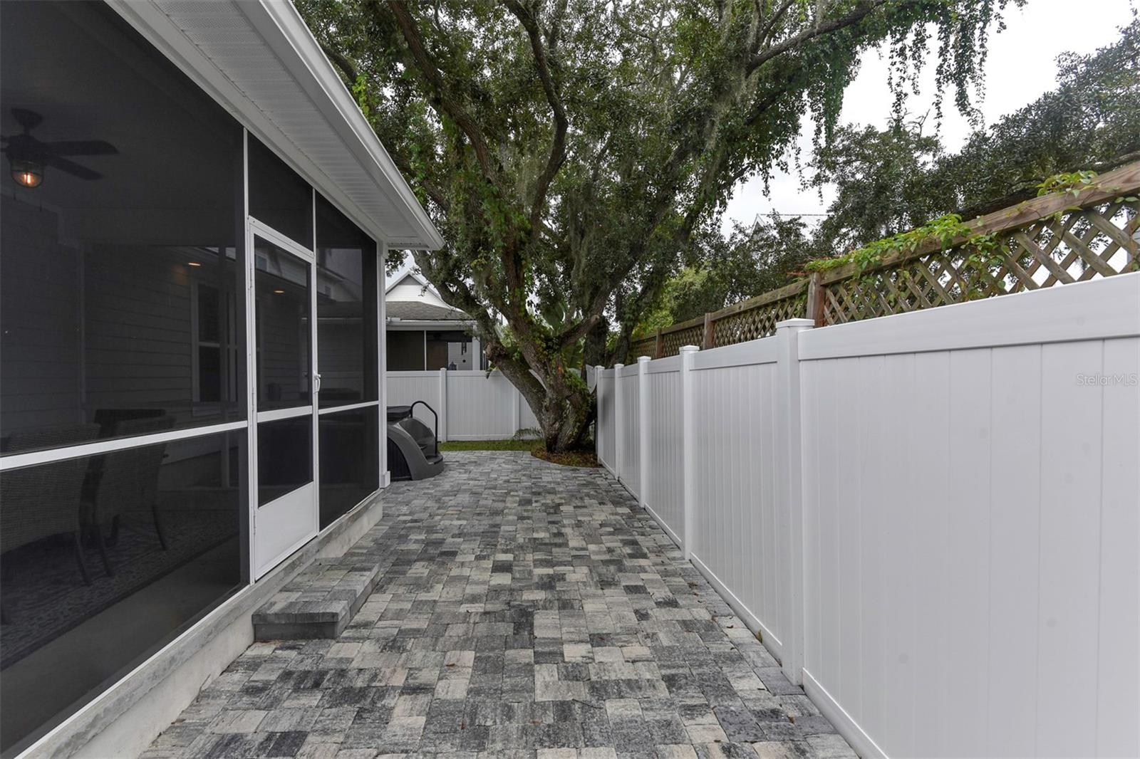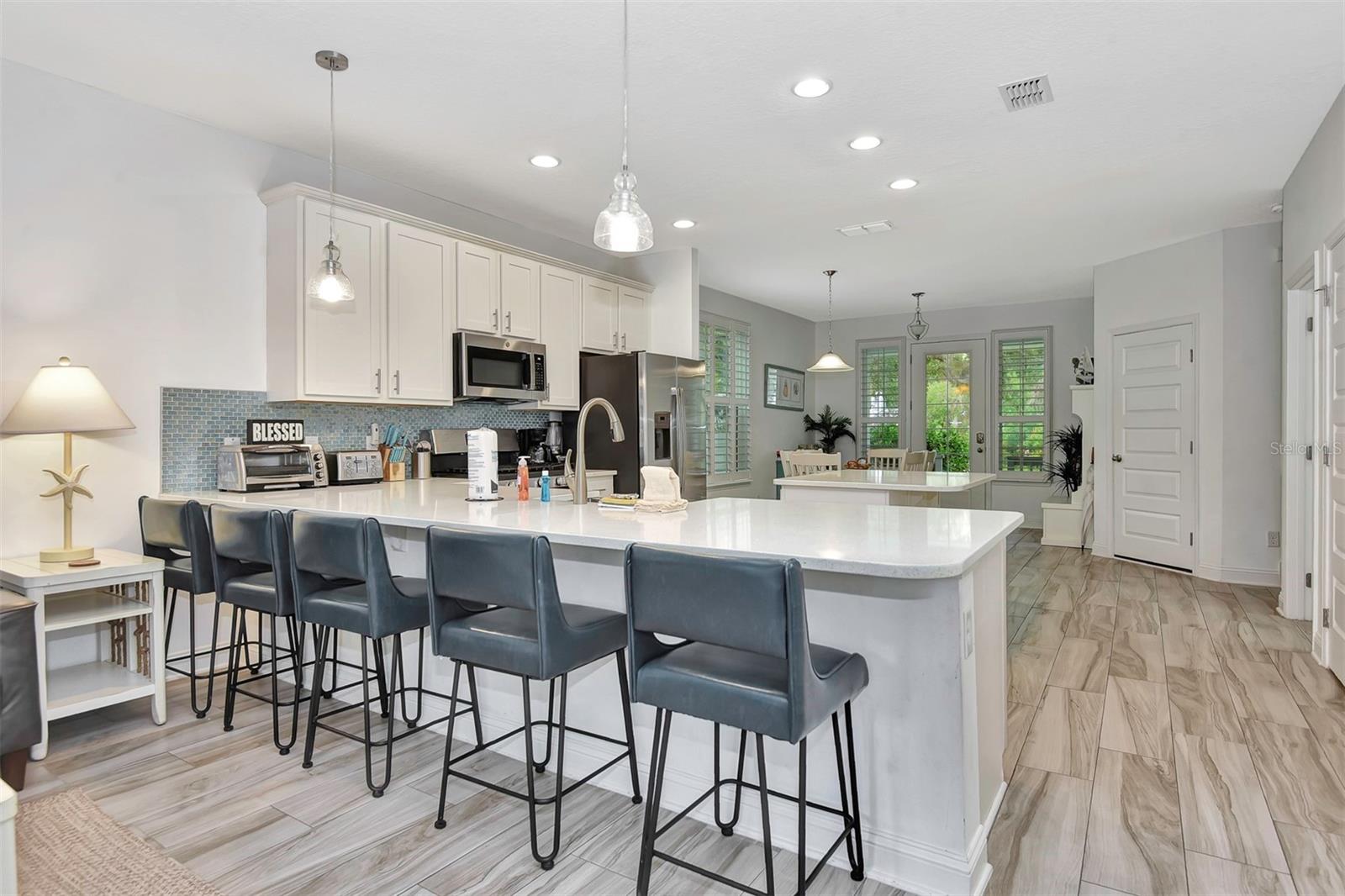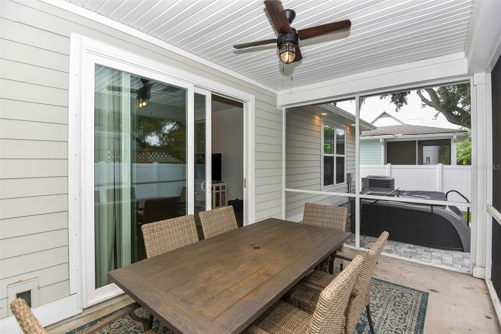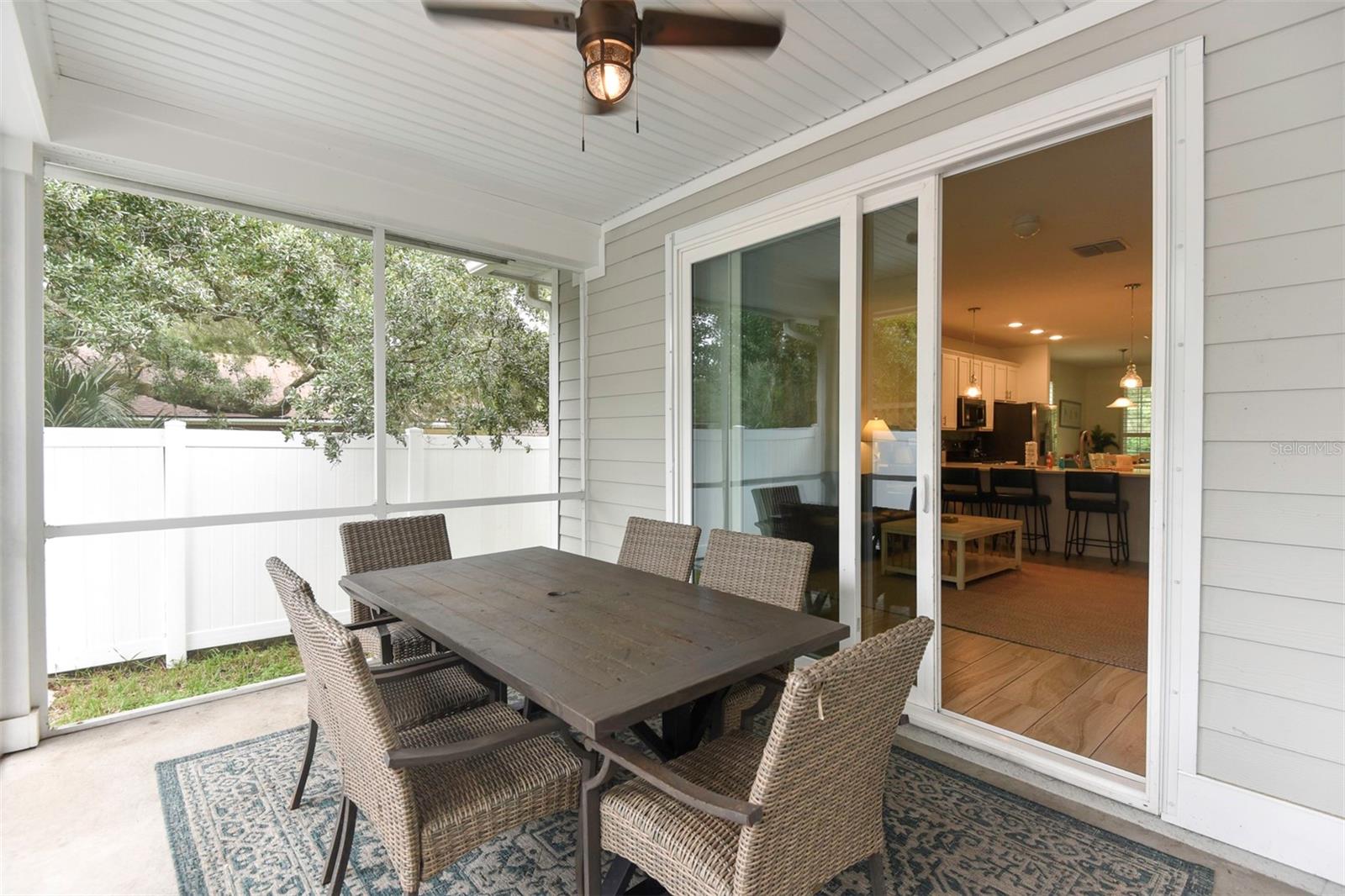 MAJOR PRICE IMPROVEMENT FOR THIS INVESTMENT OR PRIMARY RESIDENTIAL BEAUTY. Nestled in a quiet neighborhood surrounded by mature trees with NO HOA's! This fully furnished 4-bedroom, 2.5-bathroom home offers 2,103 square feet of luxurious living just steps from the intercoastal waterway and a few blocks from the ocean. Step into an open and functional floor plan featuring high trey ceilings in both the spacious living room and the owner's suite. The modern kitchen is a chef's dream, with stainless steel appliances, quartz countertops, a stylish backsplash, ample storage, and seating around both the island and peninsula—perfect for entertaining. Downstairs, the owner's suite offers a serene retreat with a large walk-in closet, a tiled, double-headed shower, dual vanities, and a private water closet. The first level also includes a convenient powder room. Upstairs, you'll find a spacious landing, and three additional bedrooms providing ample space for family or guests. Luxury vinyl plank flooring runs throughout the downstairs living areas, with plush carpet in the bedrooms and on the stairs. Outside, enjoy Florida living with a covered front porch, a screened-in lanai, and upgraded paver patios that extend to the back and side of the home. The outdoor shower is perfect for rinsing off after a day at the beach. The oversized 2-car garage, currently set up as a game room, is ideal for entertaining guests of all agesplay pool while catching your favorite game. Built just 5 years ago, this home offers modern finishes throughout, including quartz countertops and high-end fixtures. Whether you're looking for a primary residence or a vacation getaway, this move-in-ready property is the perfect blend of comfort and coastal charm.