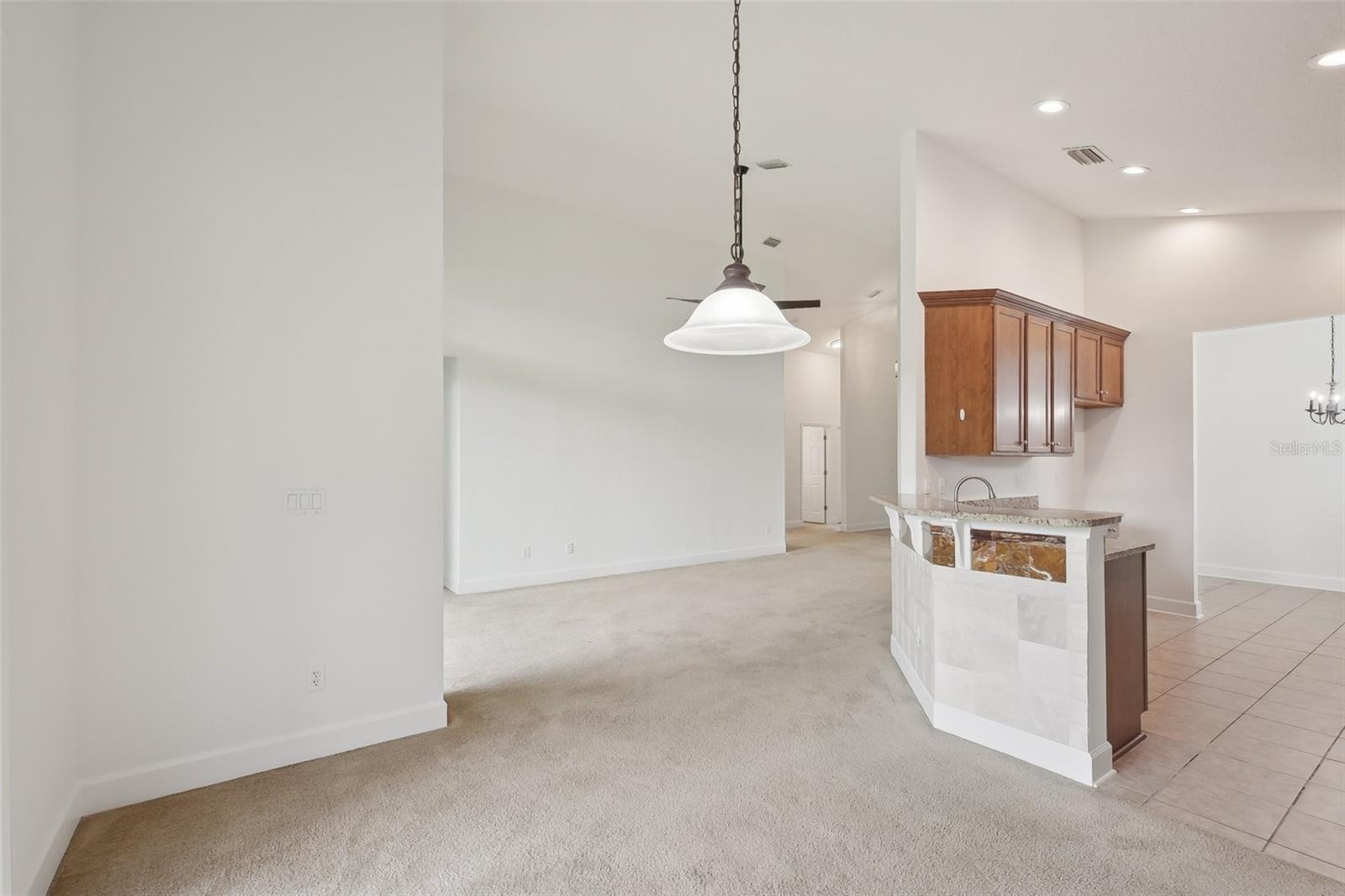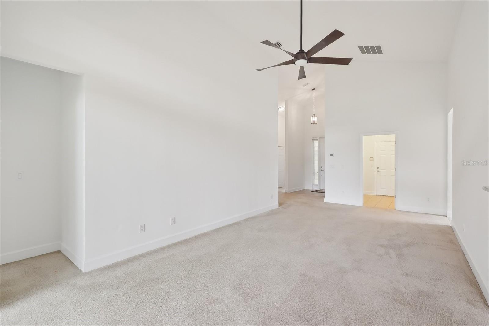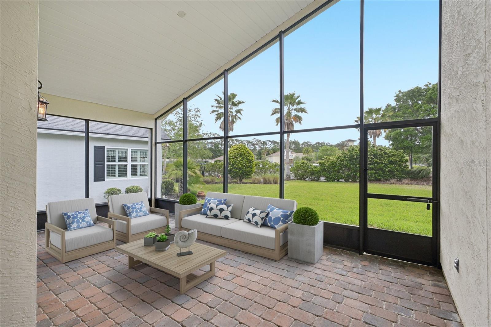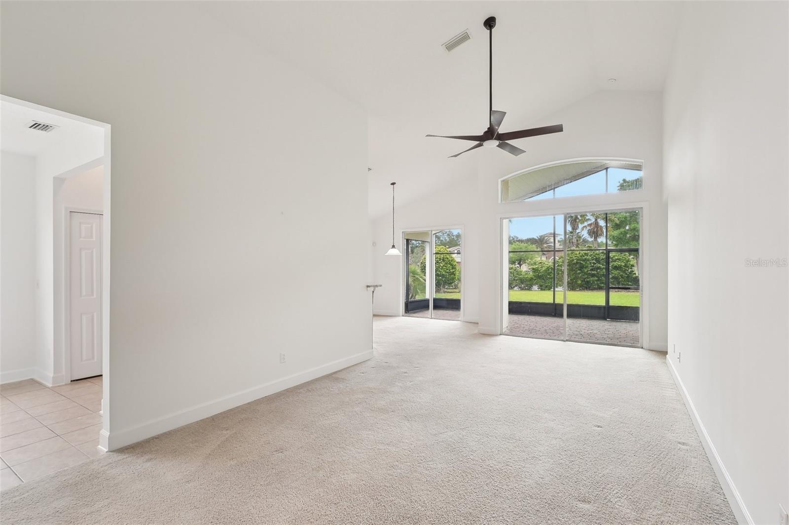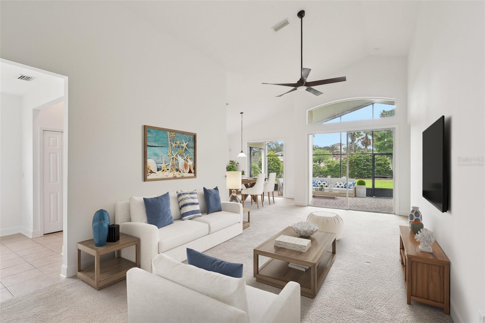 One or more photo(s) has been virtually staged. **PRICE IMPROVEMENT** Beautifully maintained Eagle Trace plan in the desirable 55+ Cascades at World Golf Village, just a short walk to the resort-style clubhouse. Located on a larger-than-average lot with guest parking nearby, this home features vaulted ceilings, a spacious screened lanai, and numerous upgrades completed in March 2025: new AC, garage motor/opener, range, microwave, dishwasher, faucets, toilets, fresh paint, and deep-cleaned carpets. The kitchen offers granite counters and a marble tile accent wall under the breakfast bar. The flexible bonus room/office is ideal for work or guests. HOA includes lawn care (mowing, trimming, and irrigations) and access to top-tier amenities: indoor/outdoor pools, fitness center, card rooms, ballroom, libraries, arts & crafts studios, and optional golf memberships.