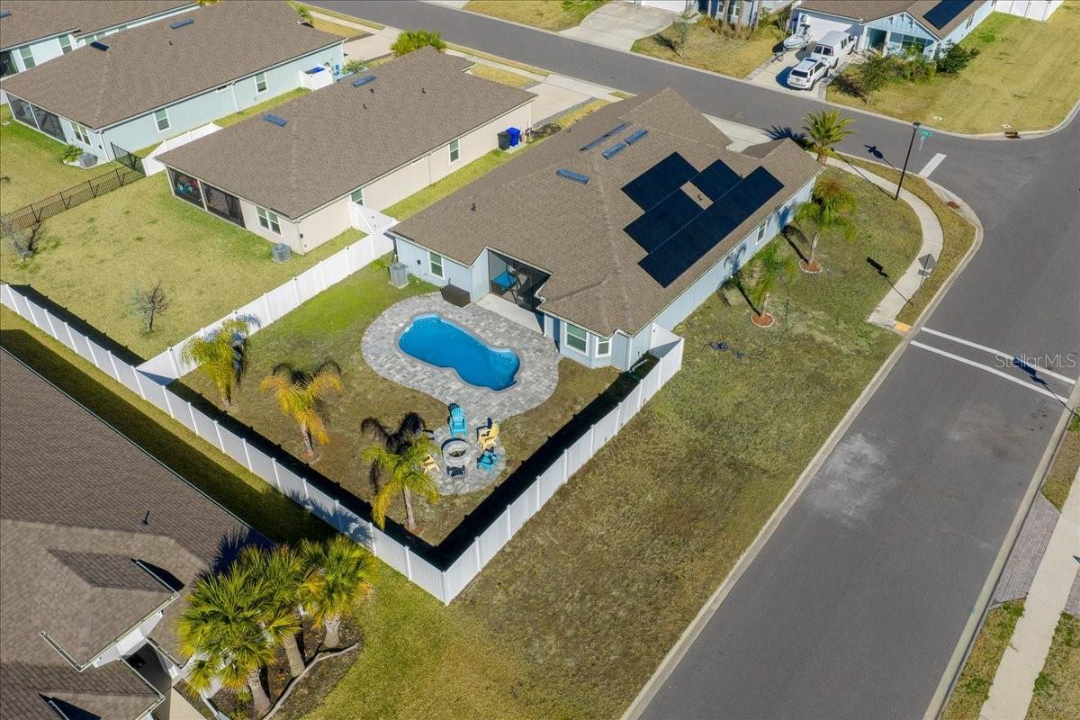One or more photo(s) has been virtually staged. Impeccably clean, bright, and beautifully open, this newer pool home delivers the kind of Florida living that feels both spacious and luxurious. Set on a fully privacy-fenced corner lot, it offers privacy, generous outdoor living, and a true sense of openness both indoors and out. Inside, large rooms and high ceilings create an airy, expansive feel throughout the home. The open layout is anchored by a kitchen featuring quartz countertops and a large quartz island that flows into the into the main living area and dining area. Triple cascading sliding doors open to a screened patio that seamlessly extends the living space outdoors. Outside, the home continues to impress with a screened patio with TV hook-up, a pavered pool area, and a stone fire pit for year-round enjoyment - while the privacy fence and corner lot maintain a sense of seclusion. The three-car garage adds even more room for vehicles, storage, or hobbies. The split floor plan includes four spacious bedrooms and three bathrooms, with a primary suite offering double vanities, a tray ceiling, and multiple closets including a walk-in. Easy access to beaches, I-95, and historic downtown, yet removed from congestion, this home delivers the space, comfort, and outdoor living that define elevated Florida living.