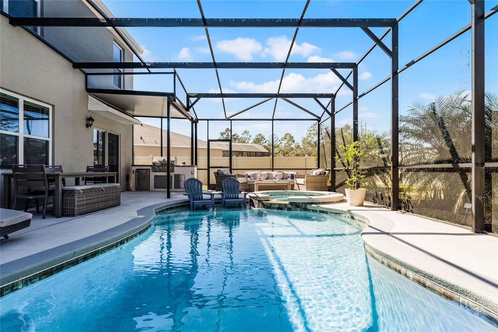 OWNER WILL PAY OFF SOLAR PANELS AT CLOSING. Stunning 5-Bedroom Home with Pool, Spa & Solar – Built in 2020! Welcome to this beautifully designed 5-bedroom, 3-bathroom home, built in 2020, offering modern features and energy efficiency in a prime location. This spacious home boasts an open-concept floor plan with high ceilings, abundant natural light, and stylish finishes throughout. The gourmet kitchen features sleek countertops, stainless steel appliances, and ample cabinetry, seamlessly connecting to the living and dining areas—perfect for entertaining. The primary suite is a true retreat, complete with a luxurious en-suite bath and generous closet space. Four additional bedrooms provide plenty of room for family, guests, or a home office.Step outside to your private backyard oasis, featuring a sparkling pool, relaxing spa, and a beautifully landscaped patio—ideal for outdoor gatherings. With solar panels, enjoy energy savings year-round!Conveniently located with easy access to top-rated schools, shopping, dining, and all area amenities, this home truly has it all. Don’t miss your chance to own this exceptional property—schedule a showing today!