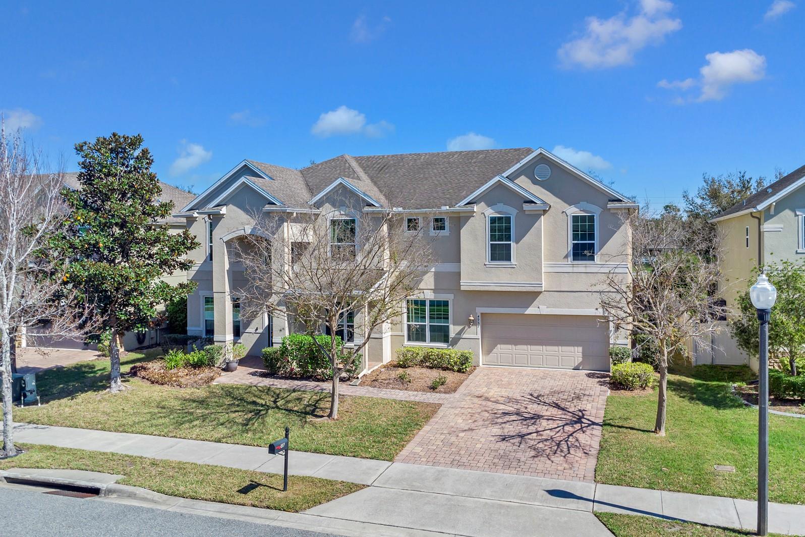 Spacious 6 Bedroom Oasis in Sought-After Orlando Community: Escape to your private retreat in this stunning 6 bedroom 4 bath home nestled in a tranquil gated community in South East Orlando. This beautifully maintained two-story residence offers a perfect blend of luxury and comfort, just minutes from the vibrant Lake Nona Medical City and the serene shores of East Lake Tohopekaliga. Step inside through the charming entryway and be greeted by gleaming laminate wood floors that flow into the formal living and dining rooms – ideal for hosting unforgettable gatherings. The gourmet kitchen features 42” maple cabinets, granite countertops, stainless steel appliances, a breakfast bar, and plenty of space for culinary creations. Enjoy meals together in the well-lit dinette with French doors leading out to the expansive backyard – your canvas for spring planting, pool installation, or a playful family retreat. The first floor also offers a bedroom, office, and full pool bath. A three-car garage, water softener system, and reverse osmosis dispenser add convenience and peace of mind. Ascend the staircase to discover a spacious loft area – perfect for movie nights, game days, or creating a dedicated space for hobbies. The luxurious master suite boasts his and her sinks, a separate shower, and a relaxing garden tub – your private oasis after a long day. Four additional bedrooms, full baths, laundry, and a bonus room complete this exceptional home. This dream home is conveniently located near Highway 417, top-rated schools, and an array of shopping and dining options. Schedule your private showing today and discover the charm of this incredible home!
