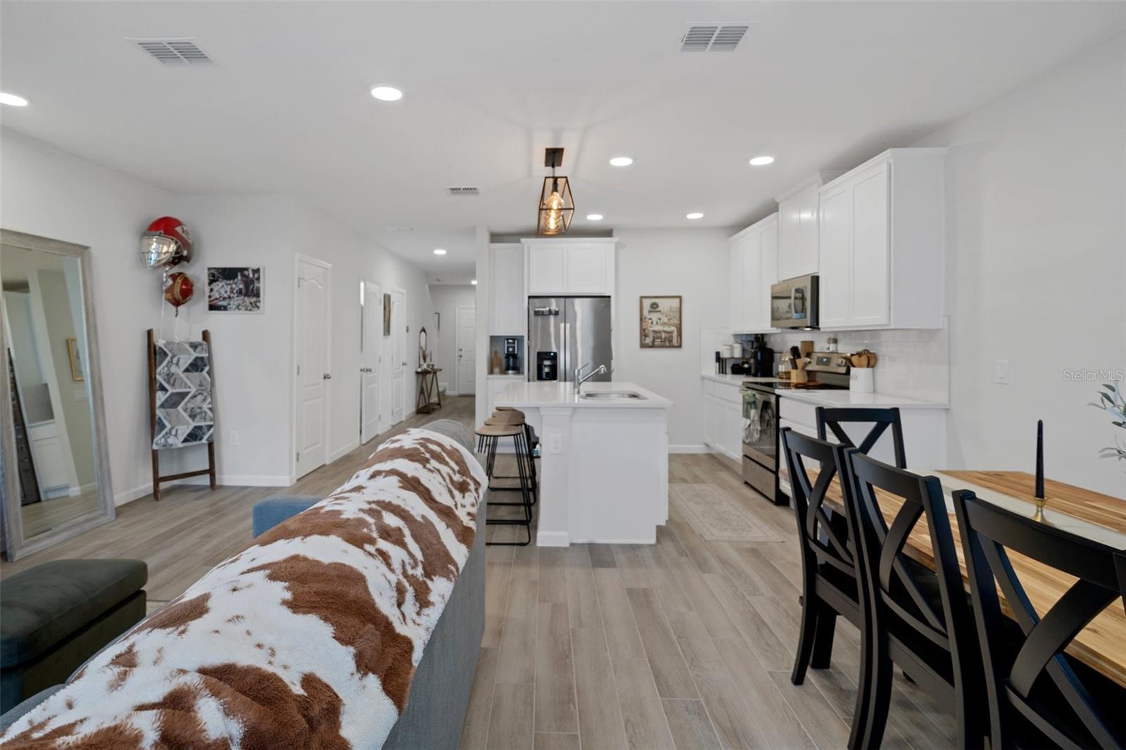 PRICE REDUCED BY 20K - Ask about Interest Rate Buy-Down and Help with Closing Costs!!! Welcome to 5002 Rain Shadow Drive, a contemporary townhouse nestled in the heart of St. Cloud, Florida at the brand new Eden At Cross Prairie! Built in 2023, this basically new and modern residence offers 3 spacious bedrooms and 2.5 well-appointed bathrooms within 1,556 square feet of thoughtfully designed living space. As you step inside, you'll be greeted by an open-concept floor plan that connects the living, dining, and kitchen areas, creating an inviting atmosphere perfect for dinner with loved ones or those fun game and movie nights. The kitchen boasts modern appliances, ample cabinetry, and a convenient layout that will delight any home chef. Don't forget about the half-bathroom on the main floor adds to the home's convenience. Upstairs, you are greeted instantly with a second living/entertaining area, the floor plan is split with the primary suite on one side providing a serene retreat with an en-suite bathroom, while two additional bedrooms share a well-designed full bathroom. Located in the desirable Eden At Cross Prairie subdivision, residents enjoy easy access to local amenities including community pool and playground as well as the peaceful walking trail, nearby schools, and major attractions such as Disney only 25 miles away, Lake Nona, and Orlando International Airport, making this location a slam dunk! Experience the perfect blend of modern design and comfortable living at 5002 Rain Shadow Drive—your new home awaits.