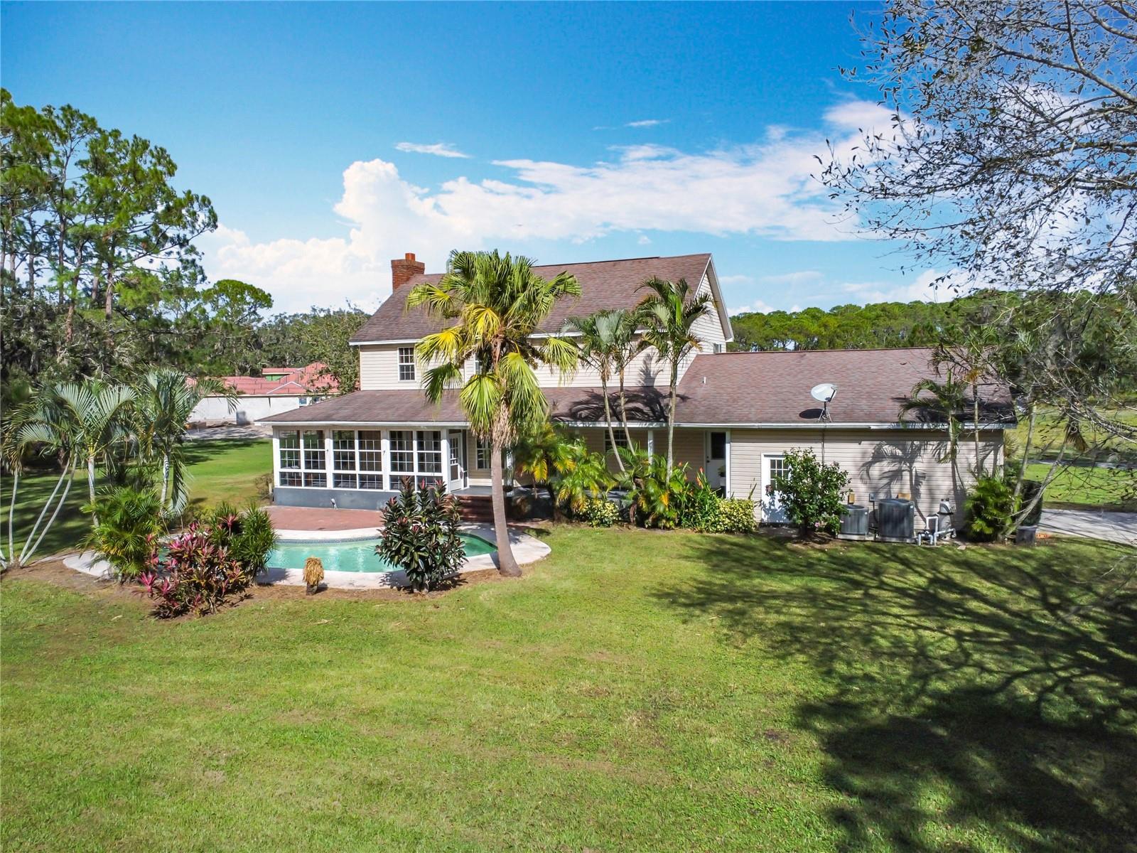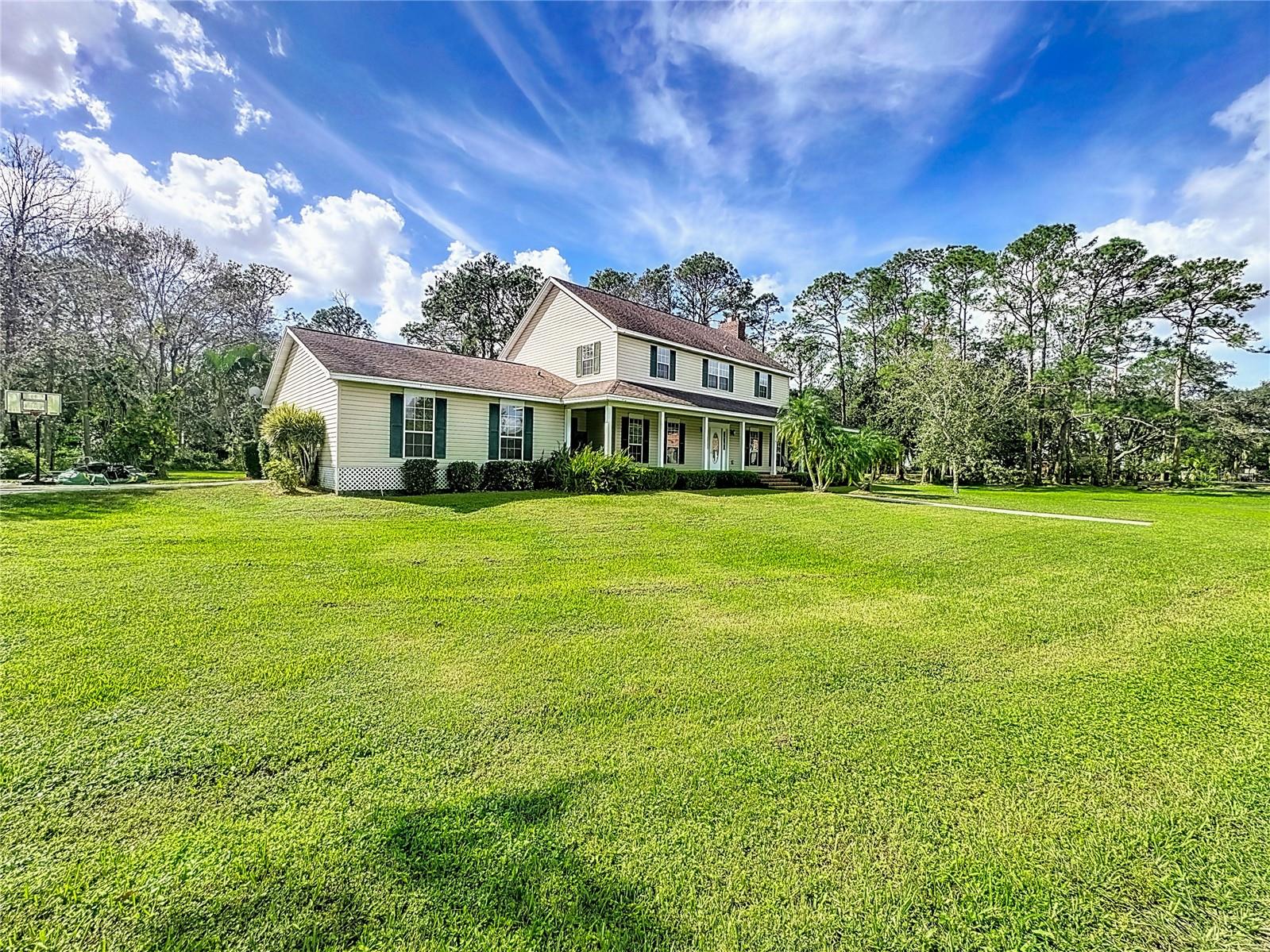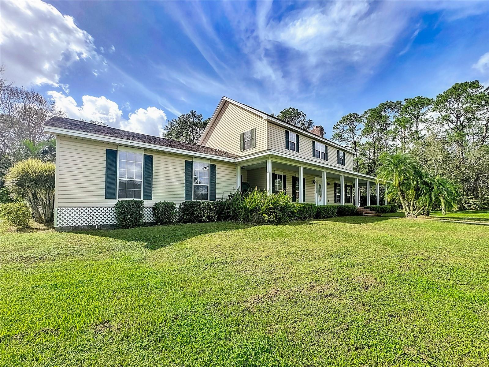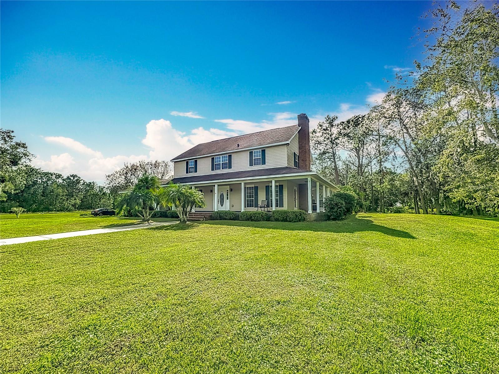 Introducing this rare and inviting 4-bedroom, 3-bathroom, two-story pool home. Perfectly positioned on over 5+ cleared acres between Saint Cloud and Harmony. With a spacious layout and exceptional features, this property is ideal for those seeking privacy, convenience, and comfort. Inside, enjoy a well-thought-out floor plan featuring a cozy living room with a wood-burning fireplace, a formal dining room, and a generously sized kitchen—perfect for hosting family and friends. Also on the main floor, an in-law suite with a private entrance provides the perfect blend of comfort and independence for guests or family members. Upstairs, you’ll find three bedrooms and two bathrooms, including a beautiful main suite complete with a walk-in closet and a garden bathtub. The convenience of an upstairs laundry room adds an extra touch to daily living ease. Step outside to a large, wrap-around front porch that leads to an enclosed Florida room overlooking a sparkling pool—your ideal space to relax, entertain, or simply take in the beautiful surroundings and natural wildlife. This property also has canal access to Alligator Lake and the chain of lakes, making it a fantastic choice for those who love water activities and outdoor living. With its prime location, acreage and no HOA, the property has endless opportunities. Don't miss out, schedule your tour today!! Please see video @ https://vimeo.com/1027984219/16783e8cb9