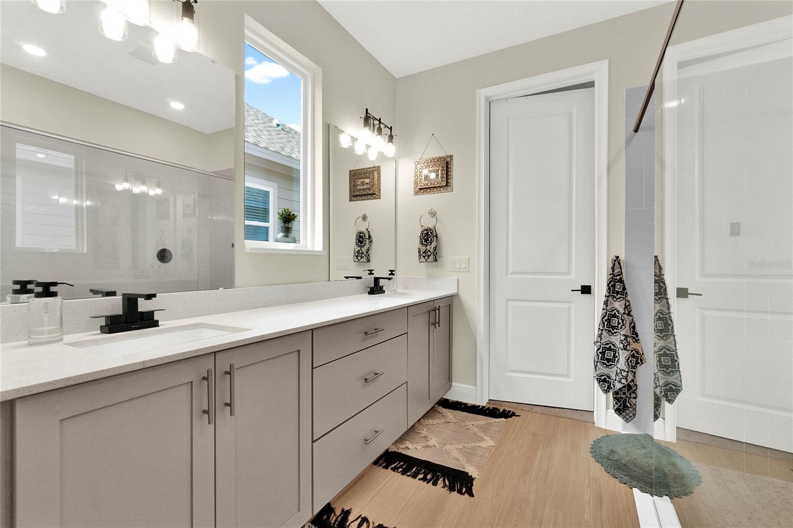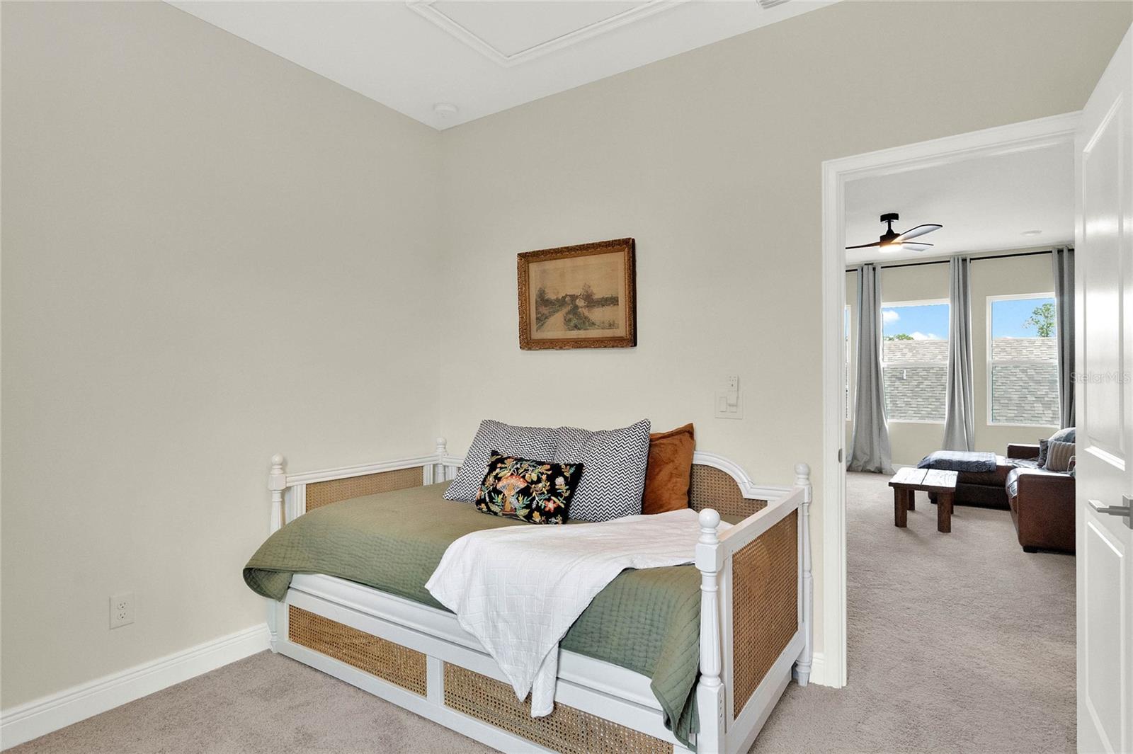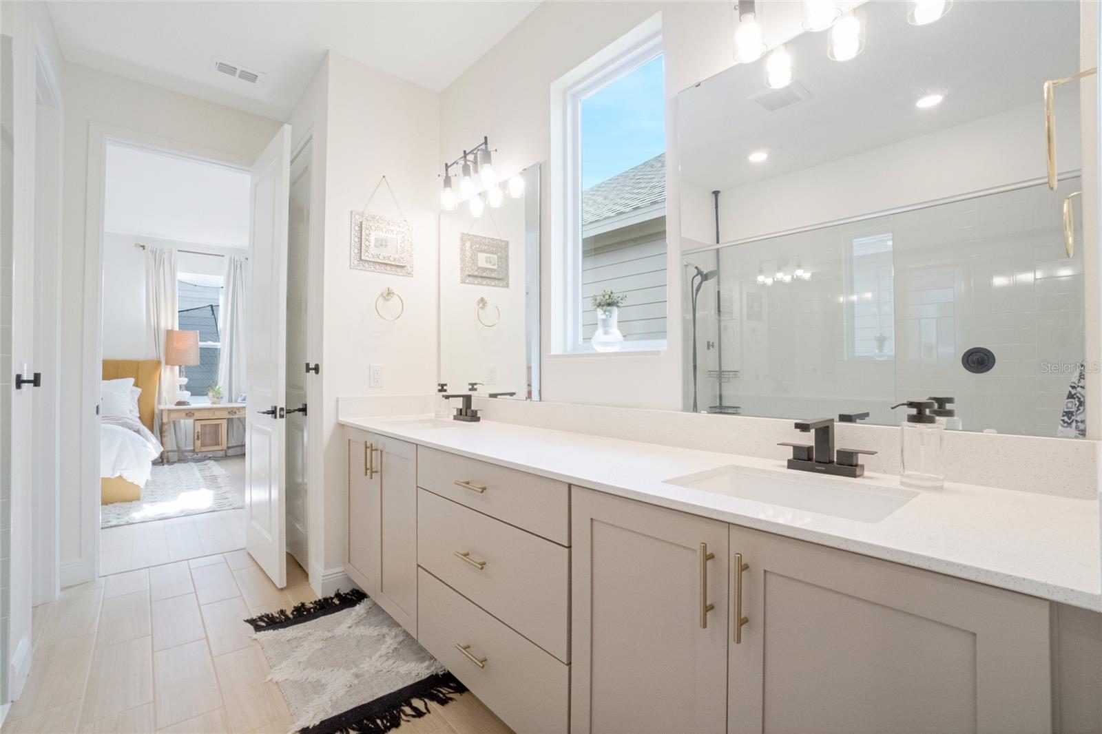 Welcome to Weslyn Park, the "Naturehood", part of the Tavistock Master Planned Community. Built in August 2024, this 3,800-square-foot home blends luxury and functionality with nature-inspired living. This home offers 4 bedrooms and 4 full bathrooms, plus an optional 5th bedroom or flex space. Detached Garage Apartment: The 800 sq. ft. apartment features a full kitchen, bedroom, bathroom, and washer/dryer. Perfect for rental income, extended family, or a workspace. The gourmet kitchen boasts Cafe Series White and Gold appliances, a double oven, hardwood cabinets with dovetailing, and a custom wood hood over the range. The first floor features luxury vinyl flooring, and the spa-like primary bathroom includes a large glass-enclosed shower. Upstairs, a spacious loft includes a bedroom and full bath, ideal for guests or a private retreat. Solar panels included with the home, significantly reduce energy costs, adding to the home’s appeal. HOA includes high-speed internet, ensuring seamless connectivity and all amenities listed below. Enjoy peace of mind with the Ashton Woods Full House Warranty, transferable to the new owner. Community Highlights: New Amenity Center under construction, including, a restaurant, bar, event spaces, and trailhead for hiking, kayak dock, zero-entry resort-style pool, and fitness center. House is two blocks from the current community pool and park. Zoned for the state-of-the-art K-8 Voyager School, within walking distance. This exceptional property offers luxury living, rental potential, and top-tier amenities in a vibrant community. Lake Nona only a few miles away as well. Don’t miss your chance to call 6542 Rover Way your home!