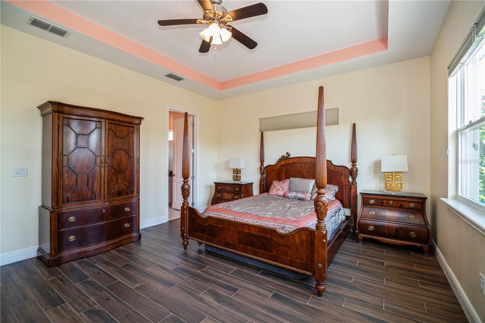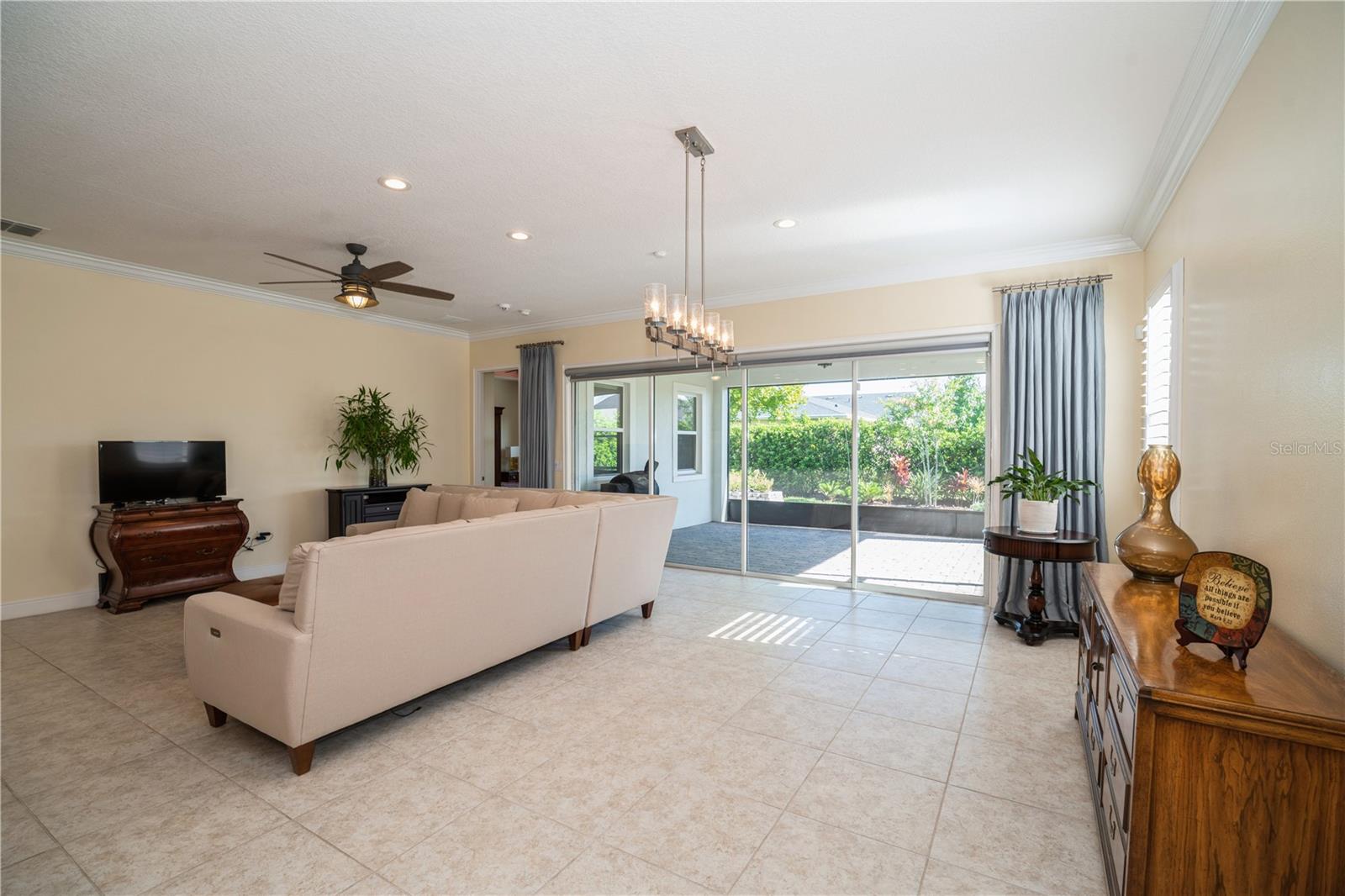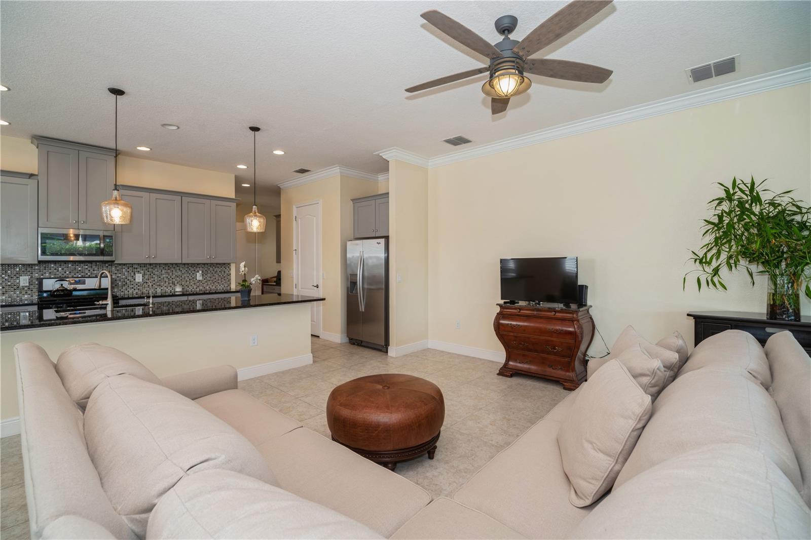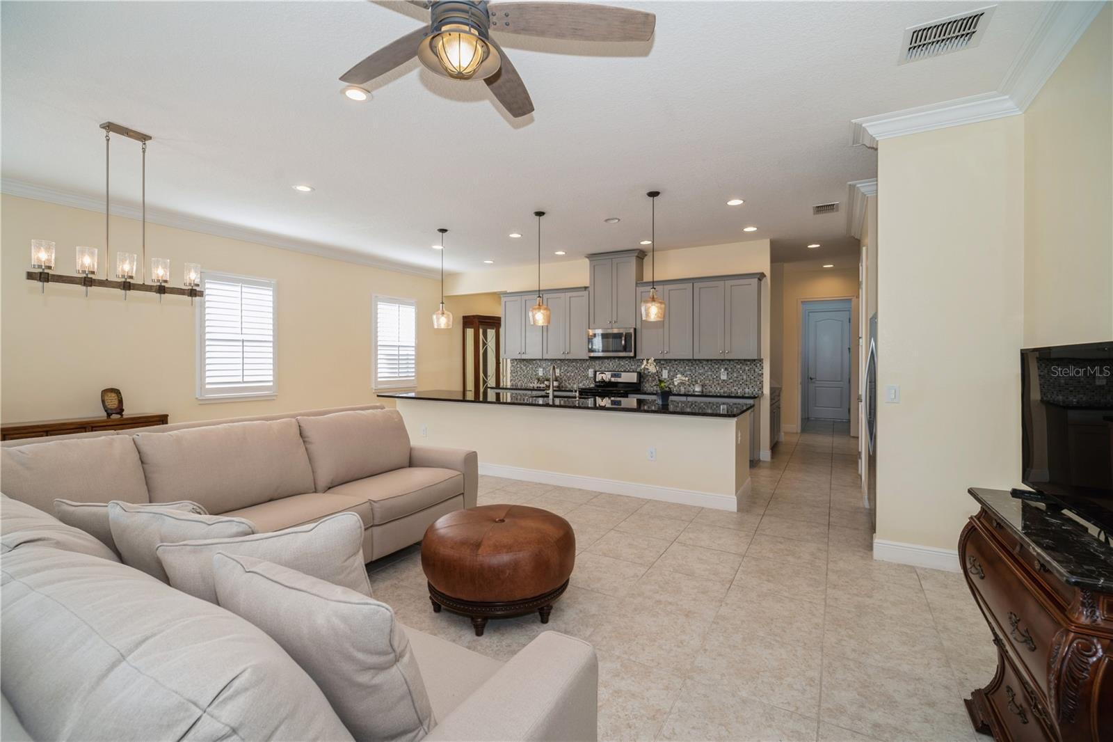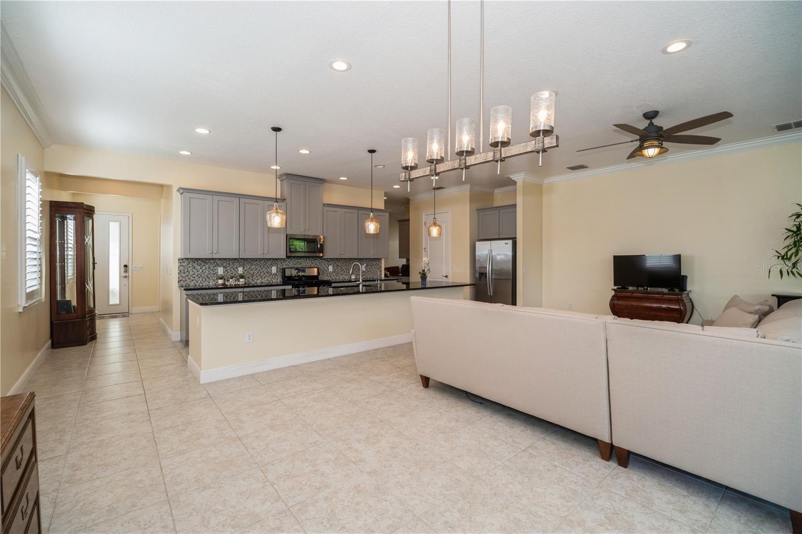 Your Dream Home awaits! Nestled within the desirable Twin Lakes 55+ community, spanning approximately 2,365 sq ft with 3 bedrooms and 3 bathrooms, this Marco plan boasts a well-designed layout that seamlessly blends modern elegance and functional living spaces. The gourmet kitchen features an abundance of 42-inch cabinets, stainless steel appliances, and a gas range/oven, complemented by a full-length granite island. The open-concept living area with high 10-foot ceilings creates a sense of spaciousness and provides direct access to the screened-in lanai, offering a tranquil outdoor retreat. The den/office/study is adorned with built-in bookshelves, offering a customized workspace. The primary bedroom exudes a serene ambiance, boasting a custom tray ceiling, ceiling fan, and an ensuite bathroom with frameless shower doors, dual shower heads, and a custom granite vanity. Second bedroom with ensuite bathroom, offers comfortable accommodations for quests. Additional upgrades, such as motorized remote blinds, plantation shutters, a Generac generator, a water softener, and double-filtered drinking water systems in the primary bathroom and kitchen, enhance the home's functionality and convenience. Situated within a desirable community, this property offers a wealth of amenities, including pools, a fitness center, sauna, tennis, basketball, and pickleball courts, as well as a boat dock for aquatic activities. The location provides easy access to Lake Nona Medical City, Orlando International Airport, downtown Orlando, theme parks, and Brevard's beaches, making it an ideal haven for seeking a balanced lifestyle.