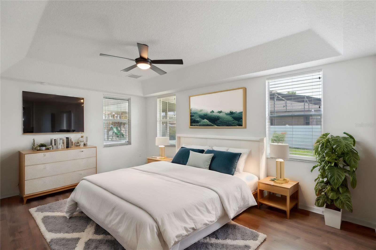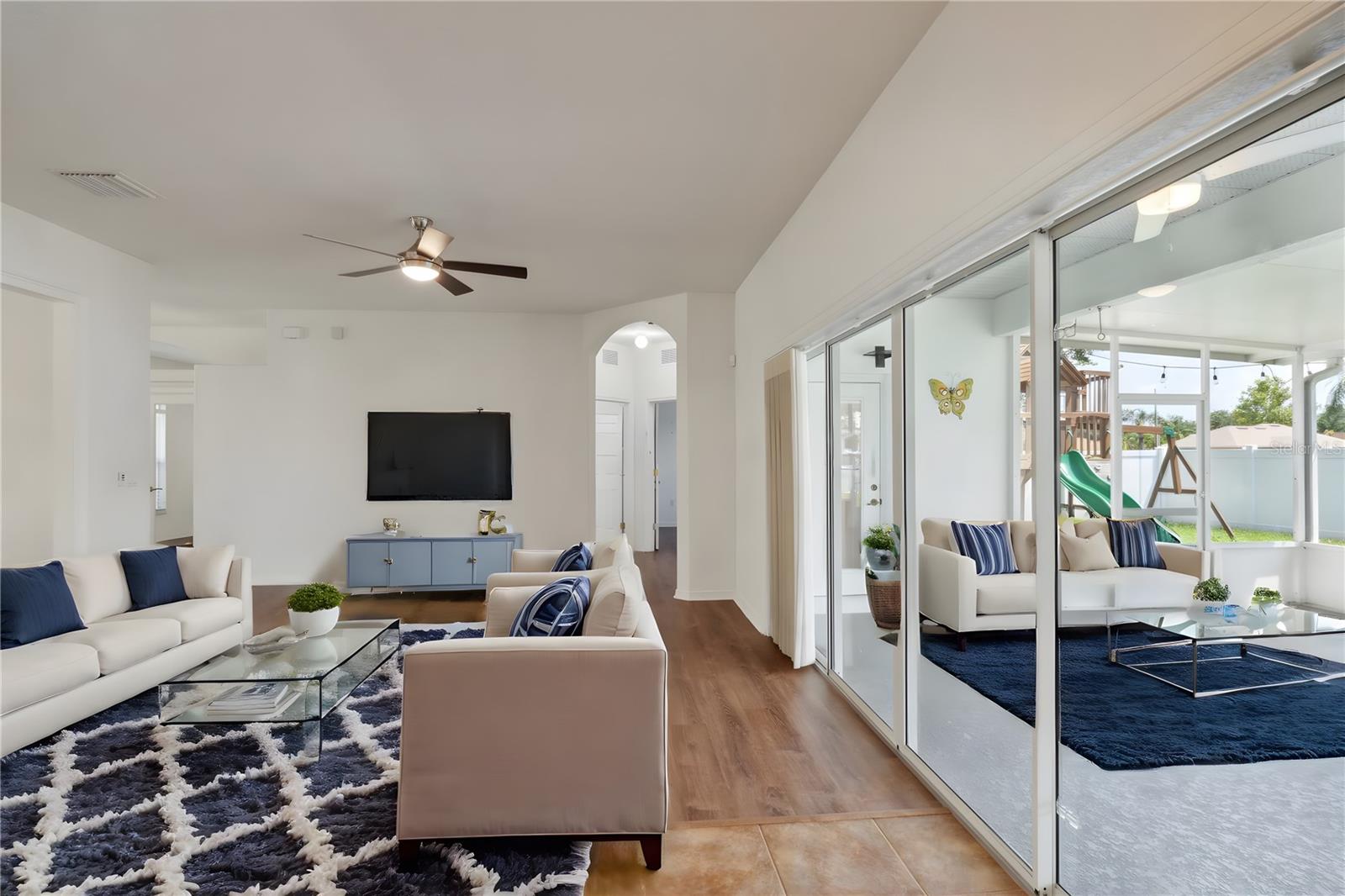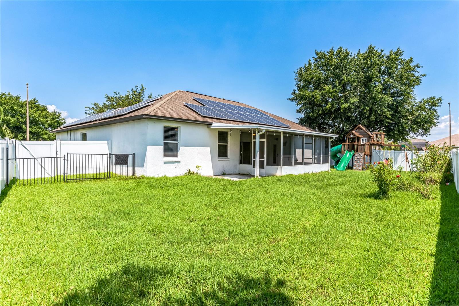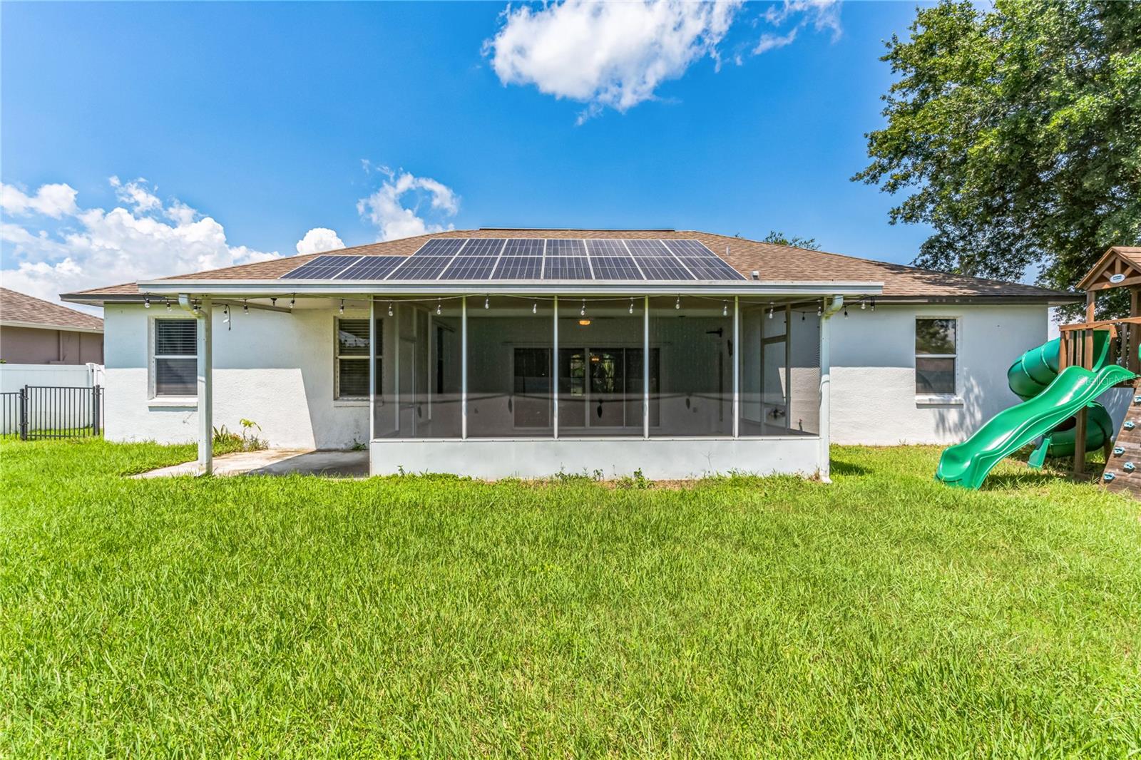 One or more photo(s) has been virtually staged. NEW Roof! Seller is providing a home warranty for the new buyer, offering added peace of mind and protection. Don’t miss this opportunity to own a home with extra coverage on major systems and appliances! Welcome to this stunning 1,955 sq ft home built in 2005, perfect for your next home! The moment you step inside, you'll be captivated by its elegant design and spacious layout. As you enter the home you have double glass doors to a private office that can be used as guest room. It also features a living room and dining room open concept. The expansive family room is ideal for movie nights and game days, offering plenty of space for everyone to relax. The oversized master suite is a true retreat, complete with a beautiful garden tub, separate shower, dual sinks, and a private toilet area. His and hers closets provide ample storage for all your needs. For the culinary enthusiast, the kitchen boasts abundant counter space and like-new appliances, making meal preparation a joy. The home is situated on a prime corner lot with a full open view of a serene pond right out front. The completely fenced backyard features mature professional landscaping and a spacious screened lanai, perfect for enjoying the outdoors in comfort. Additional highlights include a well maintained A/C unit and SOLAR PANELS. The solar panels eliminate a monthly electric bill! Roof being replaced soon! This house is truly turn-key ready. Just bring your furniture, clothes, and groceries, and you'll be ready to settle in and relax. Don't miss the chance to make this beautiful home your next rental! Conveniently located near top-rated schools, major highways, and job hubs, this home puts you in the center of it all – while letting you enjoy a tranquil, family-friendly environment. Ask about available lender incentives when working with our preferred lending partner—including appraisal waiver applied at closing!
